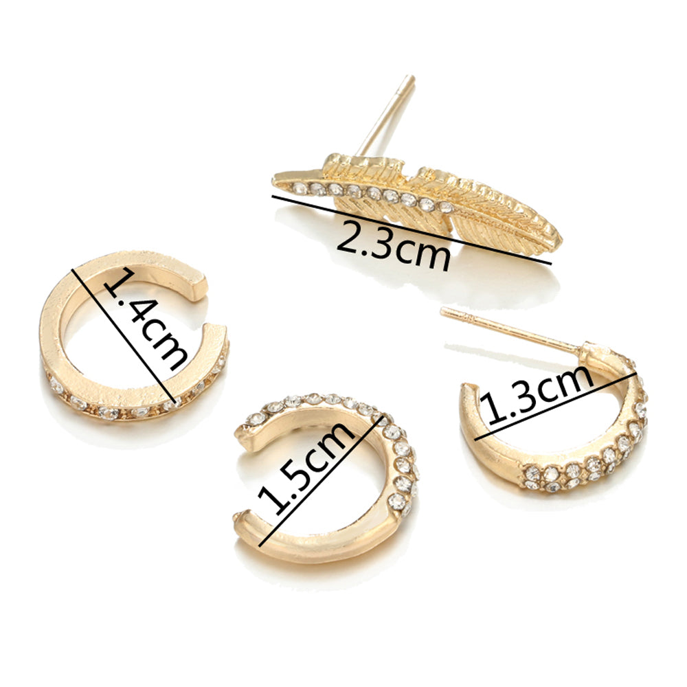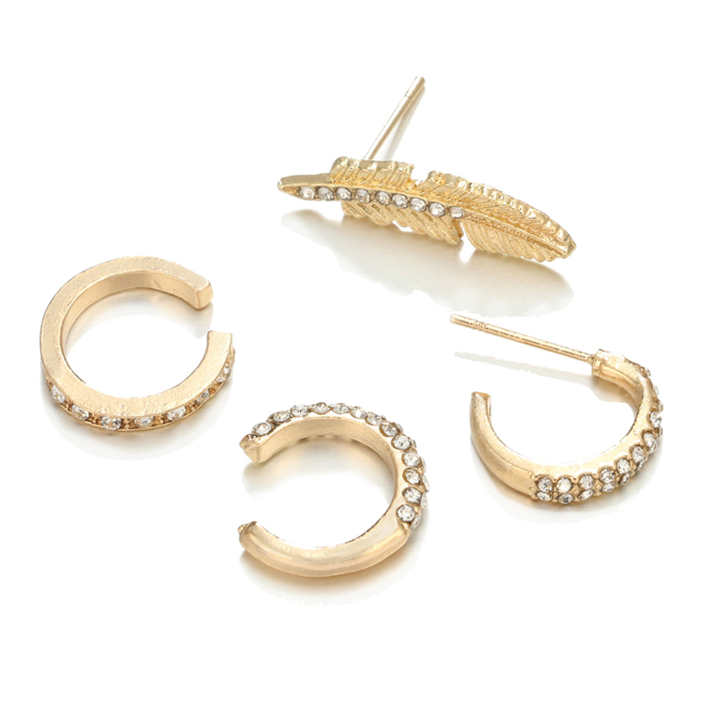 Harlow Crystal Ear Cuff Leaf Ear Climber 4 Pieces Hoop Earring Set