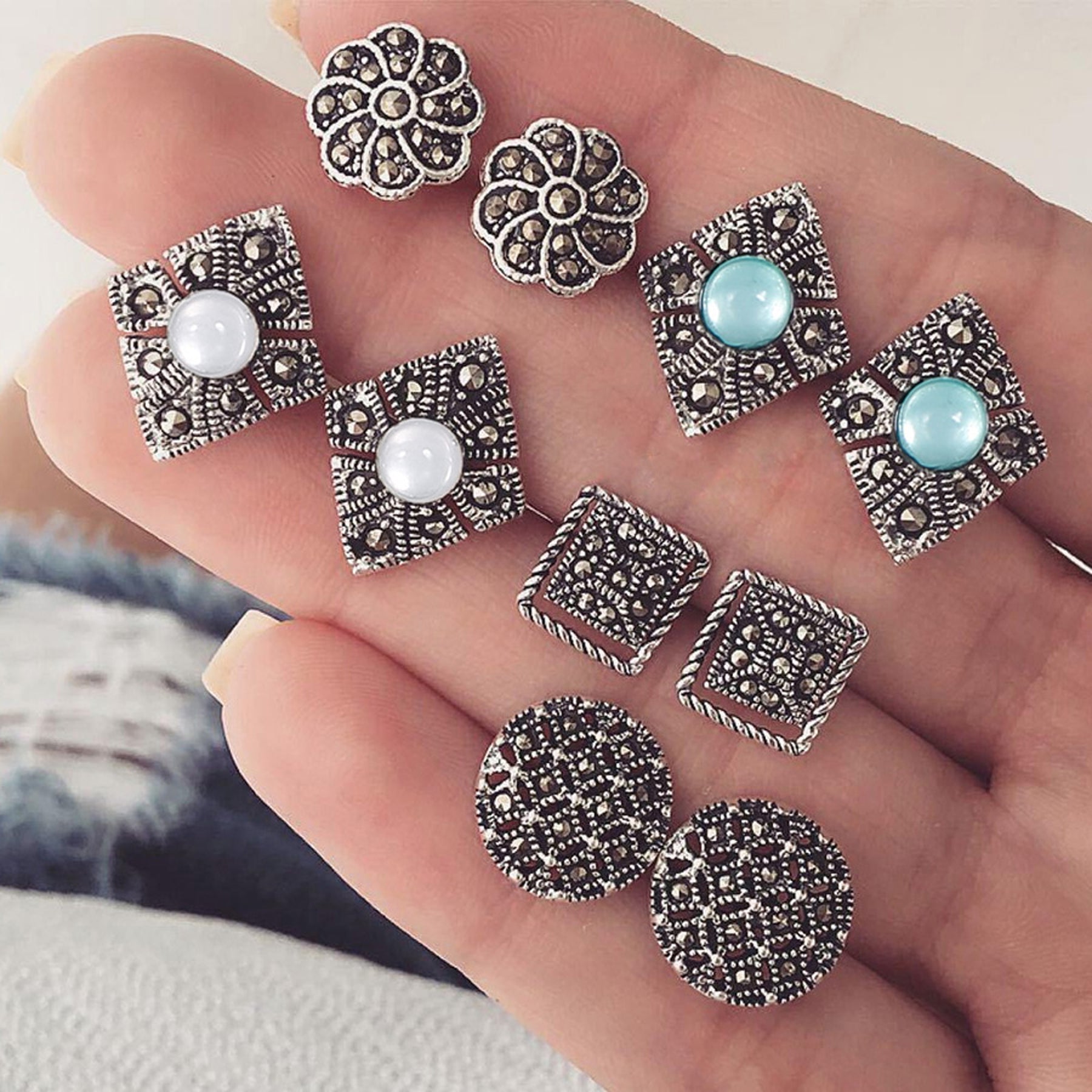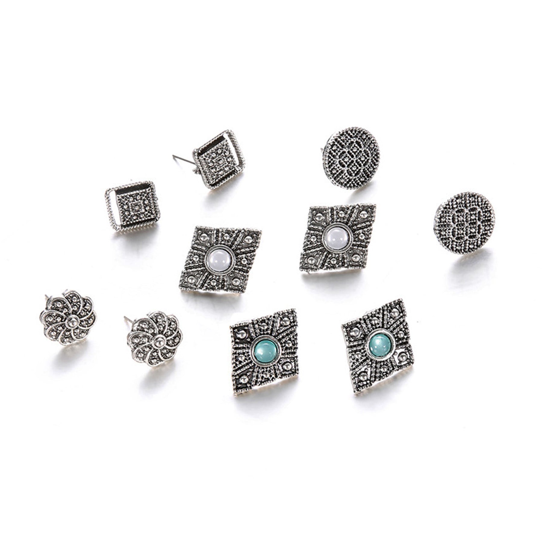 Aubri Antiqued Filigree Flower Earring Studs Set 5 Pairs in Antiqued Silver