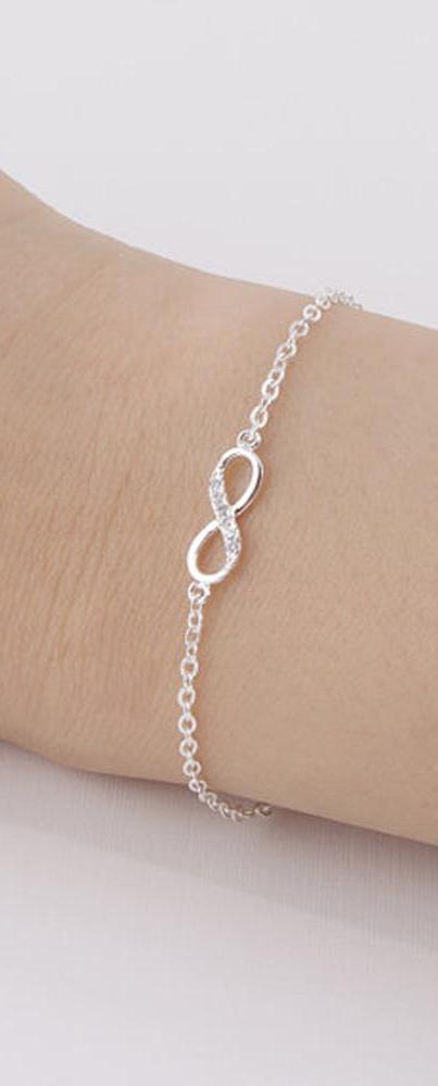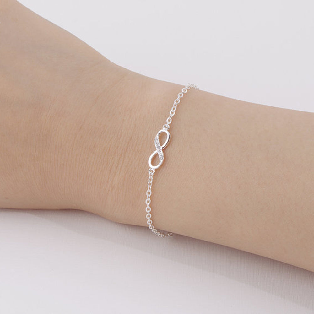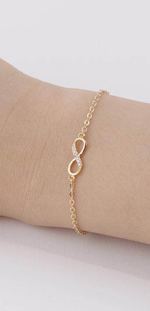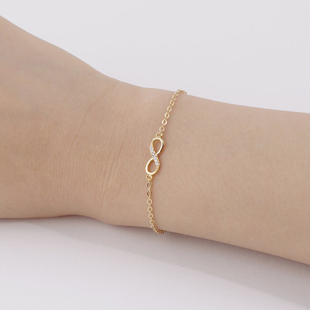 Simpre Cute Crystal Pave Infinity Charm Chain Bracelet in Silver or Gold