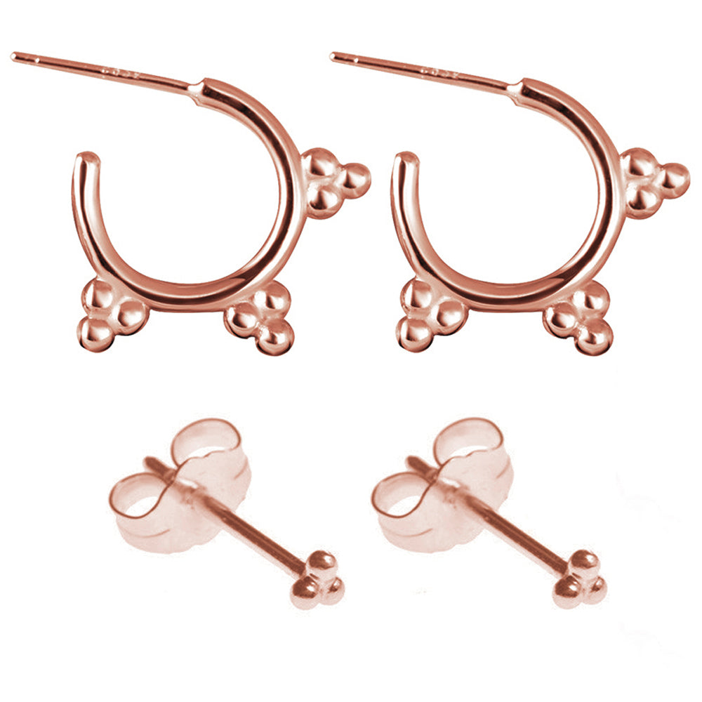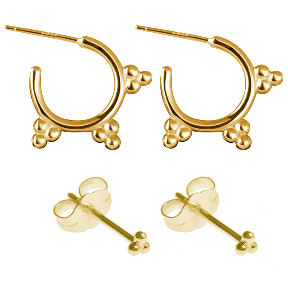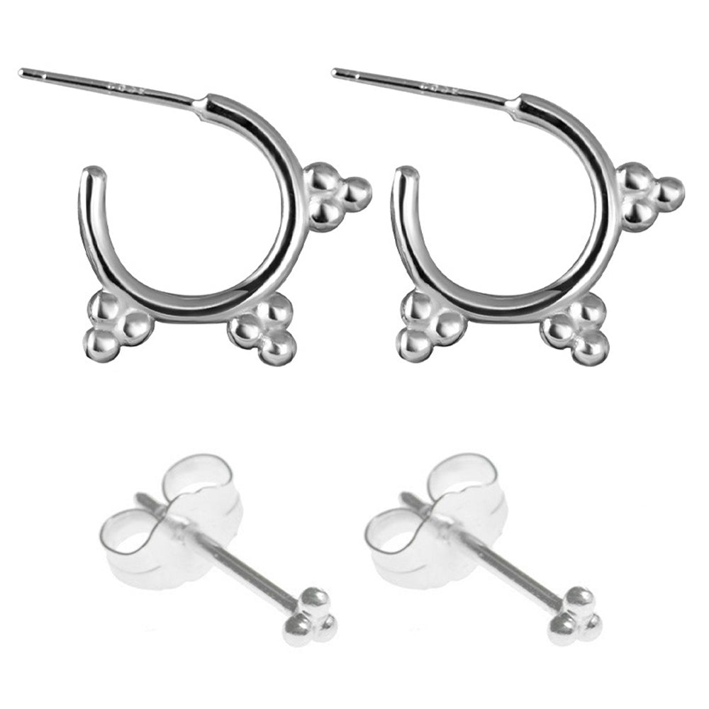 Zest Tribal Bohemian Triple Ball Earring Stud & Hoop Piercing Ring