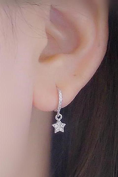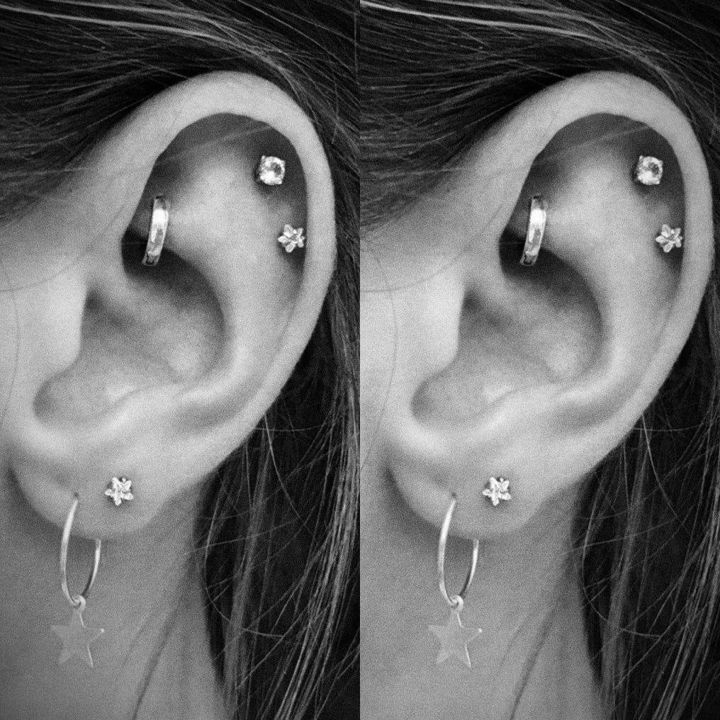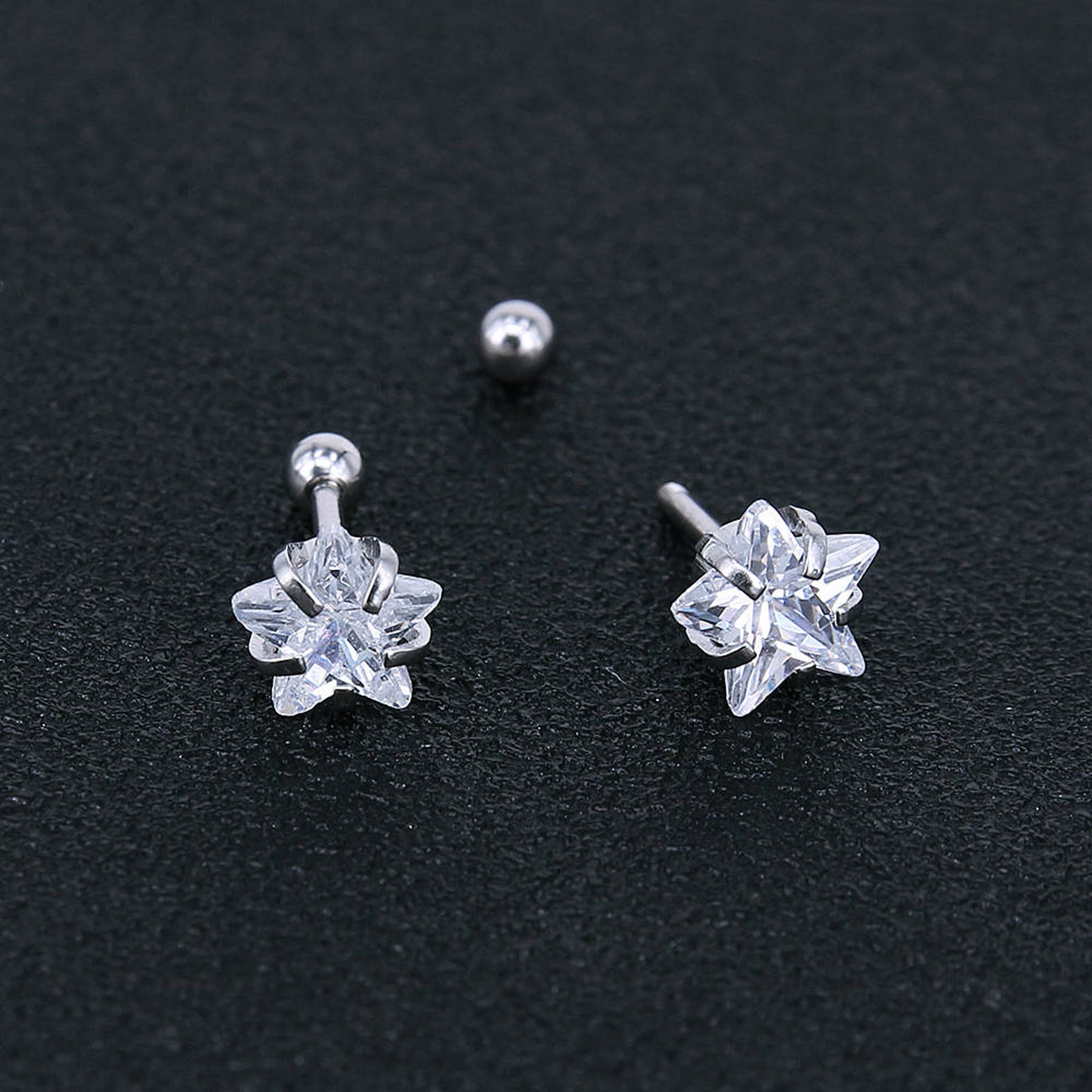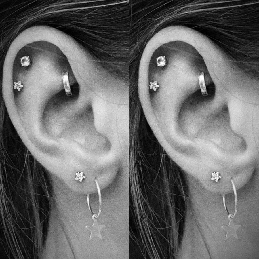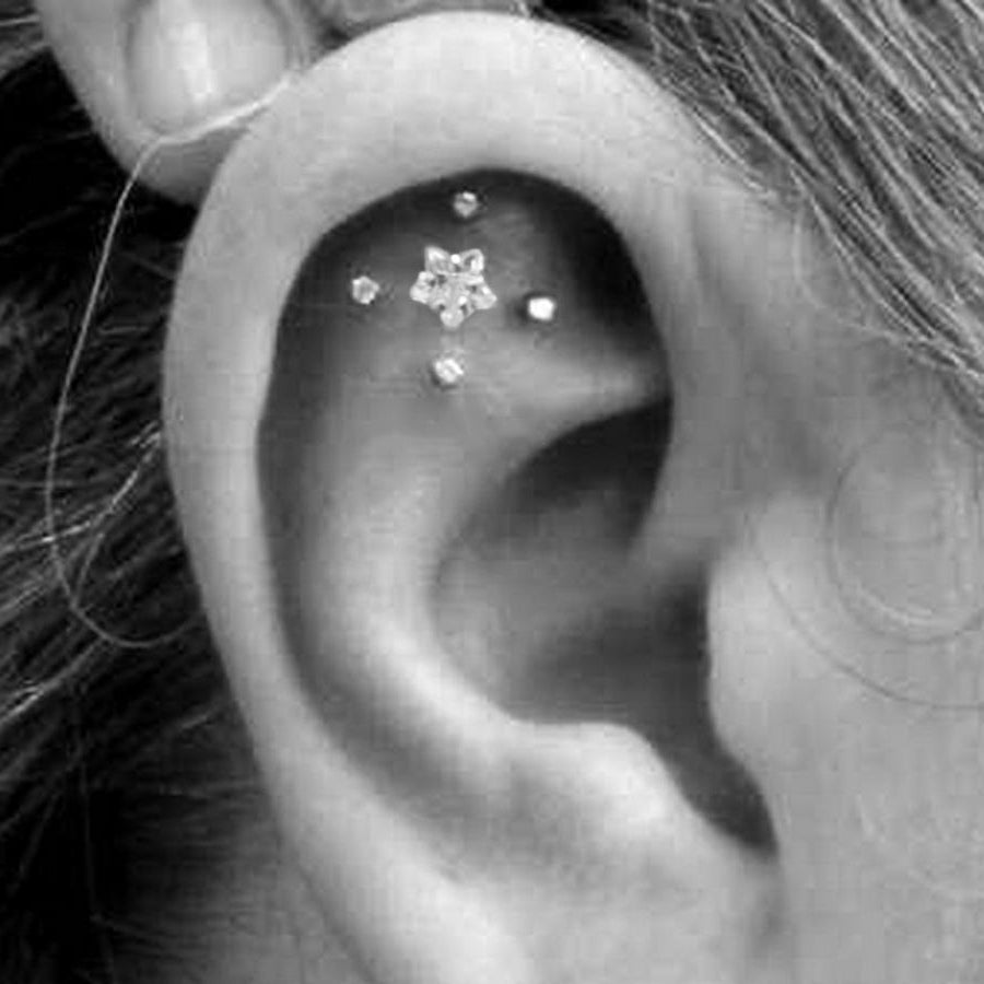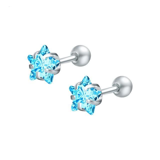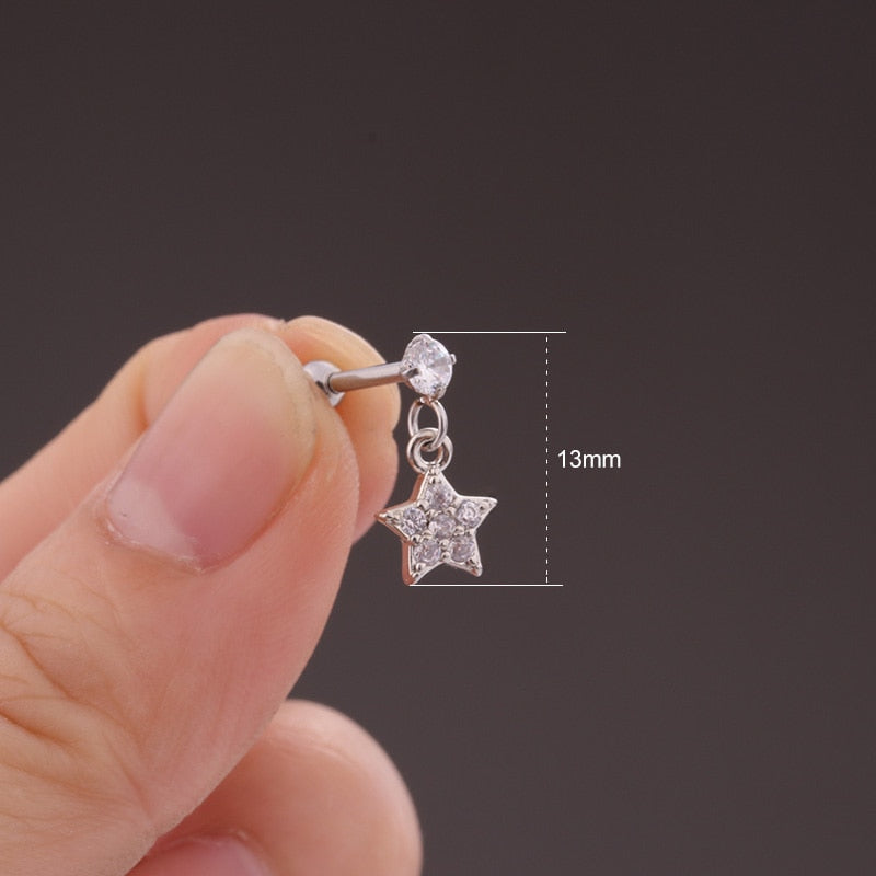 Lucky Swarovski Crystal Star Ear Piercing Jewelry 16G Silver Earring