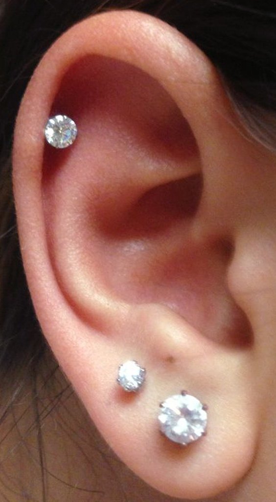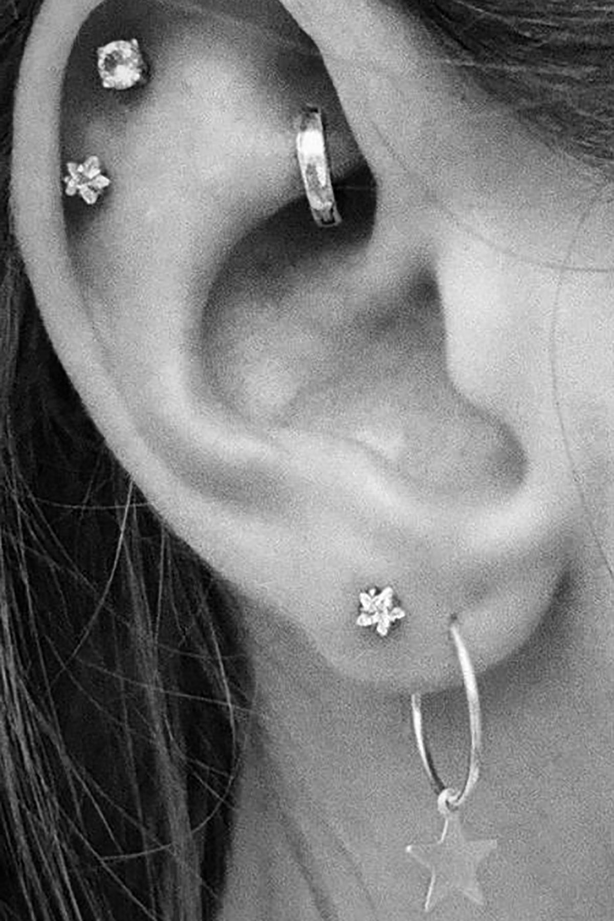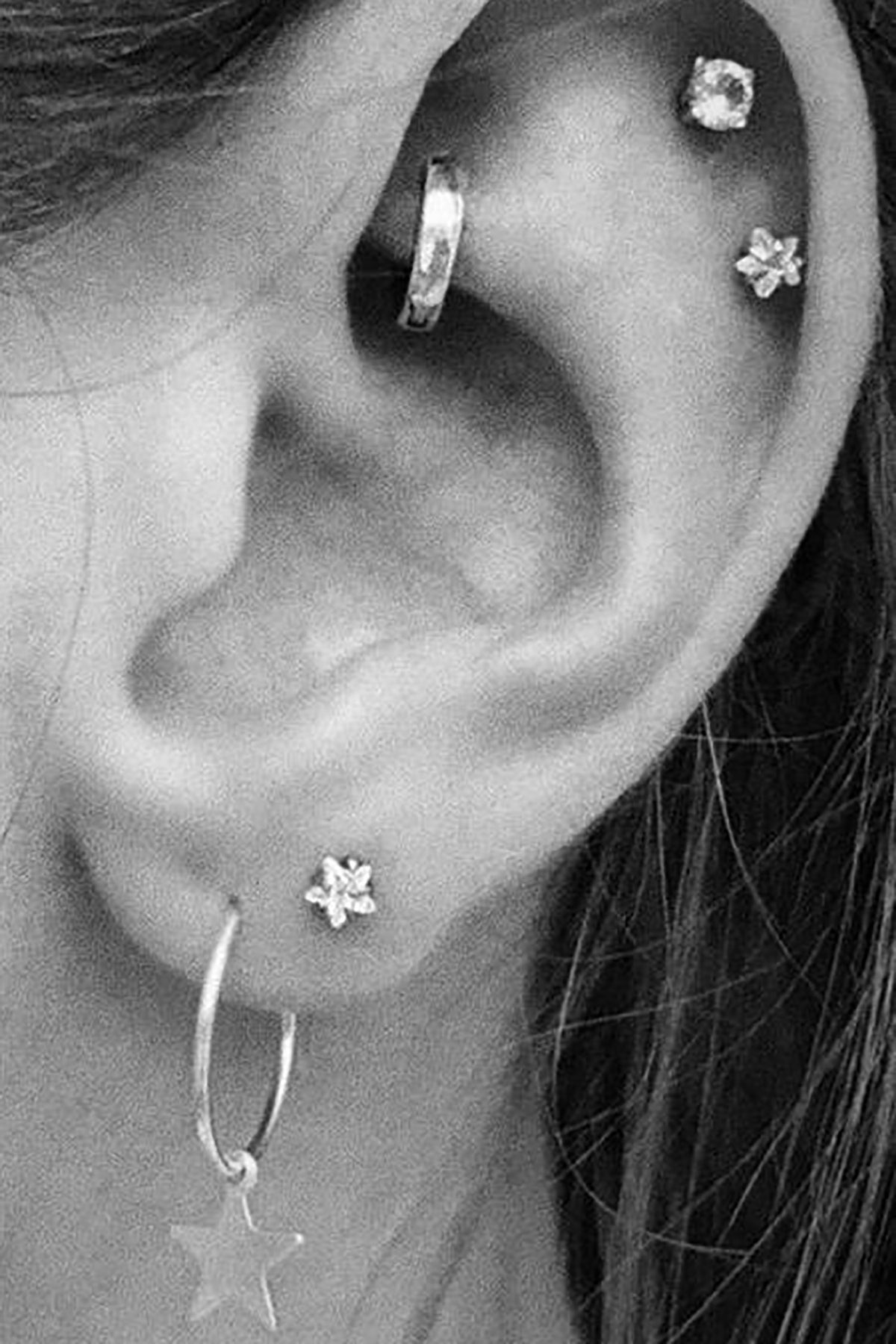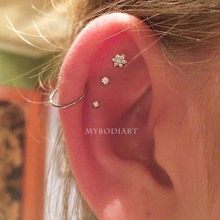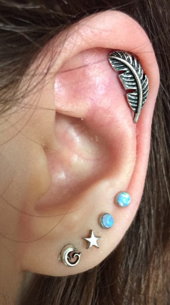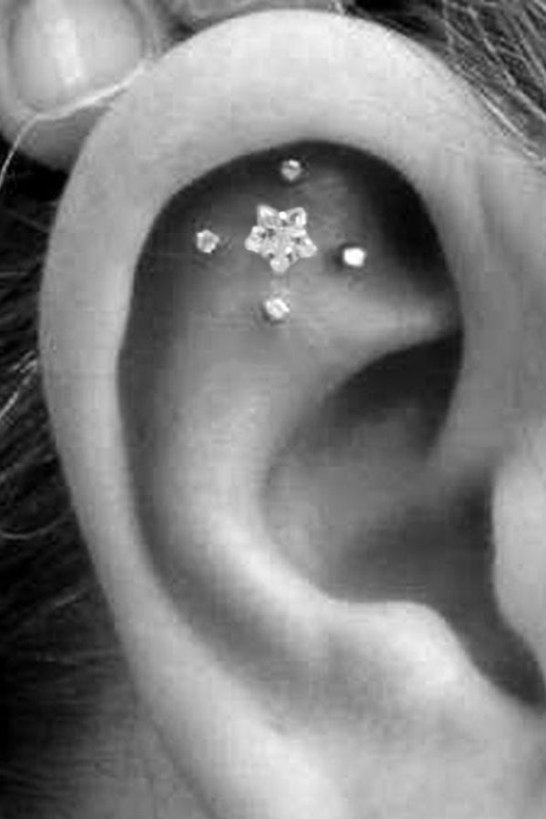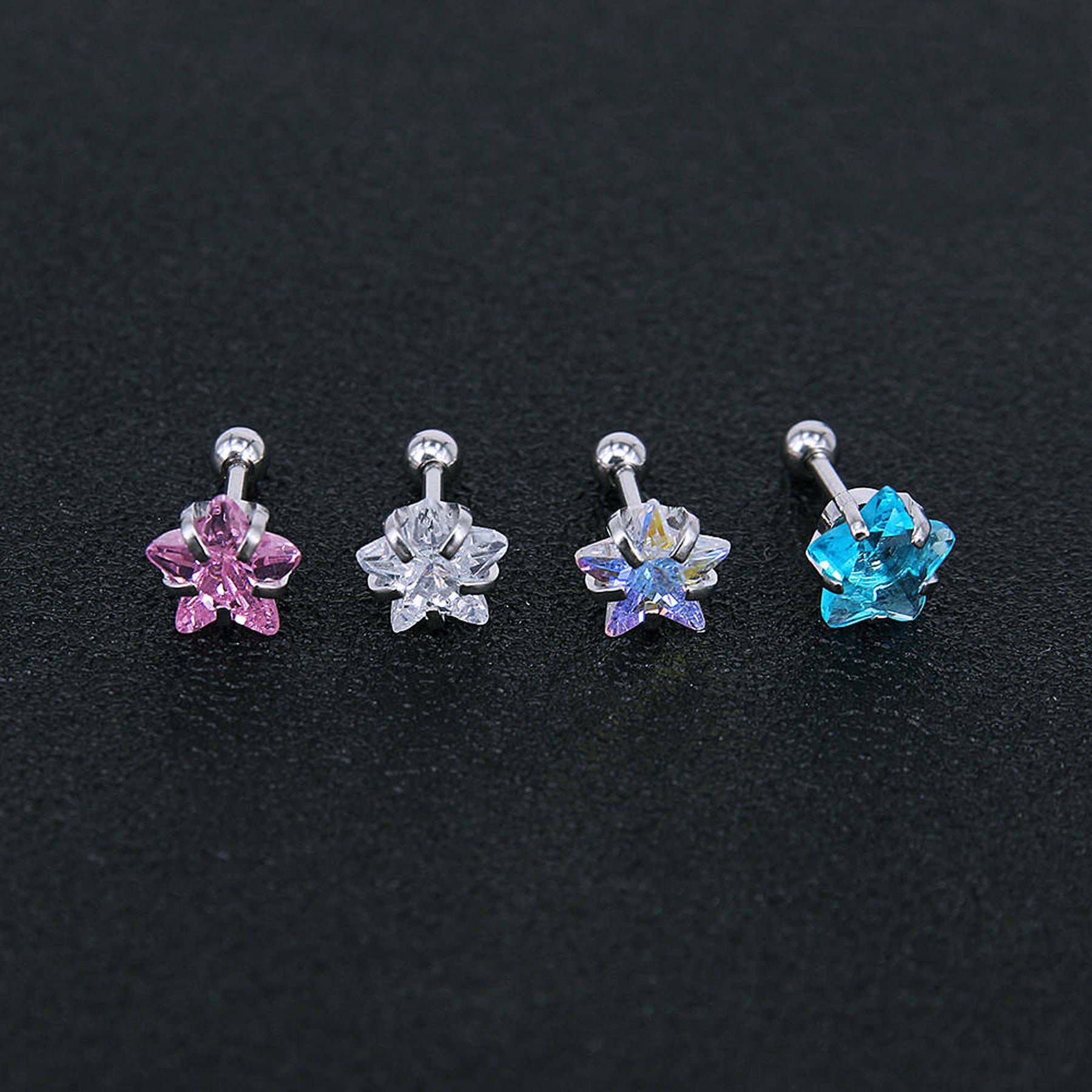 Lucky Swarovski Crystal Star Ear Piercing Jewelry 16G Silver Earring