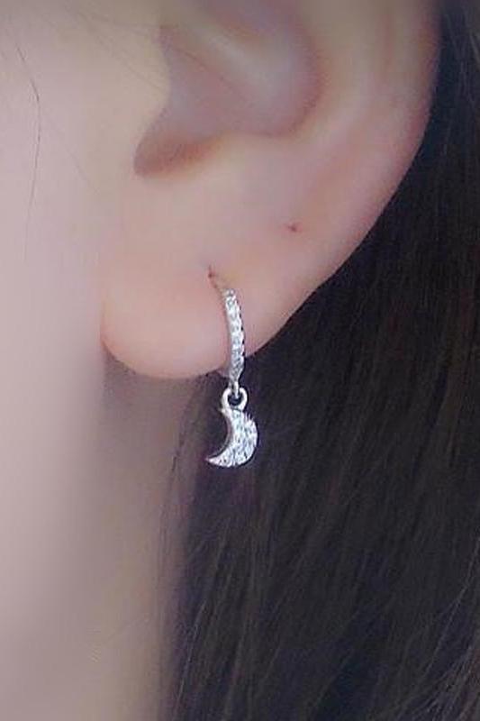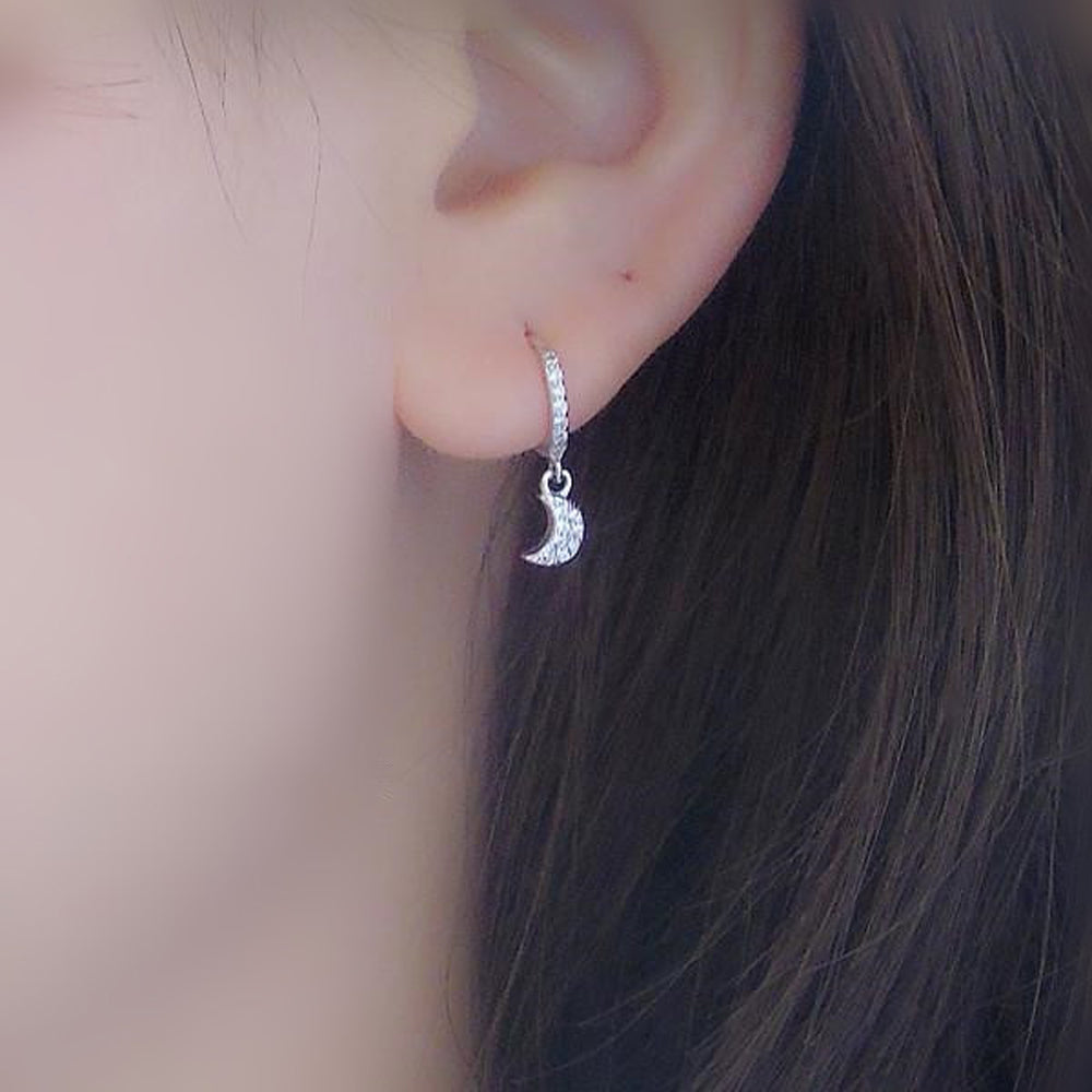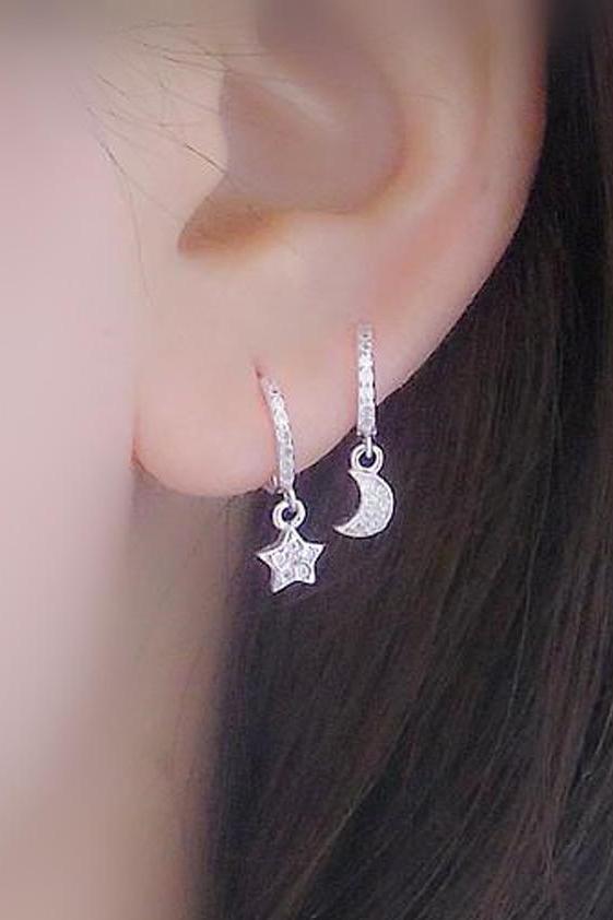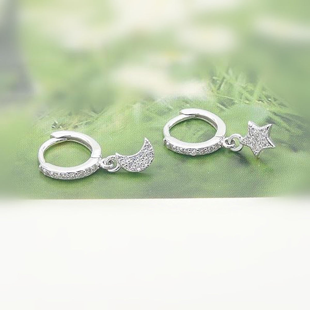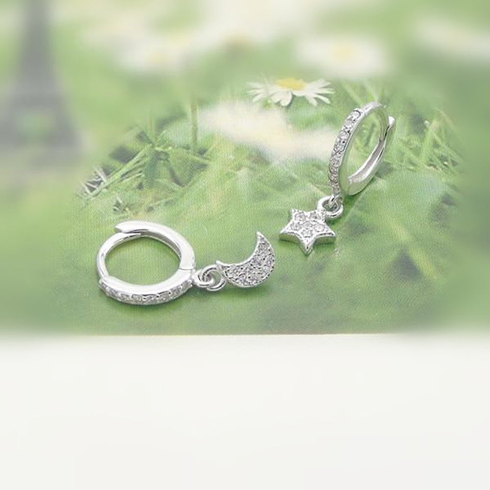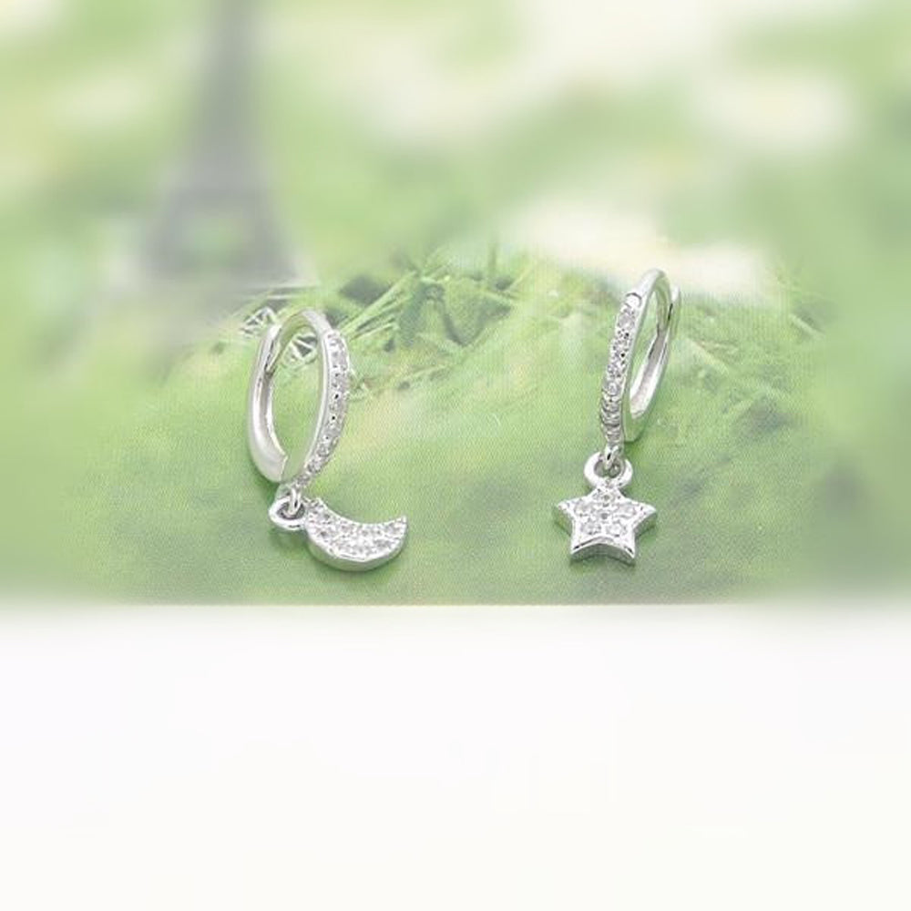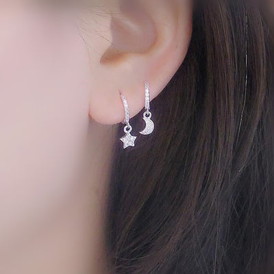 Wish Minimal Dainty Star & Moon Huggie Hoop Ring Earrings in Silver