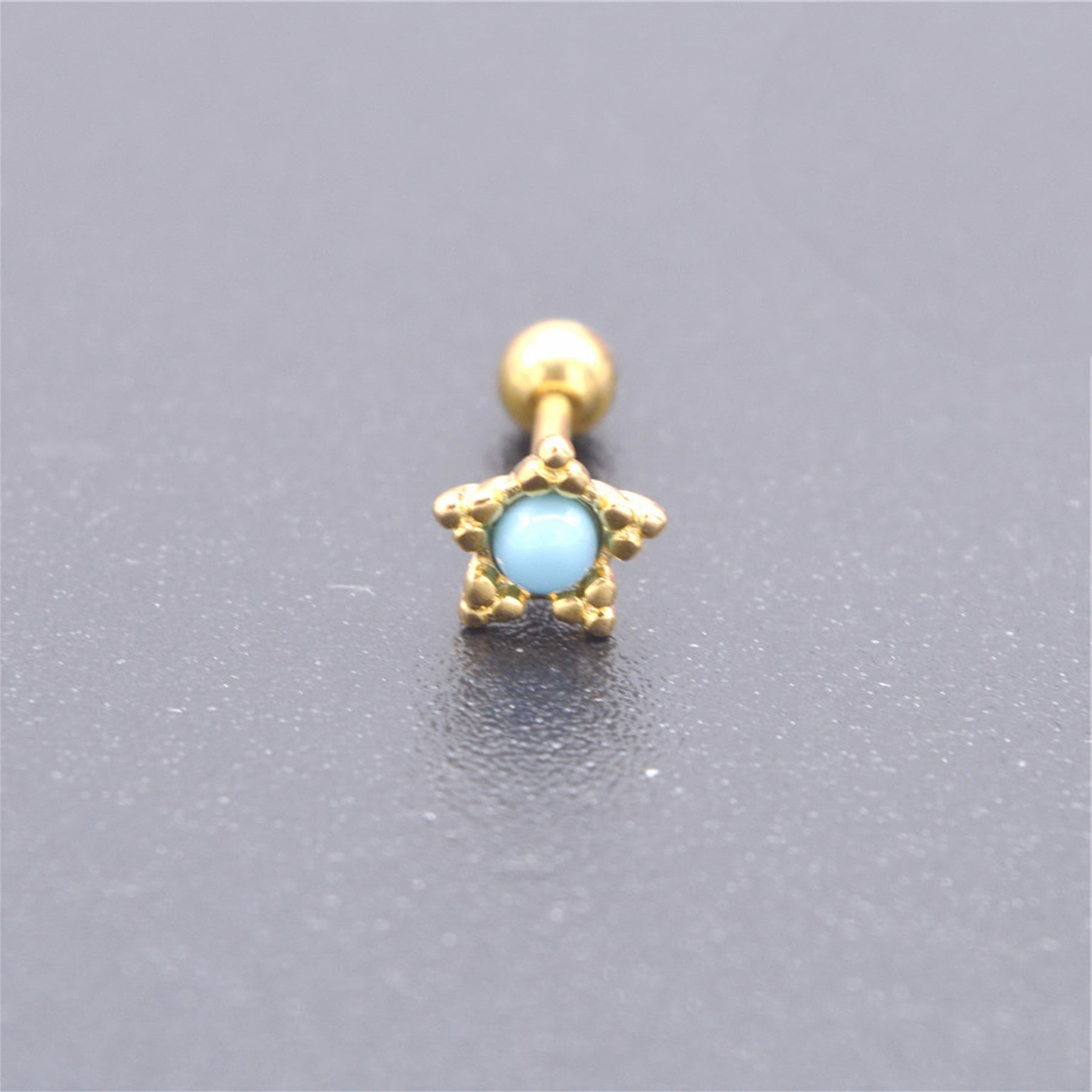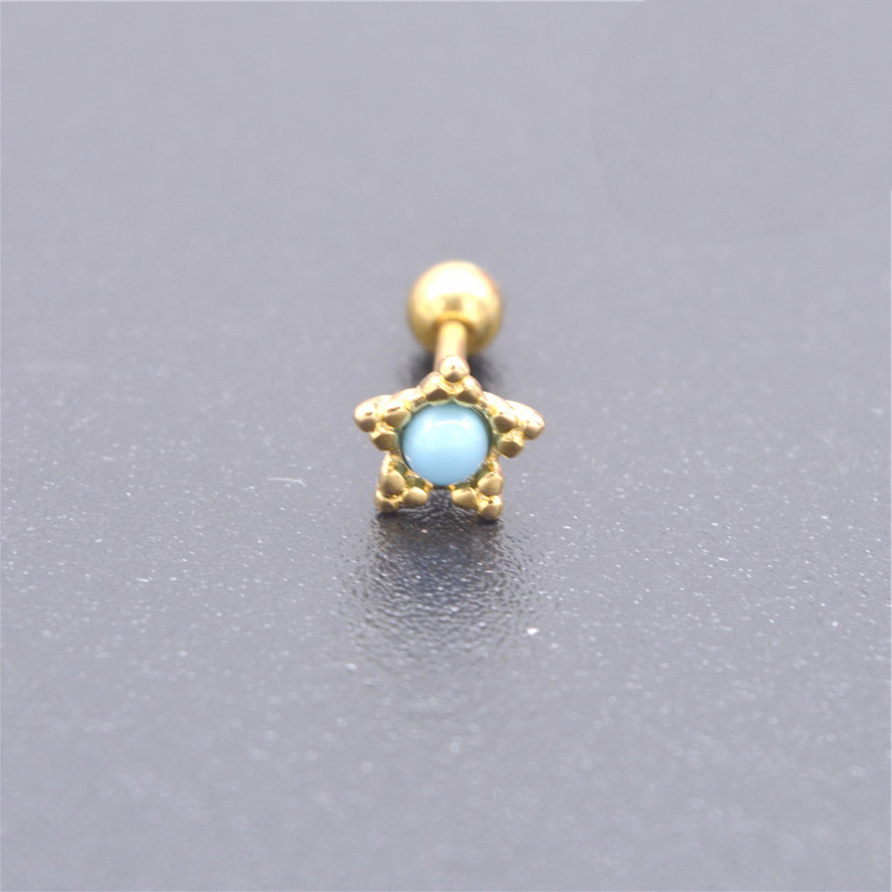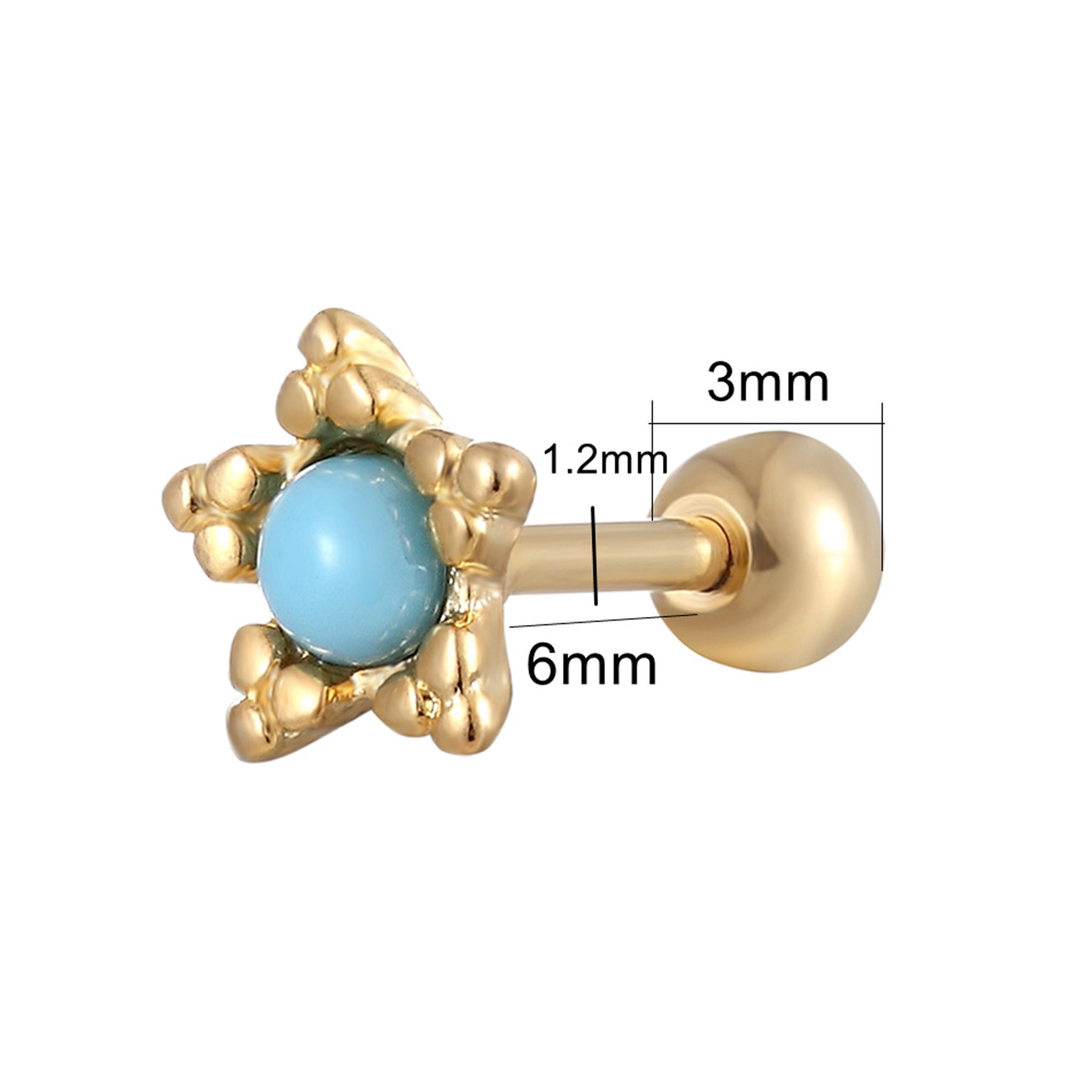 Cassiopeia Pair of Turquoise Gold Star Ear Piercing Jewelry 16G Earring Studs