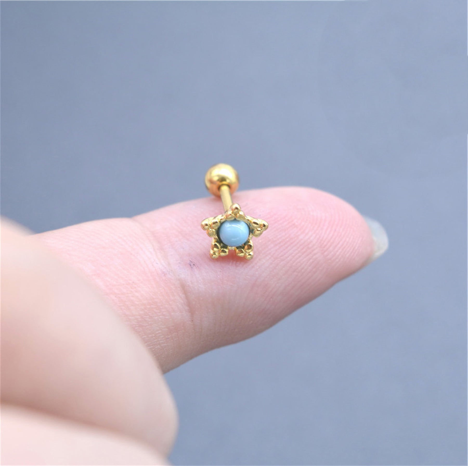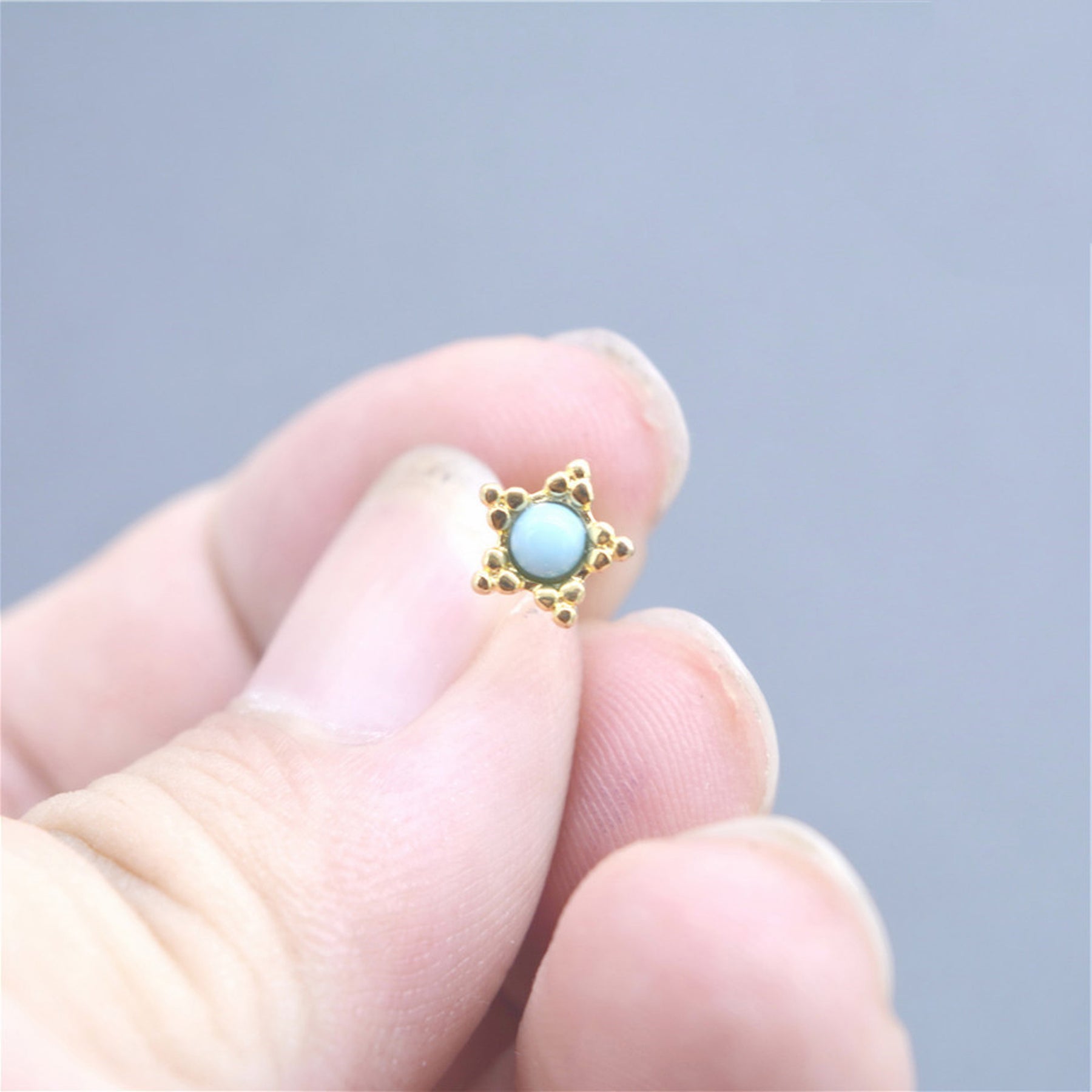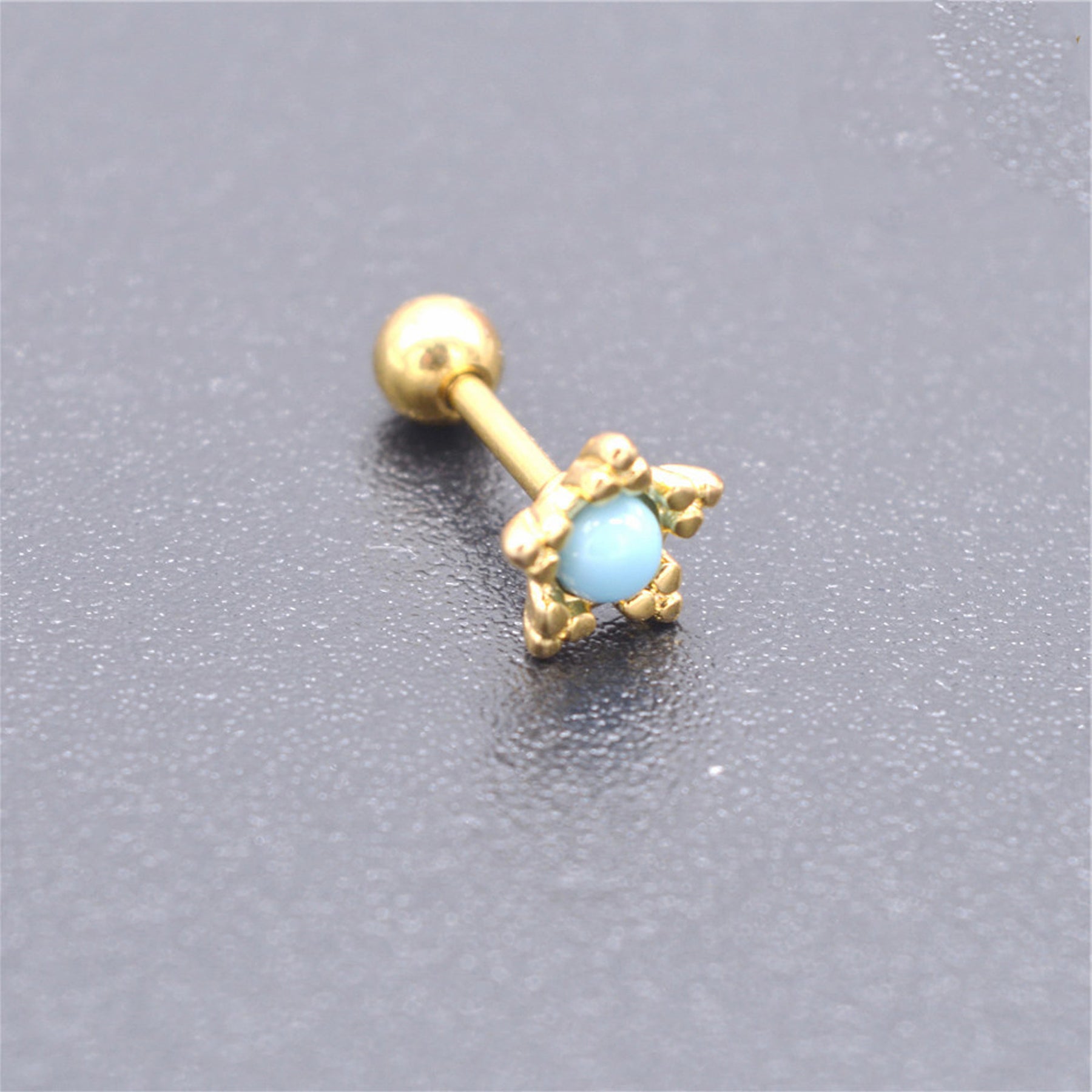 Cassiopeia Pair of Turquoise Gold Star Ear Piercing Jewelry 16G Earring Studs