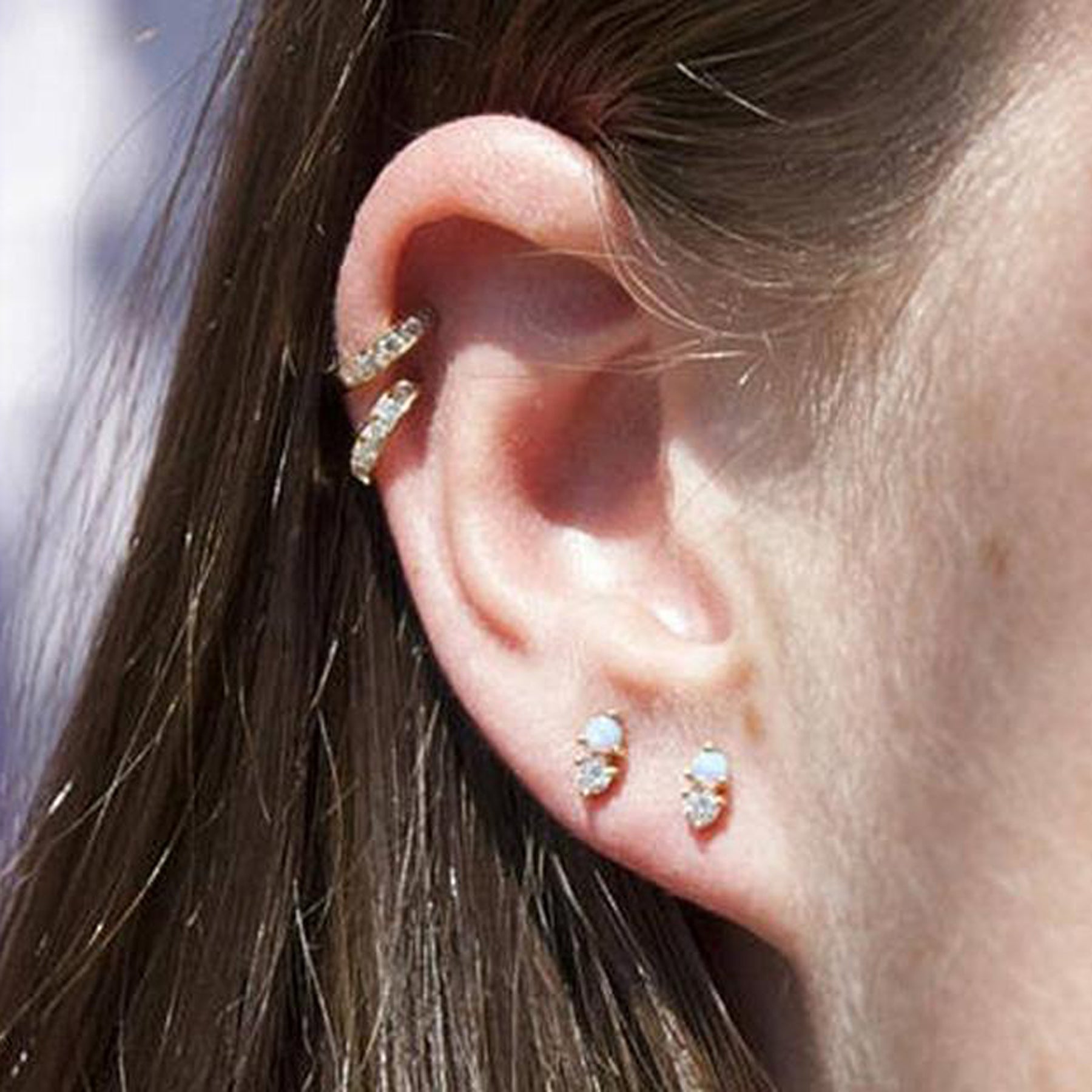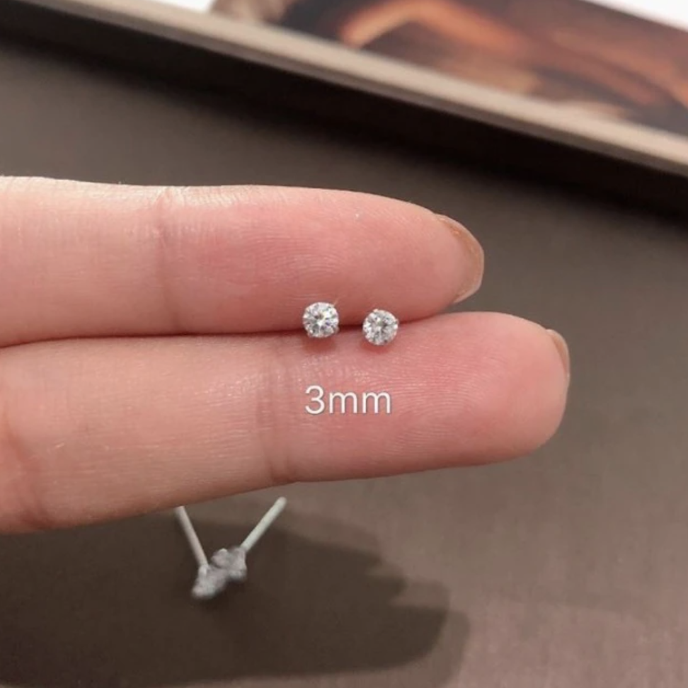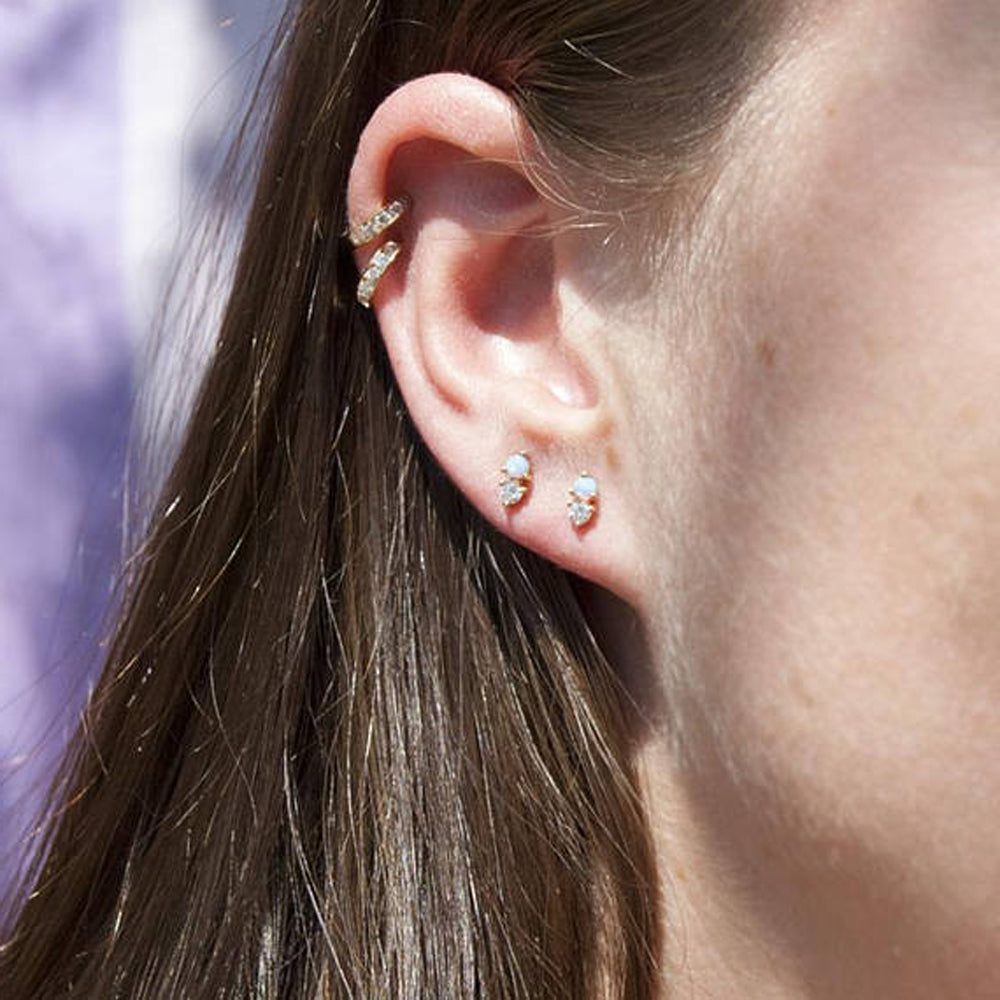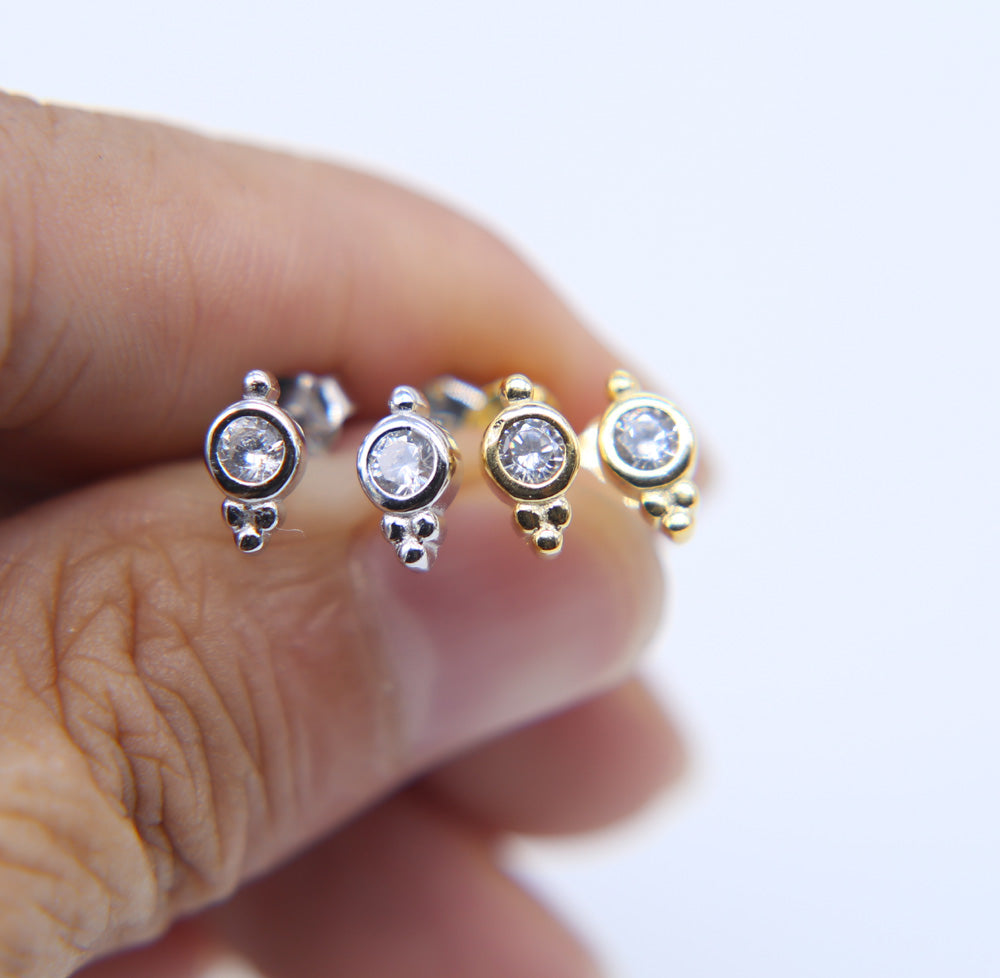 Elowen Boho Small Crystal Stud Ear Piercing Earrings in Gold or Silver