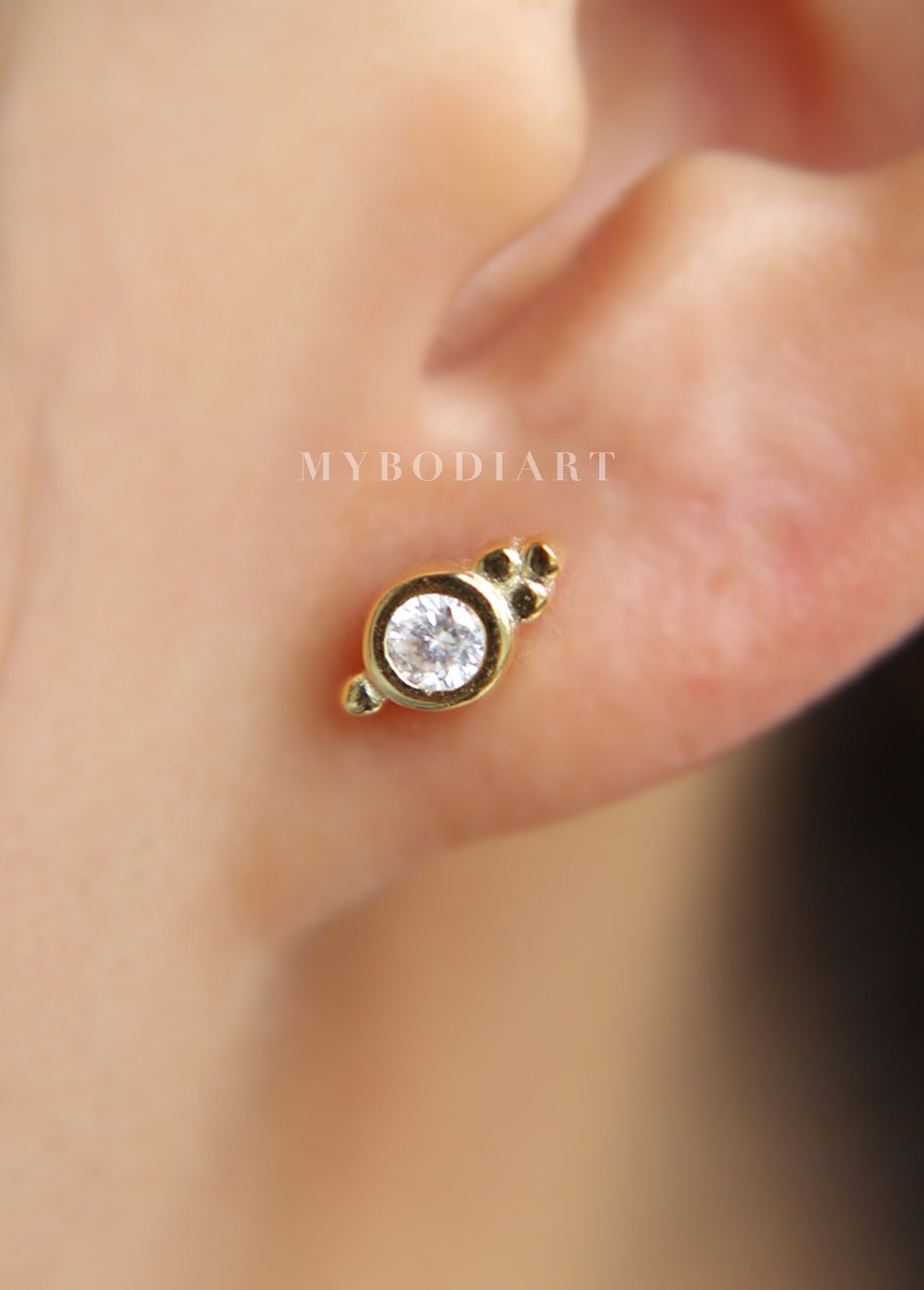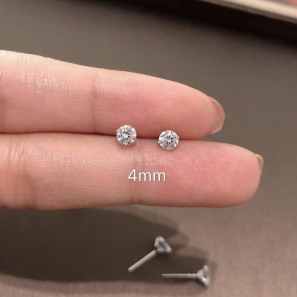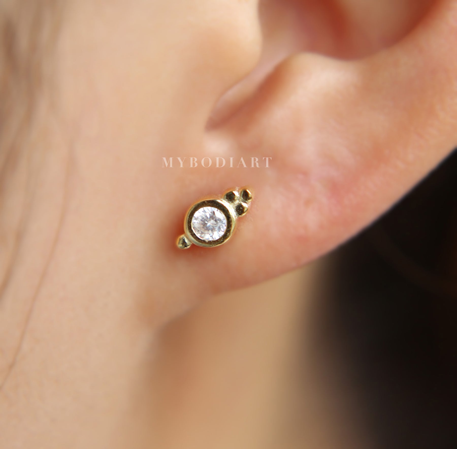 Elowen Boho Small Crystal Stud Ear Piercing Earrings in Gold or Silver