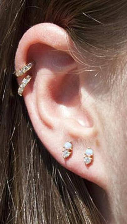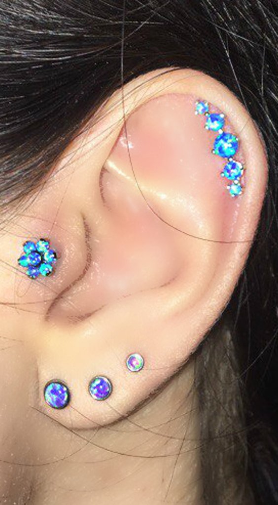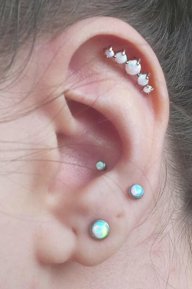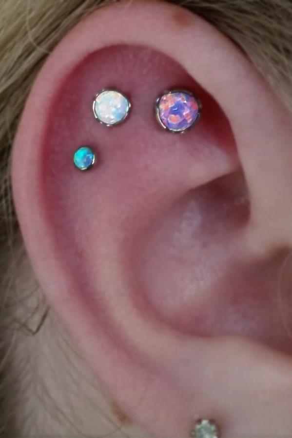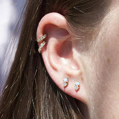 Dazzle Opal Ear Piercing Lip Labret Stud Barbell 16G Triple Set