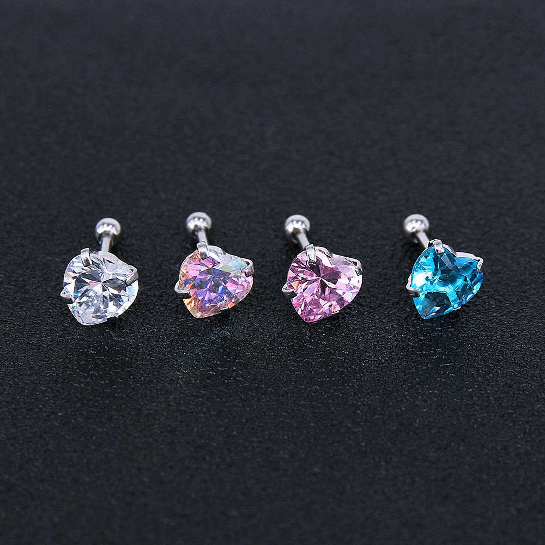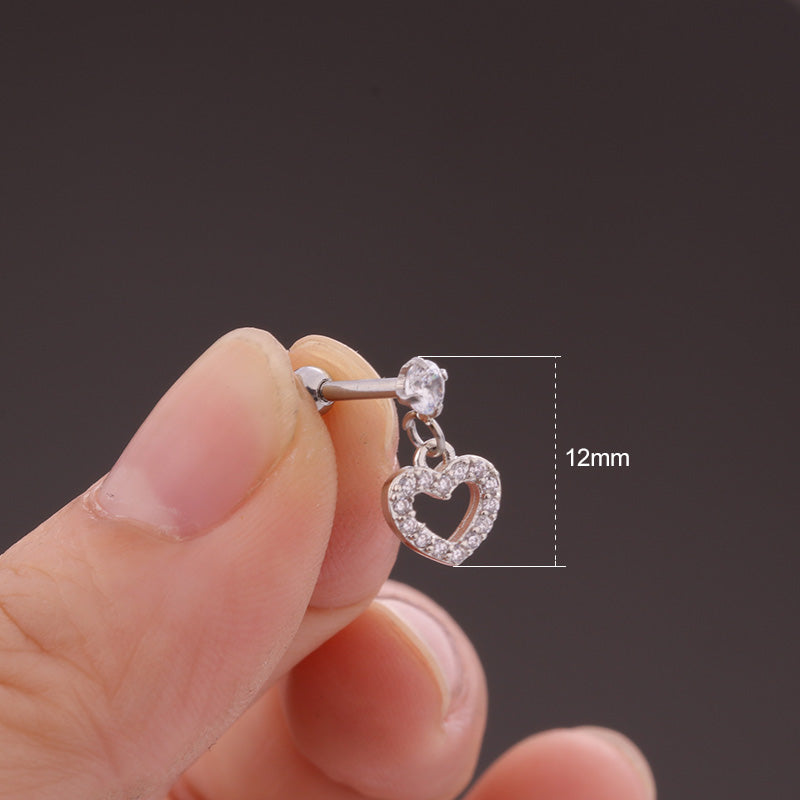 Amie Swarovski Crystal Heart Ear Piercing Jewelry 16G Silver Earring