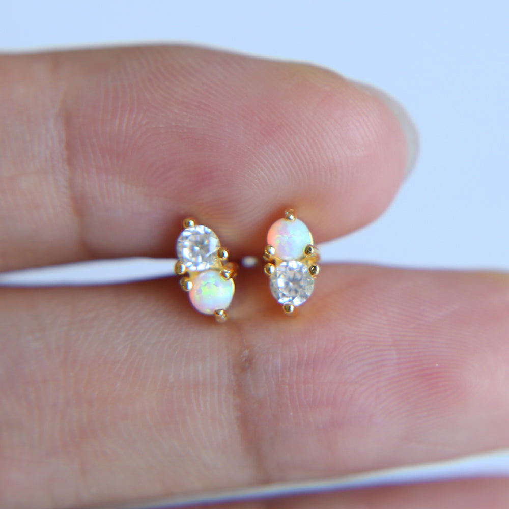 Daffiny Opal & Crystal Pair of Earring Studs
