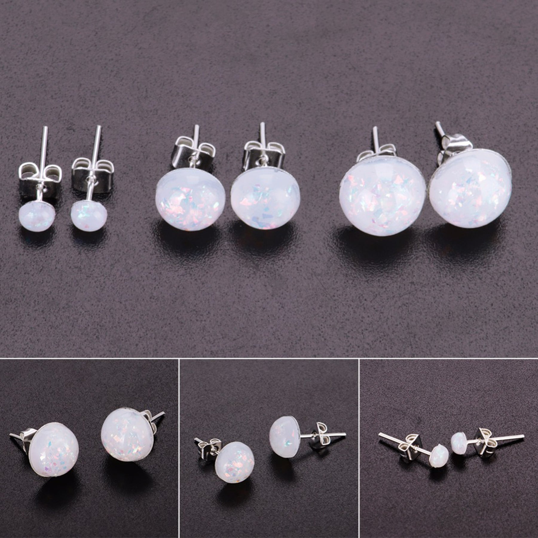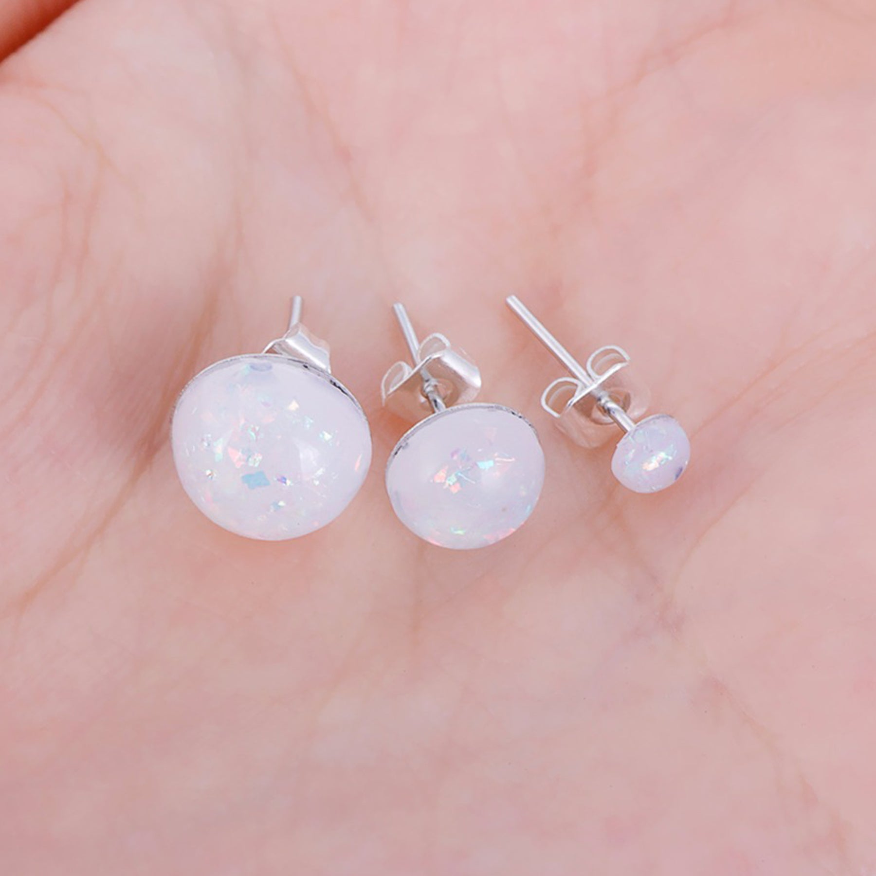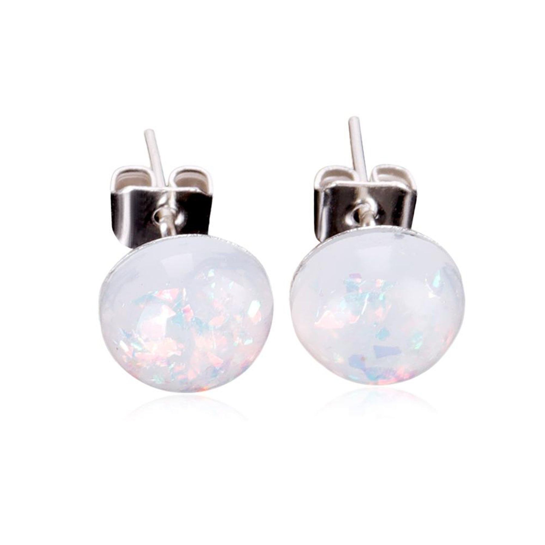 Winter Opalite Opal Resin Stud Earrings in Silver