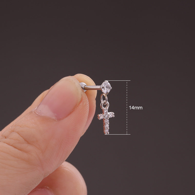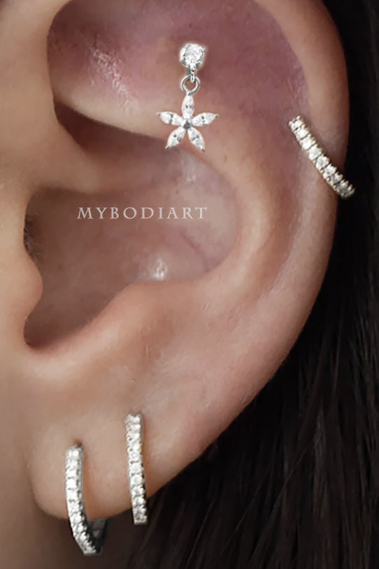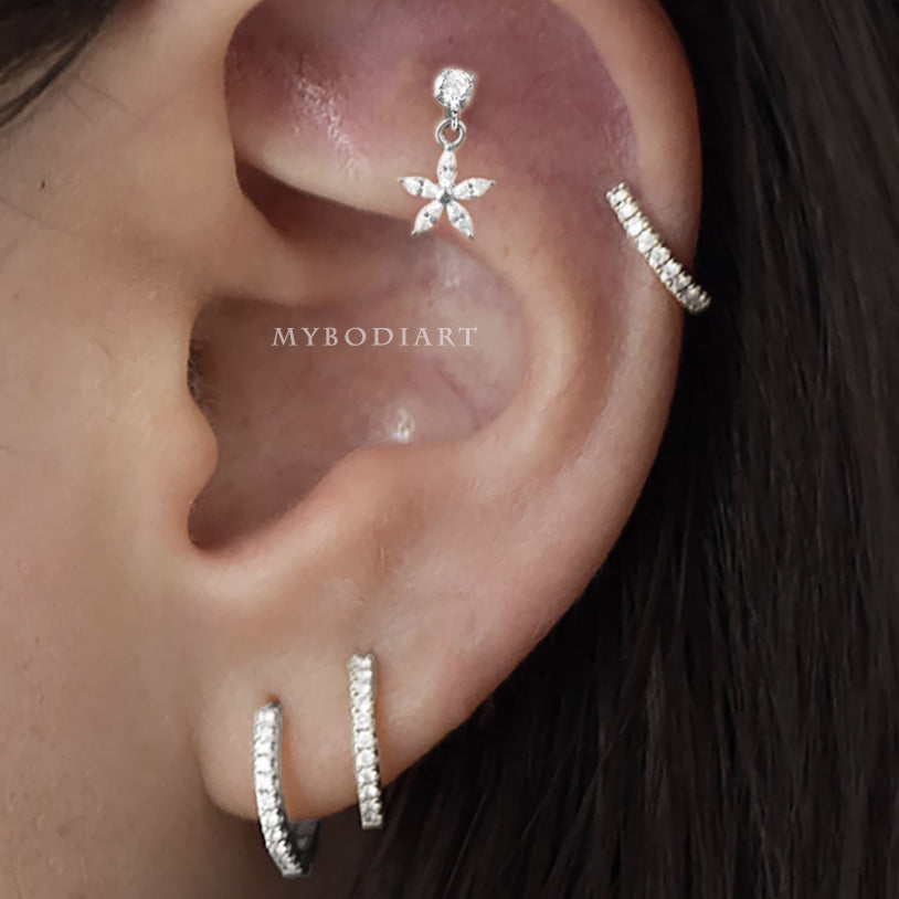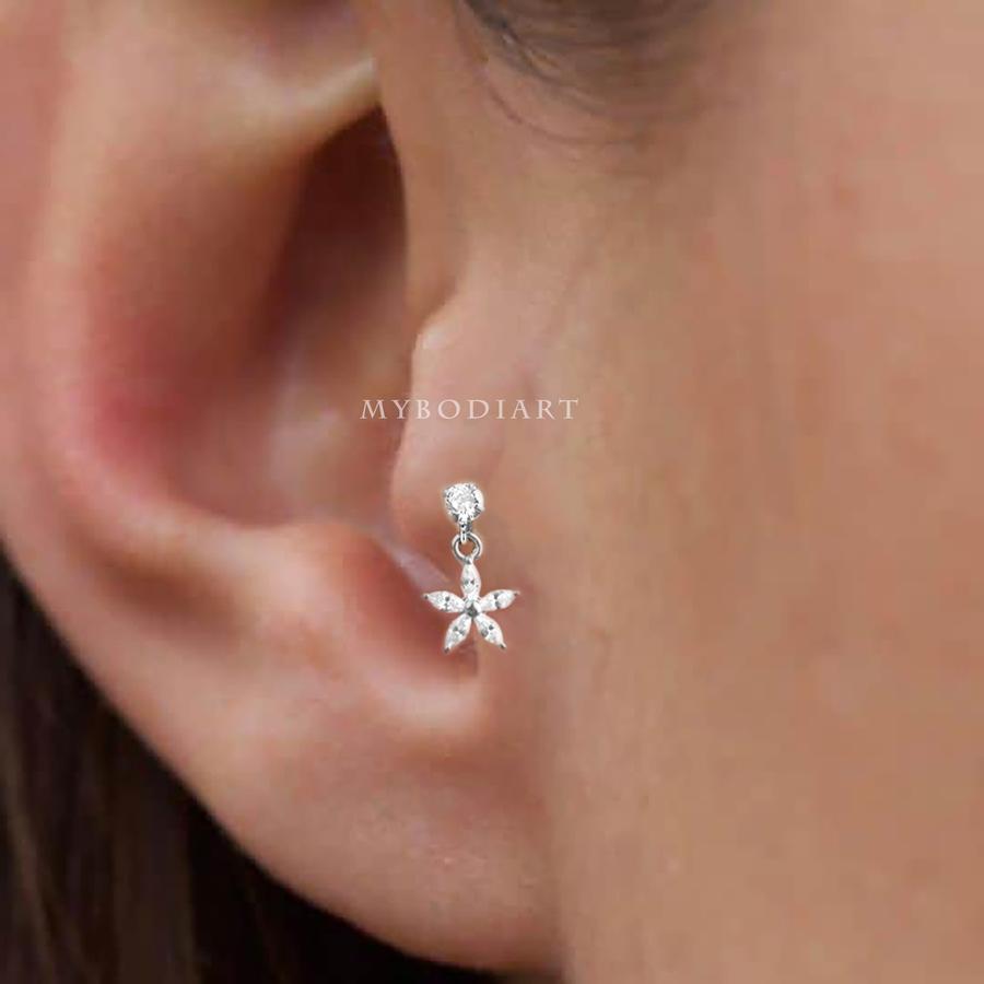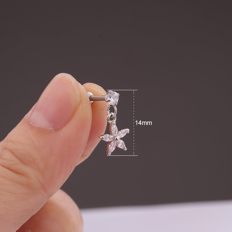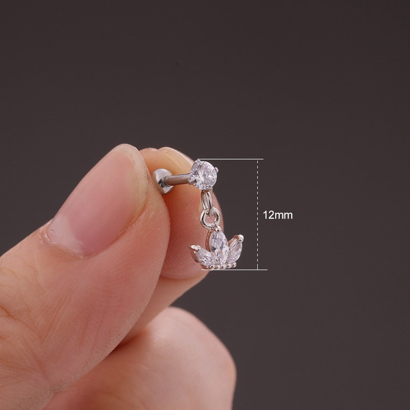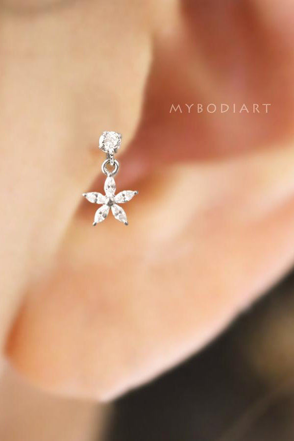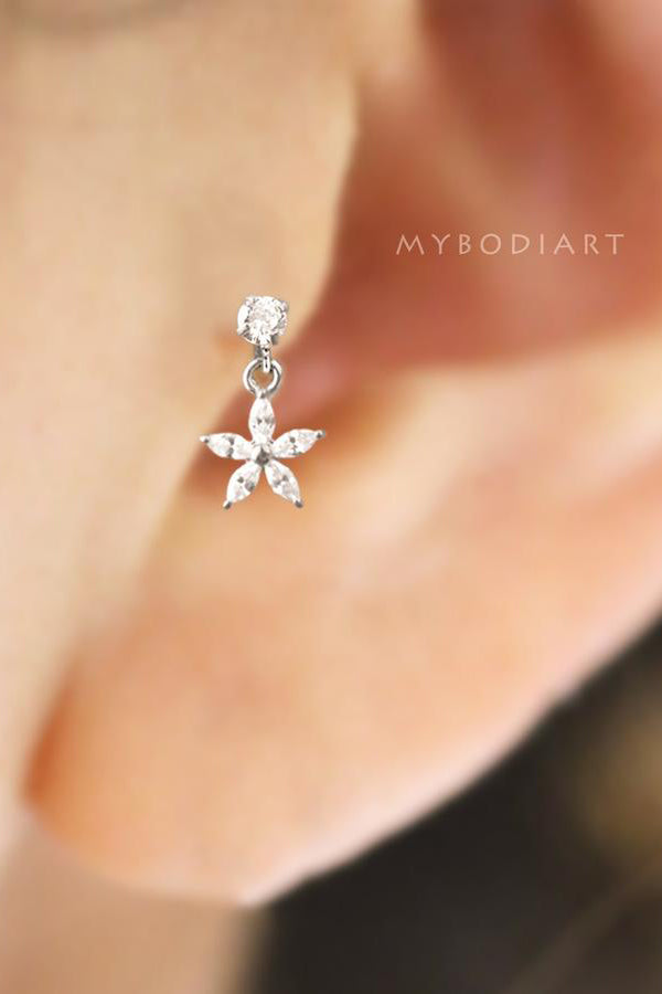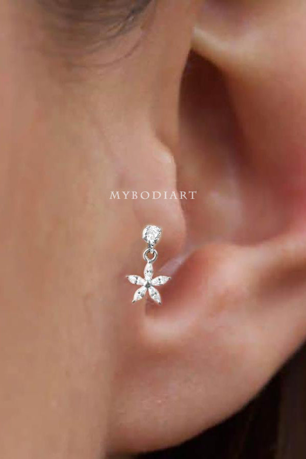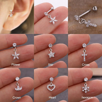 Lily Crystal Flower Star Cross Heart Dangle Ear Piercing Stud in Silver