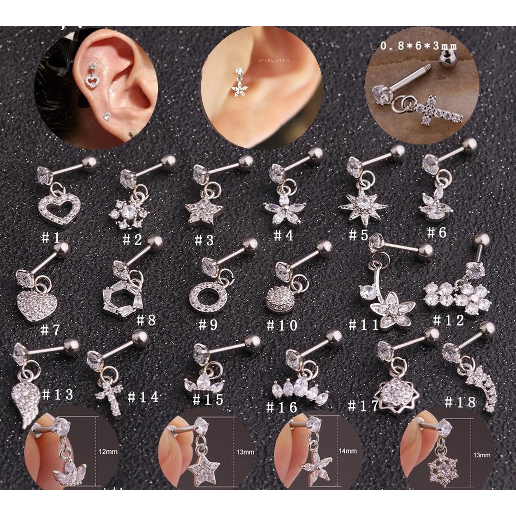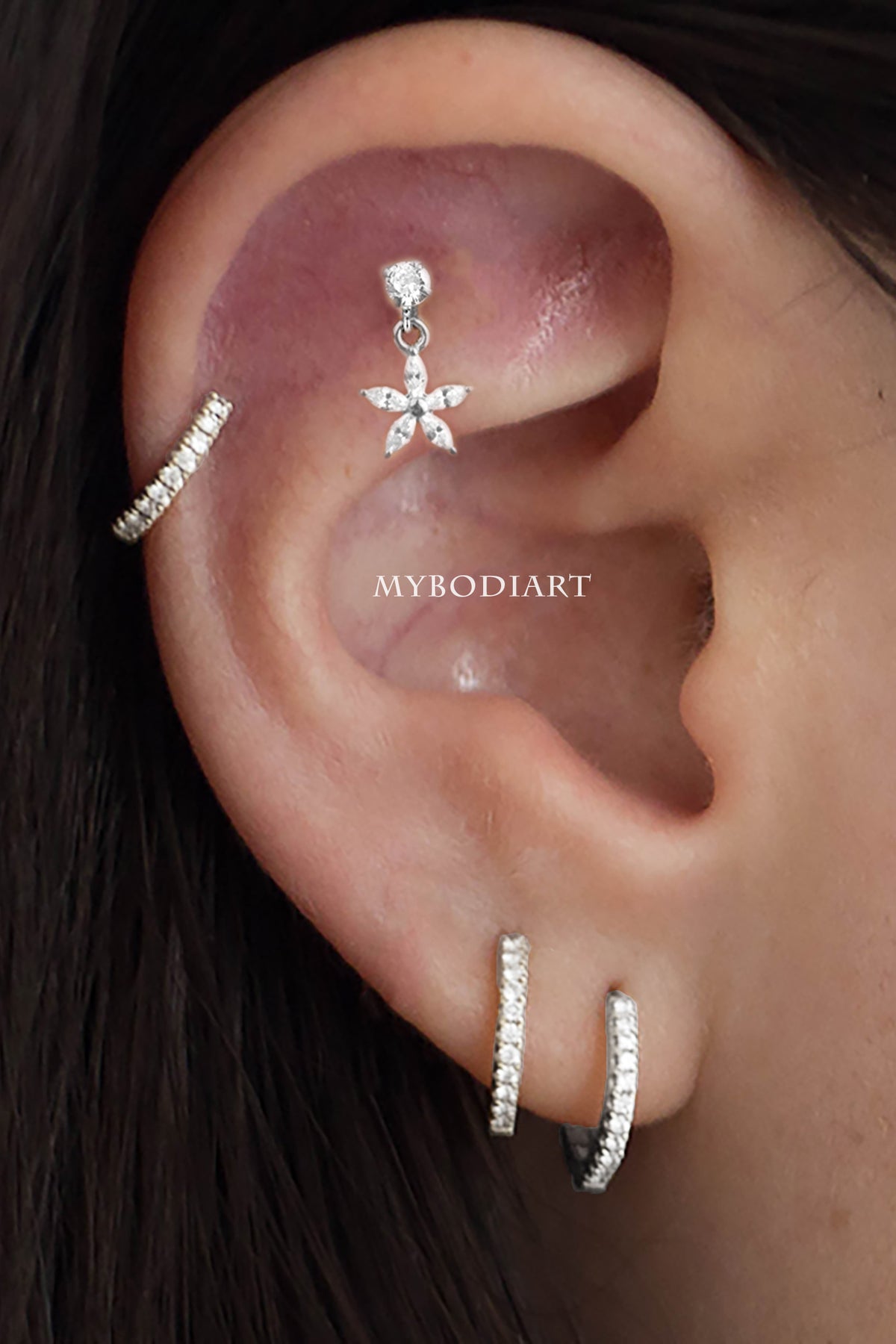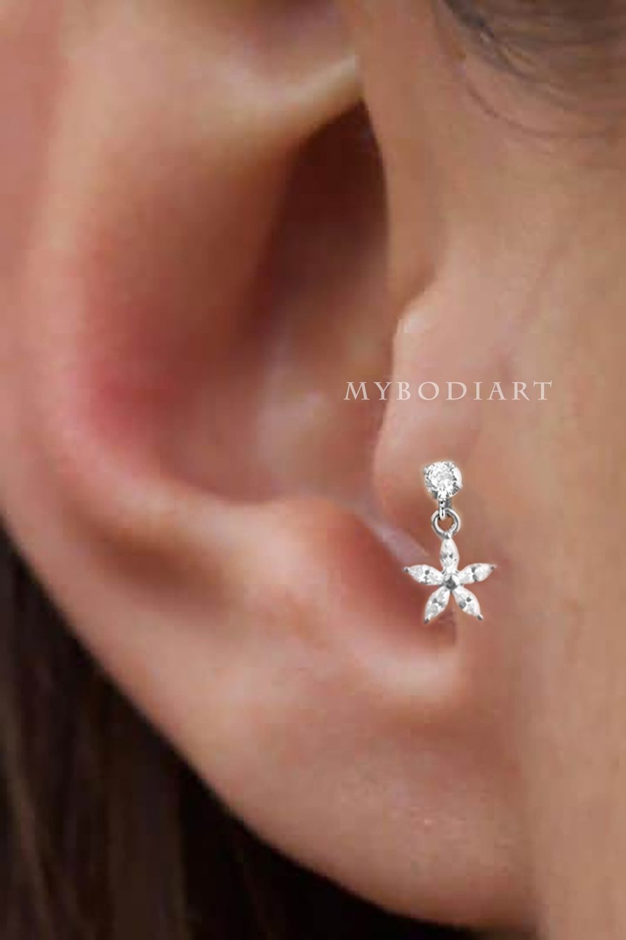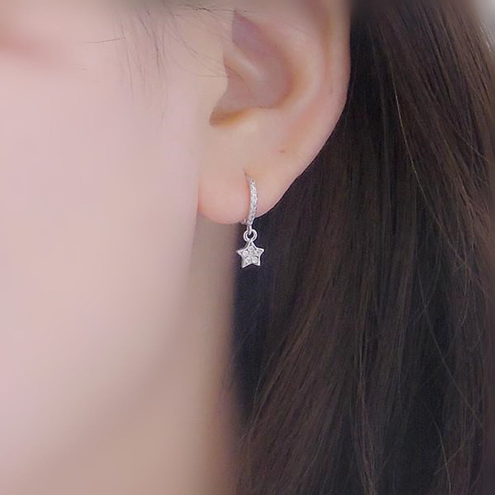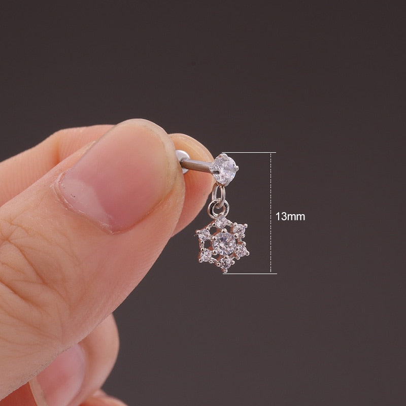 Lily Crystal Flower Star Cross Heart Dangle Ear Piercing Stud in Silver