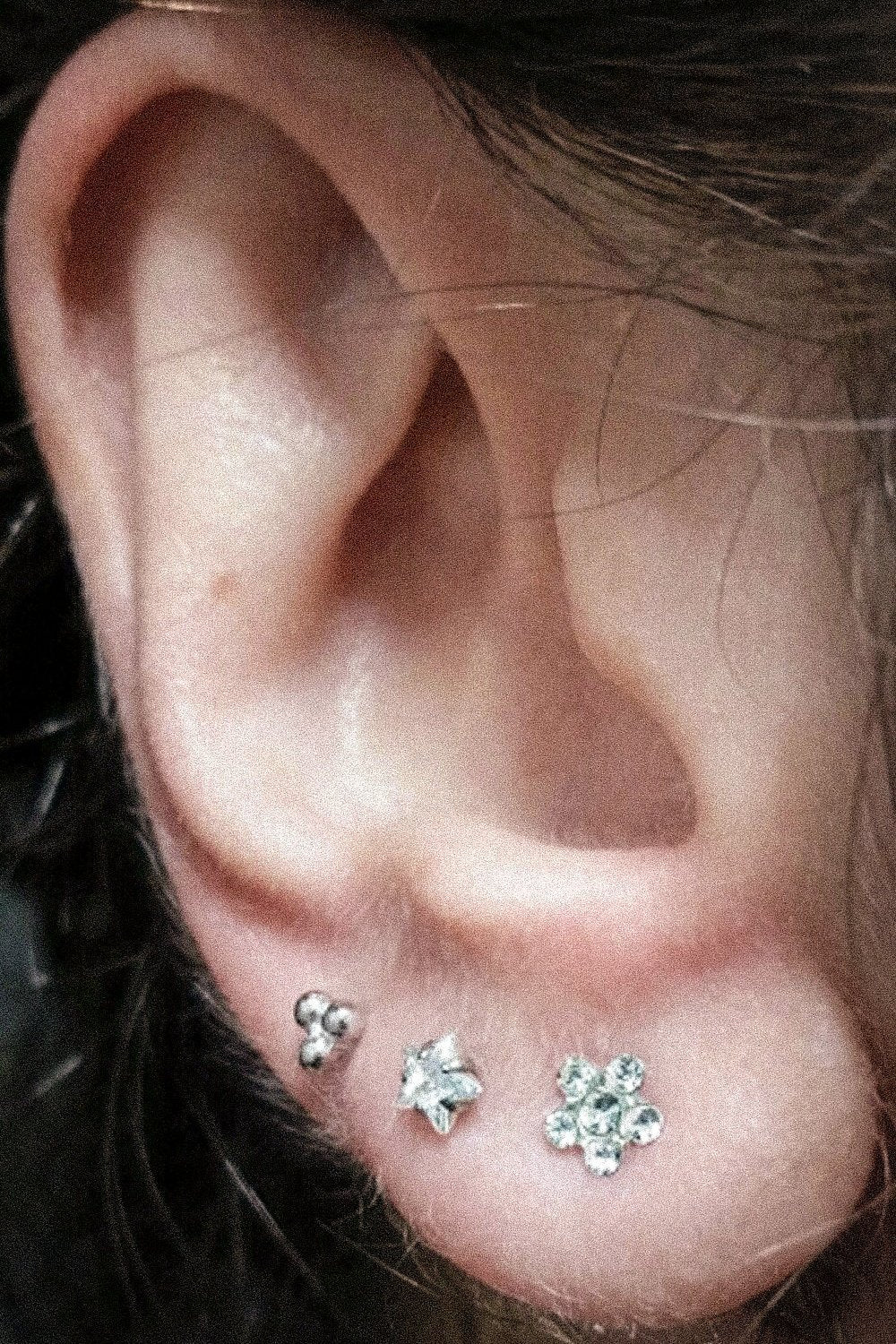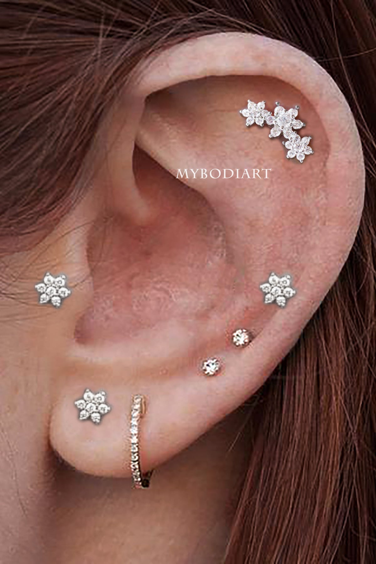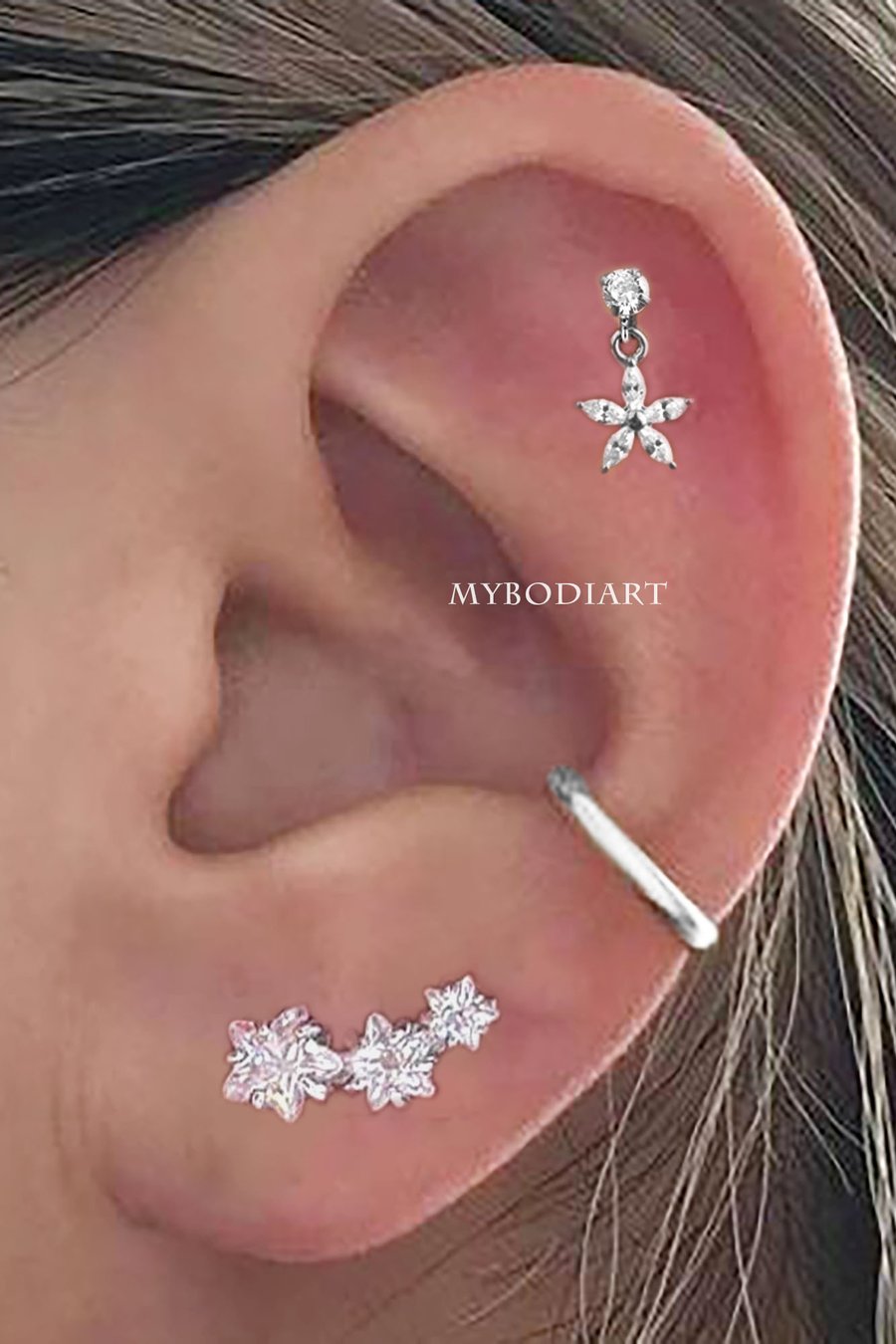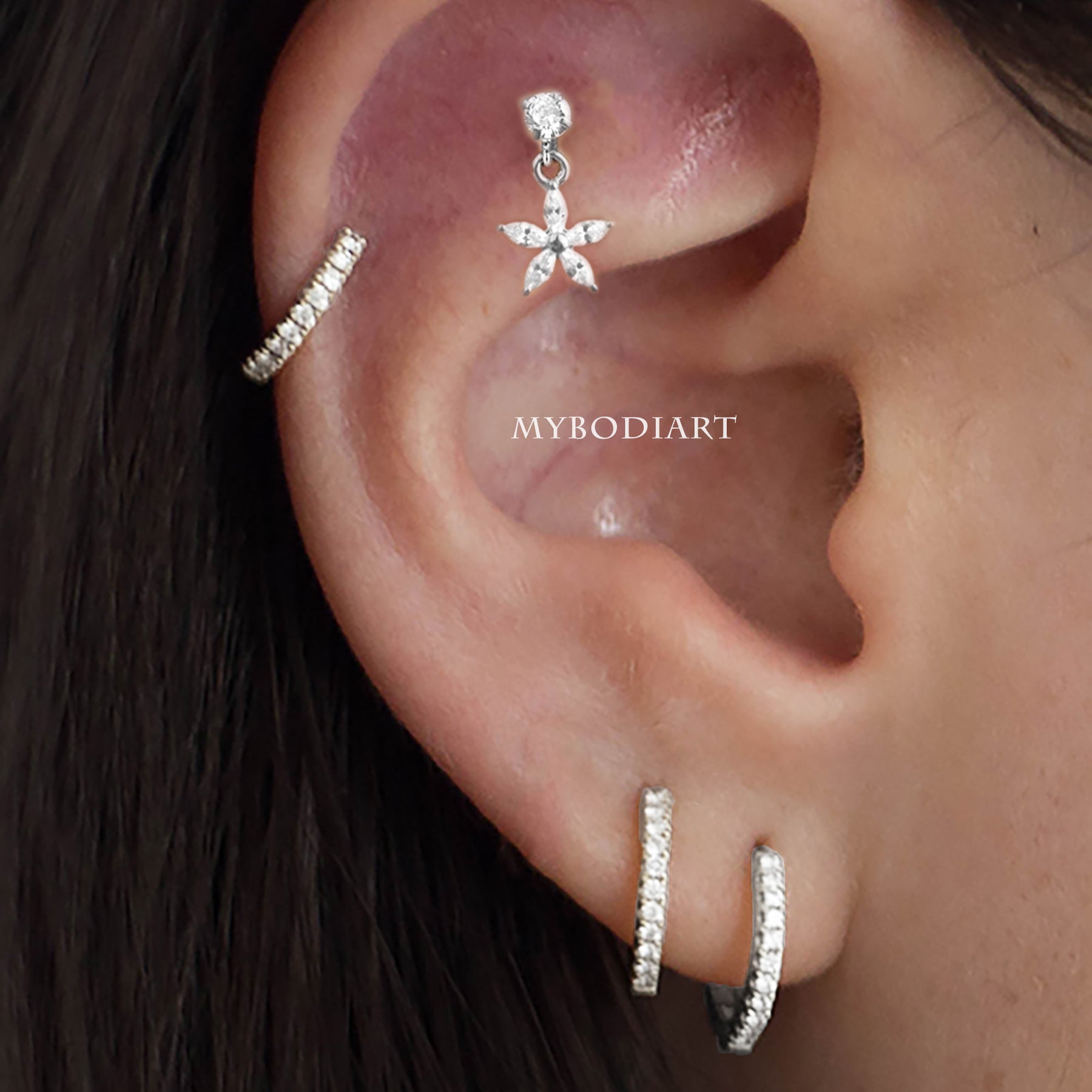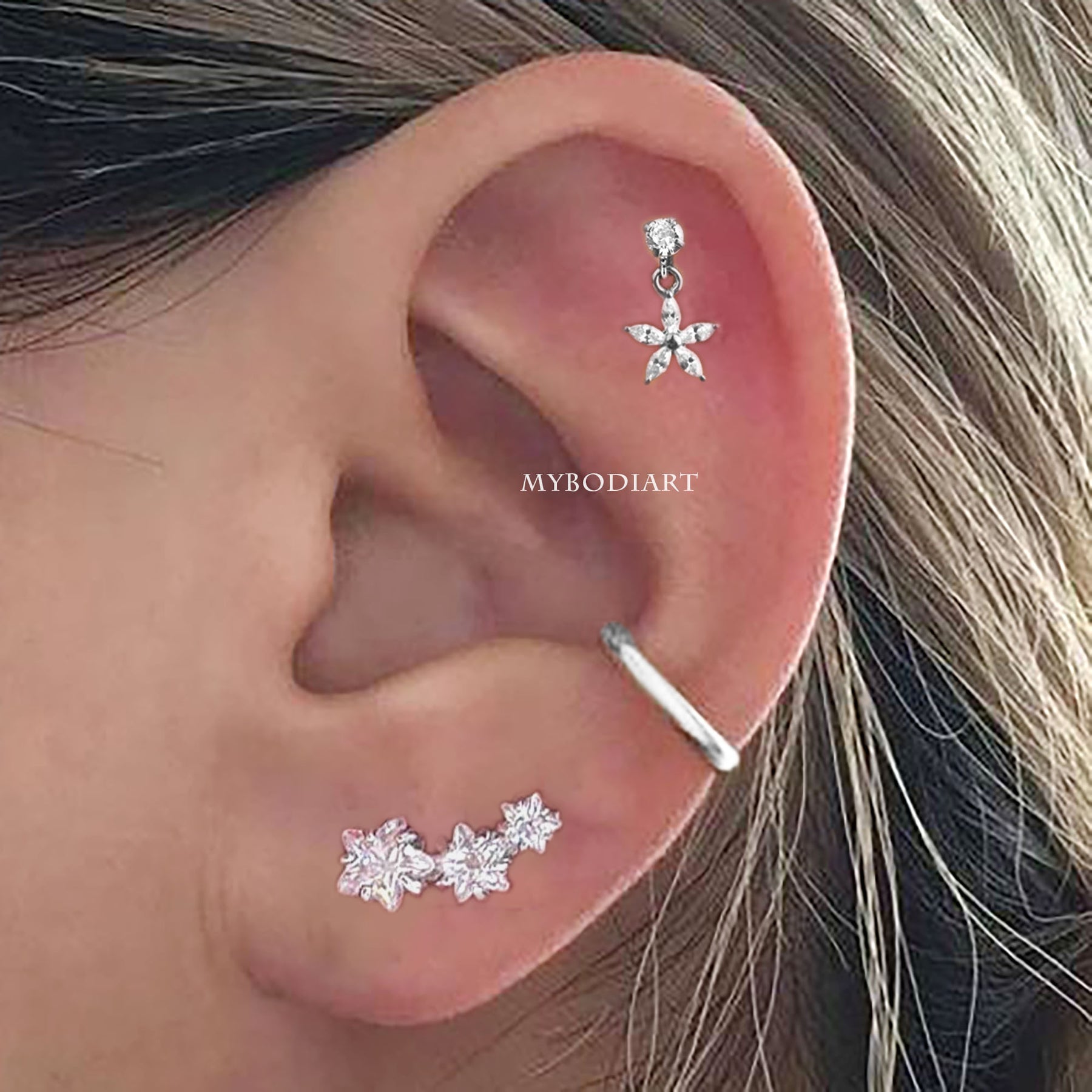 Lily Crystal Flower Star Cross Heart Dangle Ear Piercing Stud in Silver