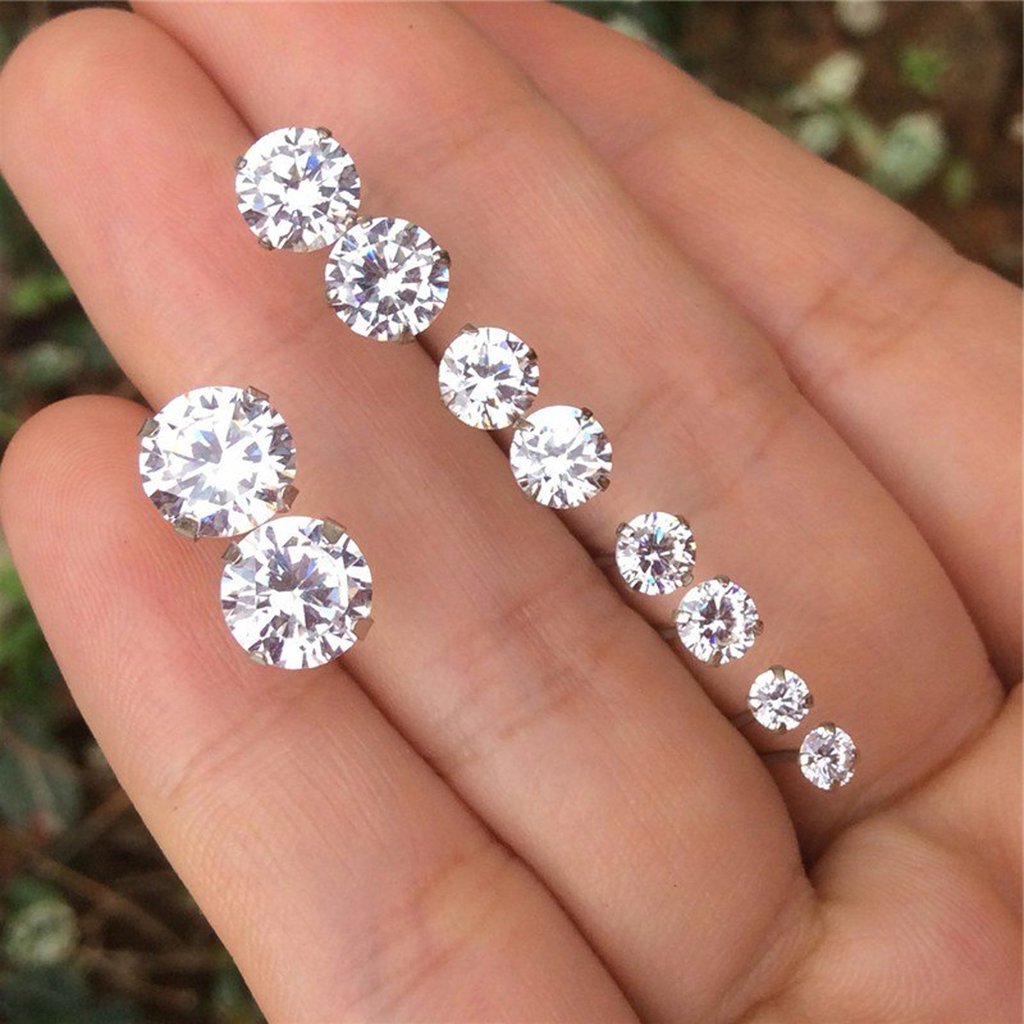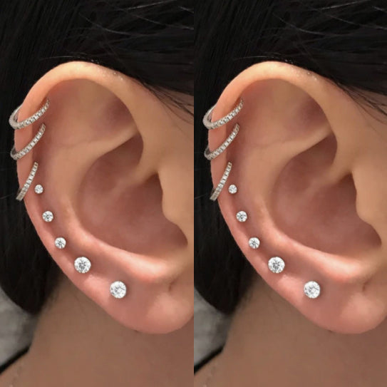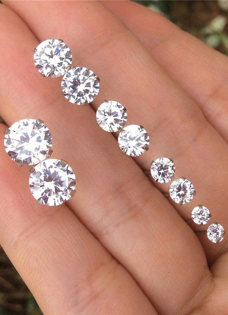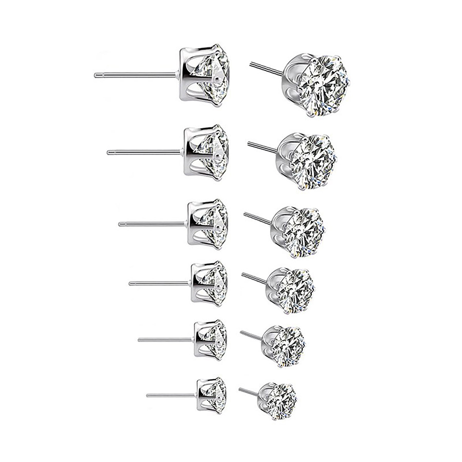 Nur 6 Pairs of Ultra Shine Crystal Earring Studs Set in Silver