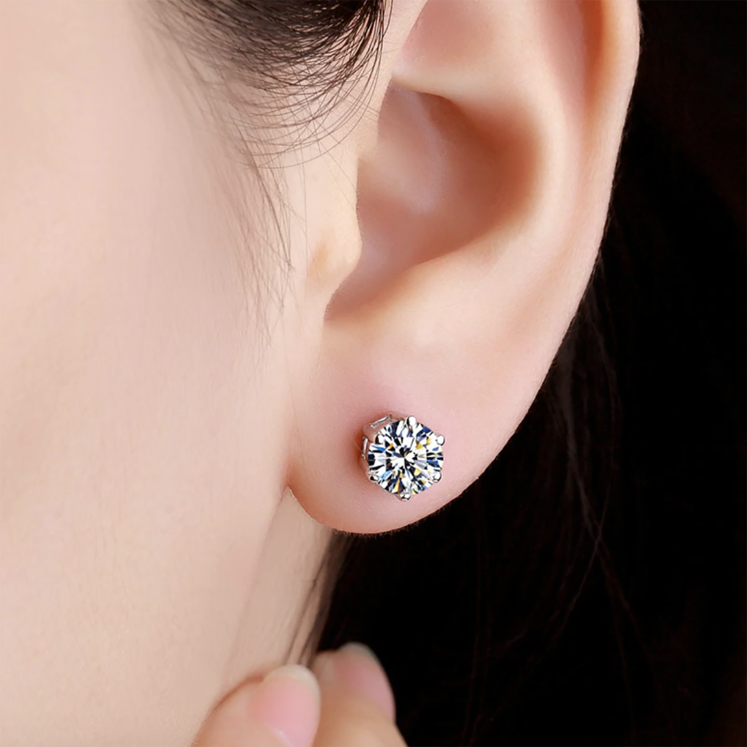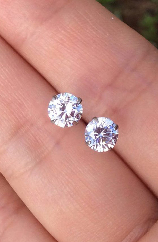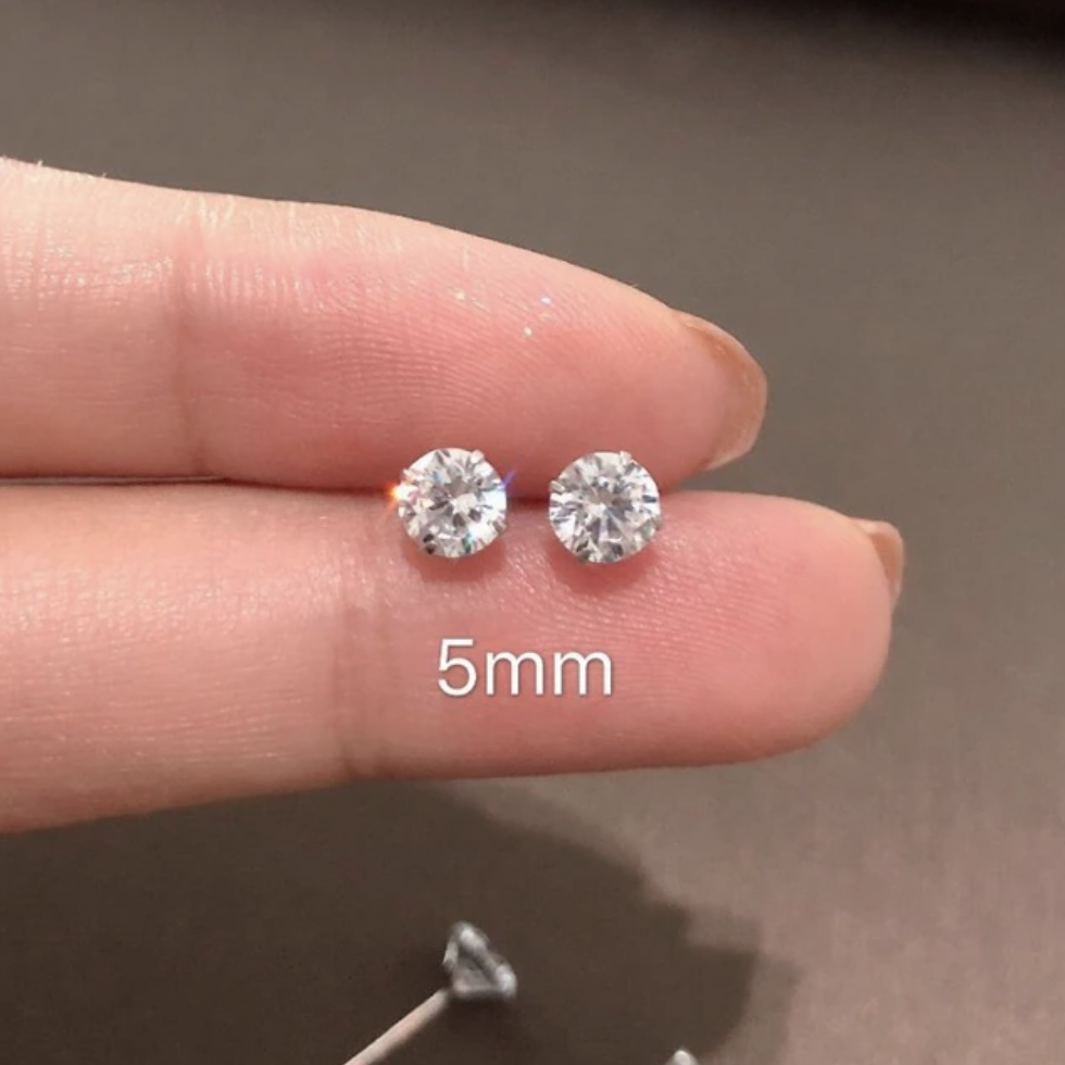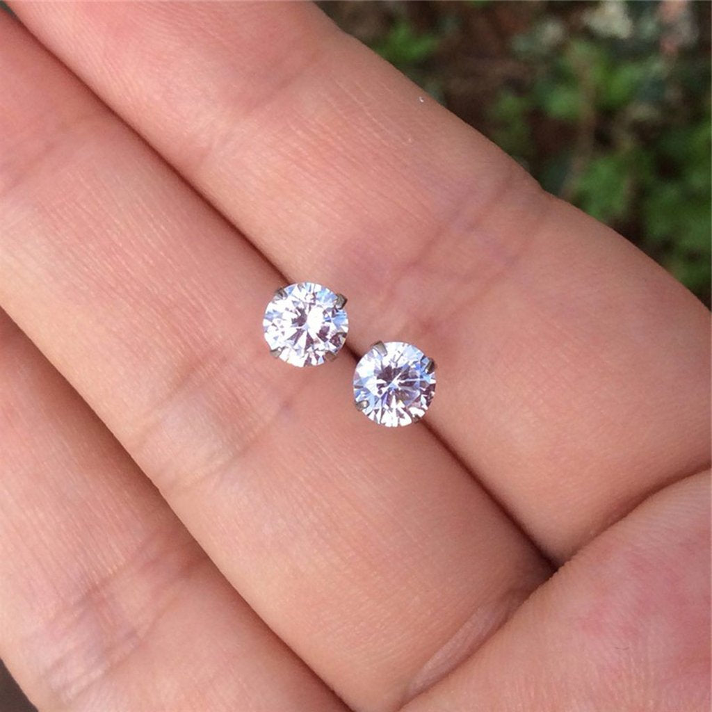 Nur 6 Pairs of Ultra Shine Crystal Earring Studs Set in Silver