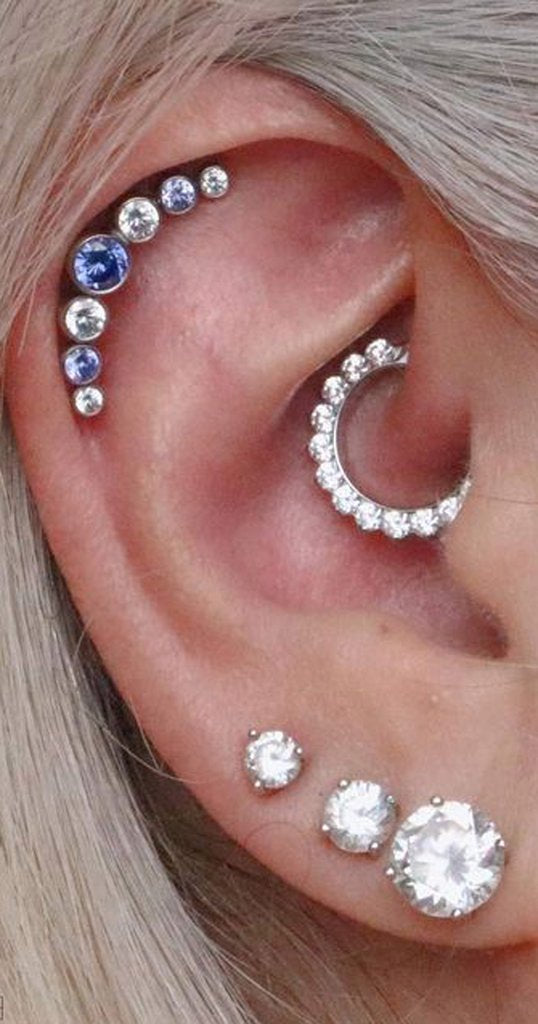 Nur Swarovski Circle Crystal Ear Piercing Jewelry 16G Earring