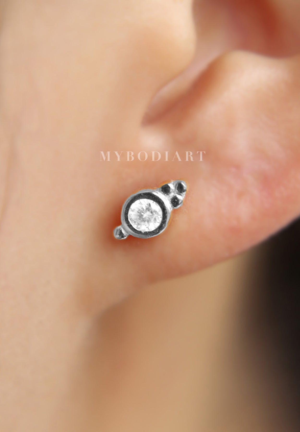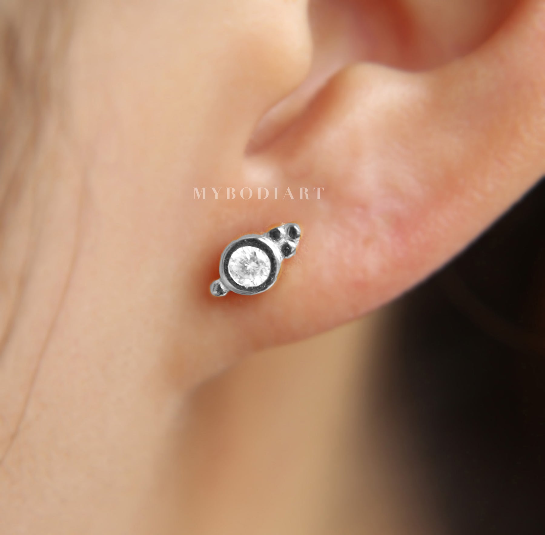 Nur Swarovski Circle Crystal Ear Piercing Jewelry 16G Silver Earring