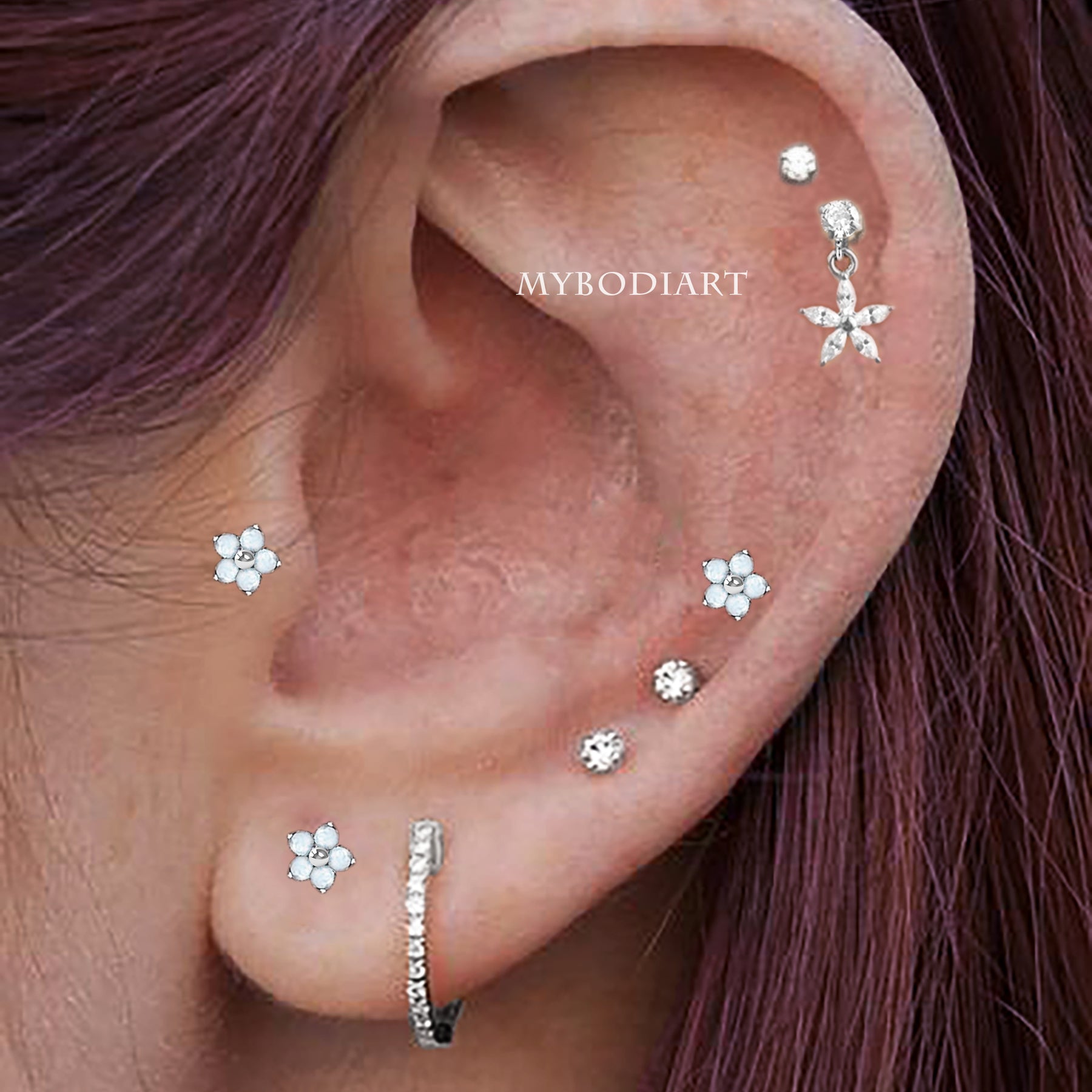 Maryllis Cute Opal Flower Ear Piercing Jewelry 16G Earring Studs