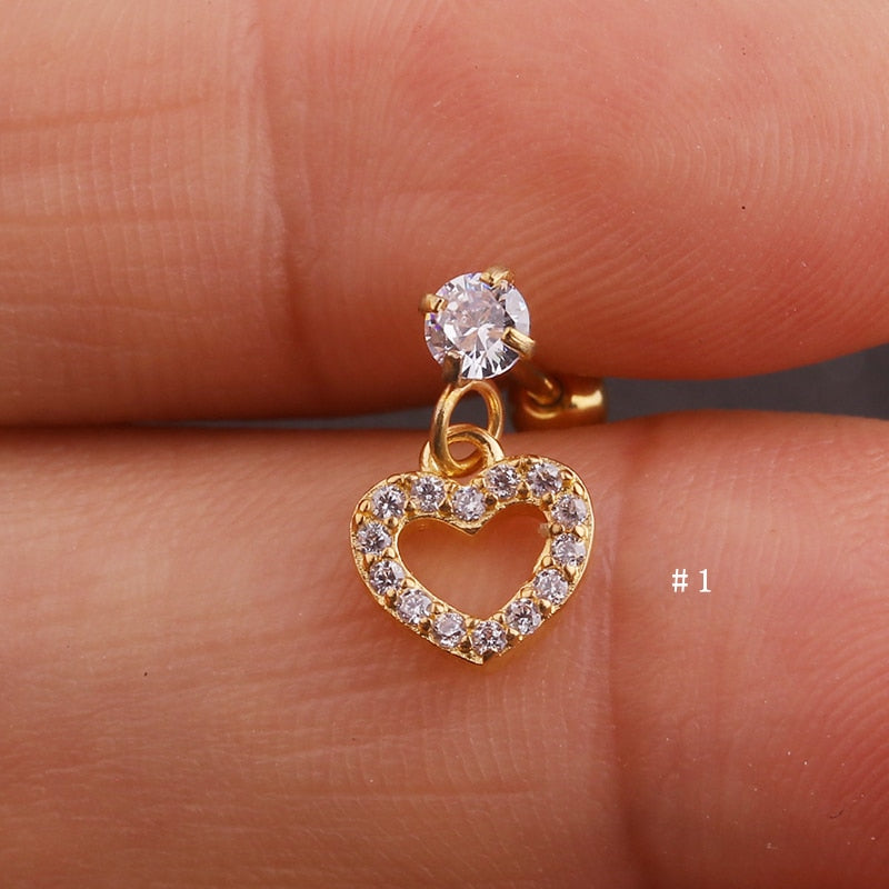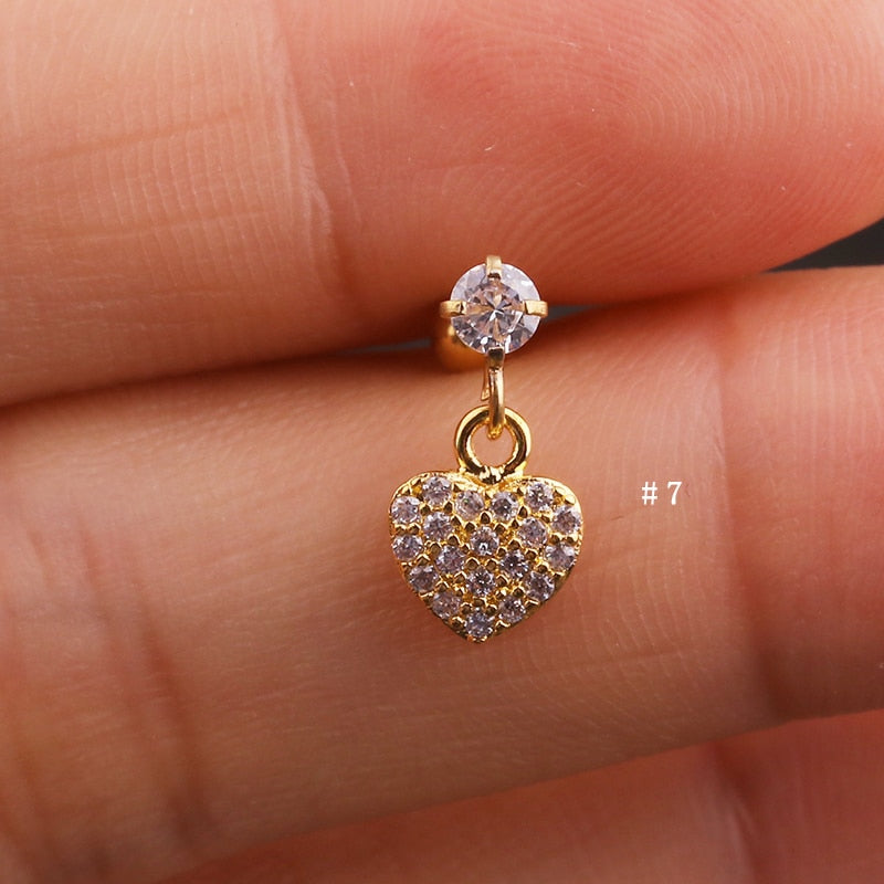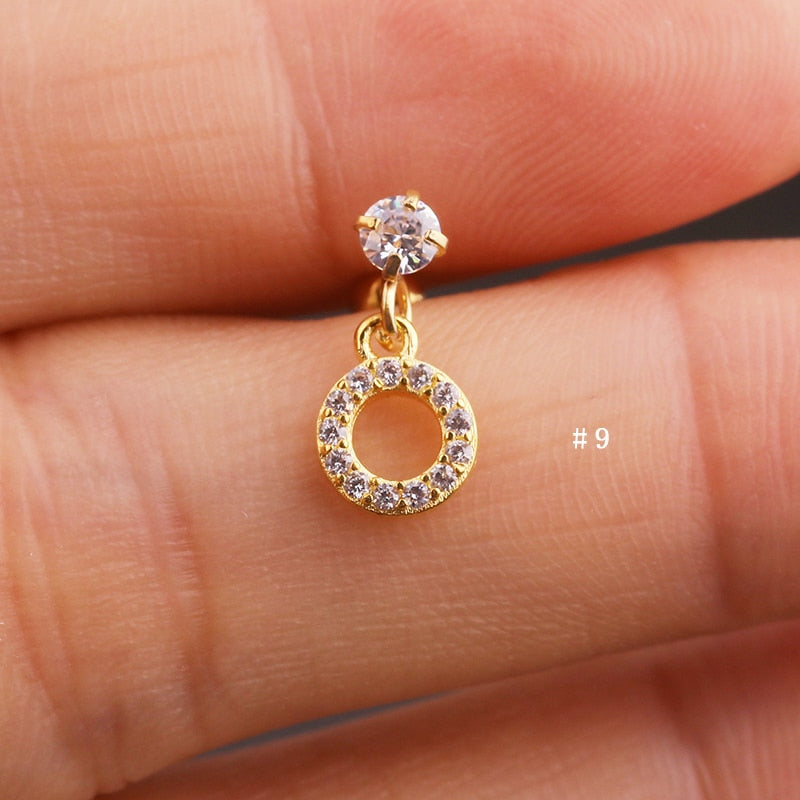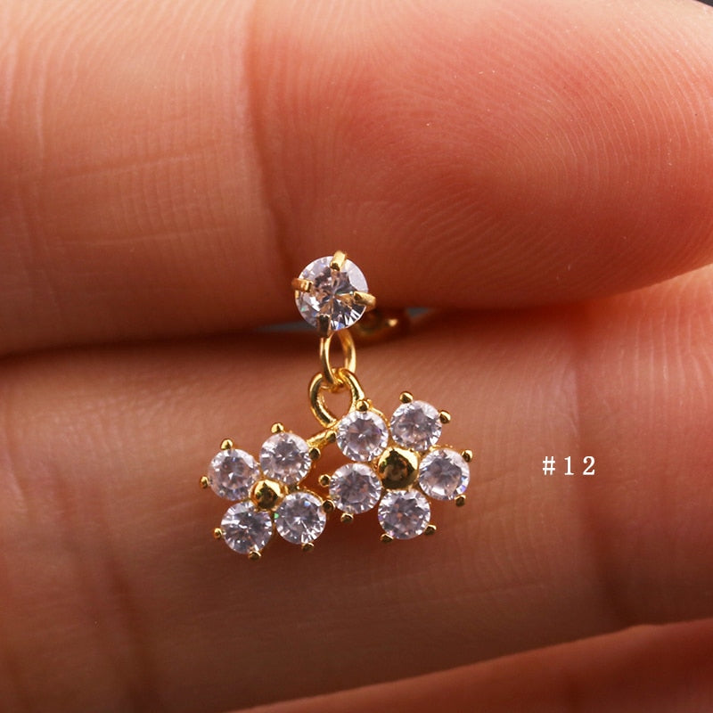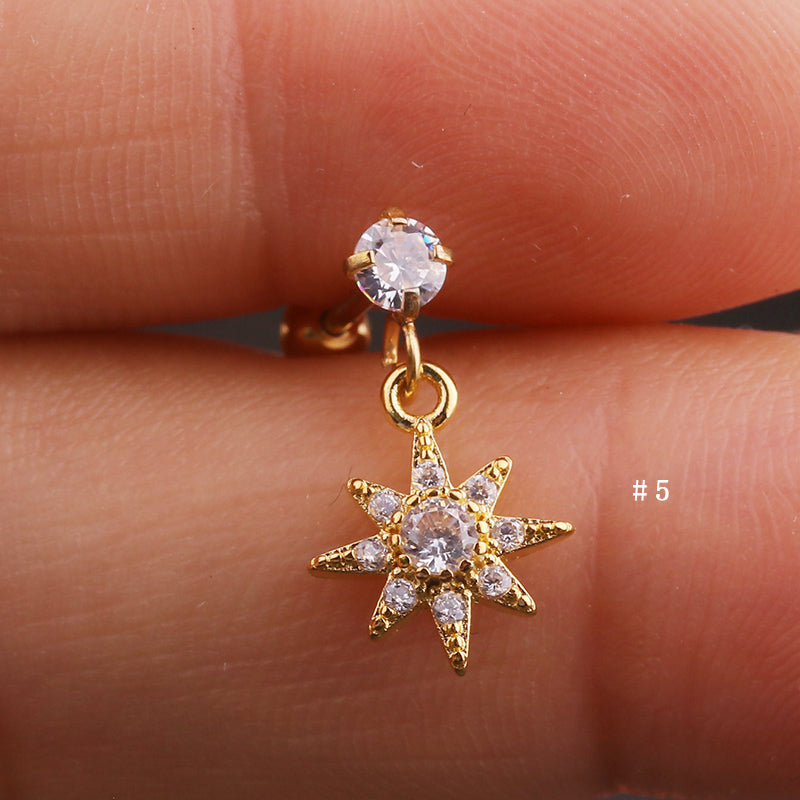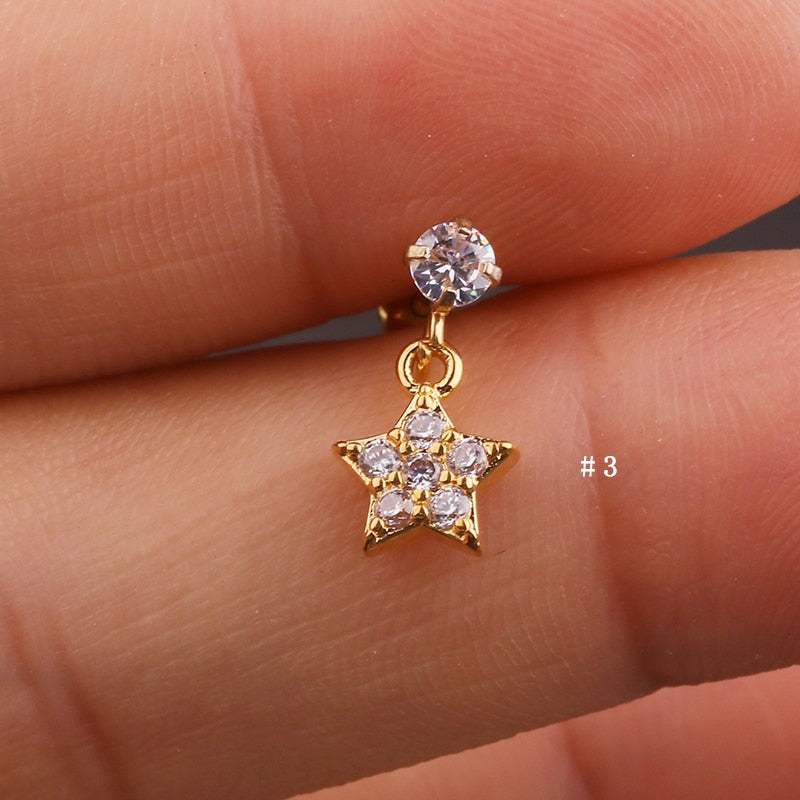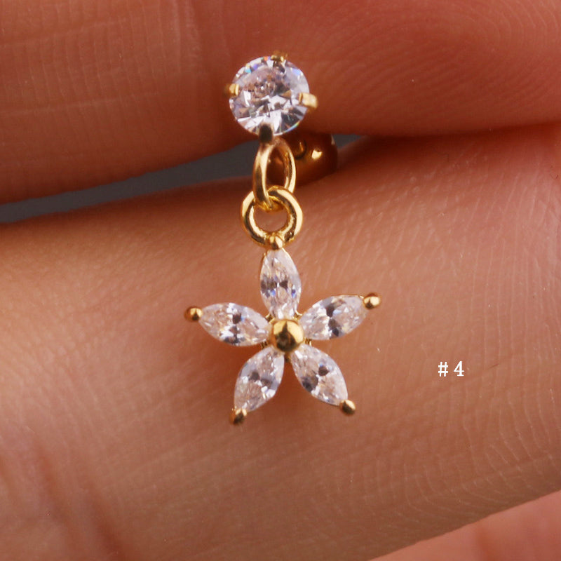 Lily Crystal Flower Star Cross Heart Dangle Ear Piercing Stud in Gold