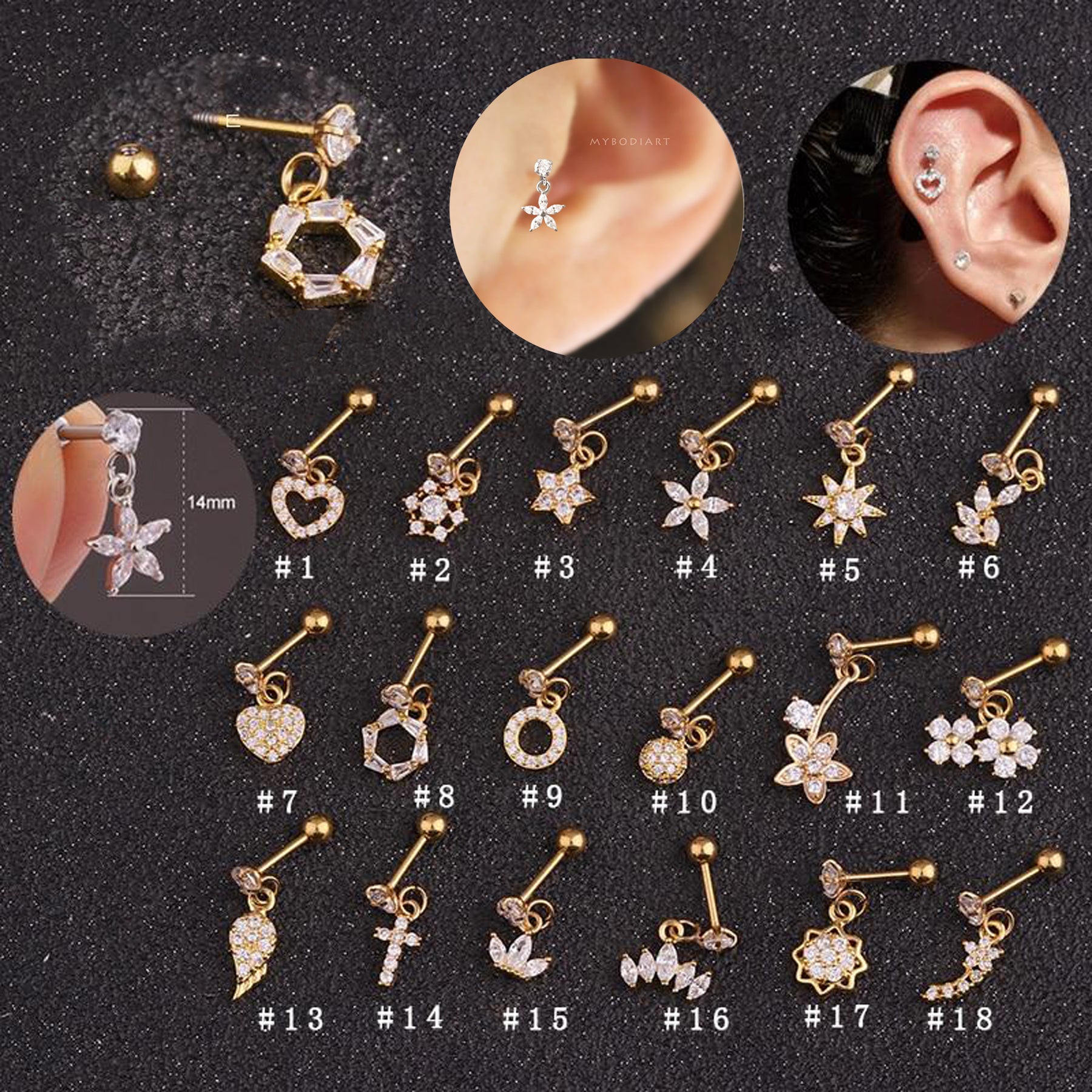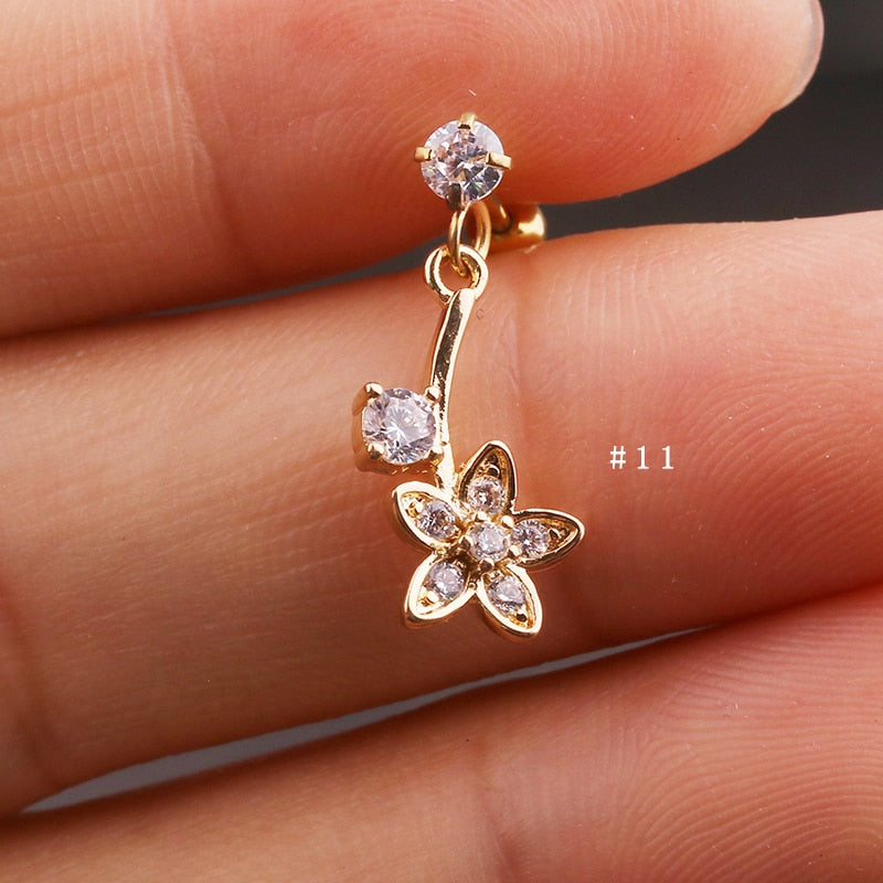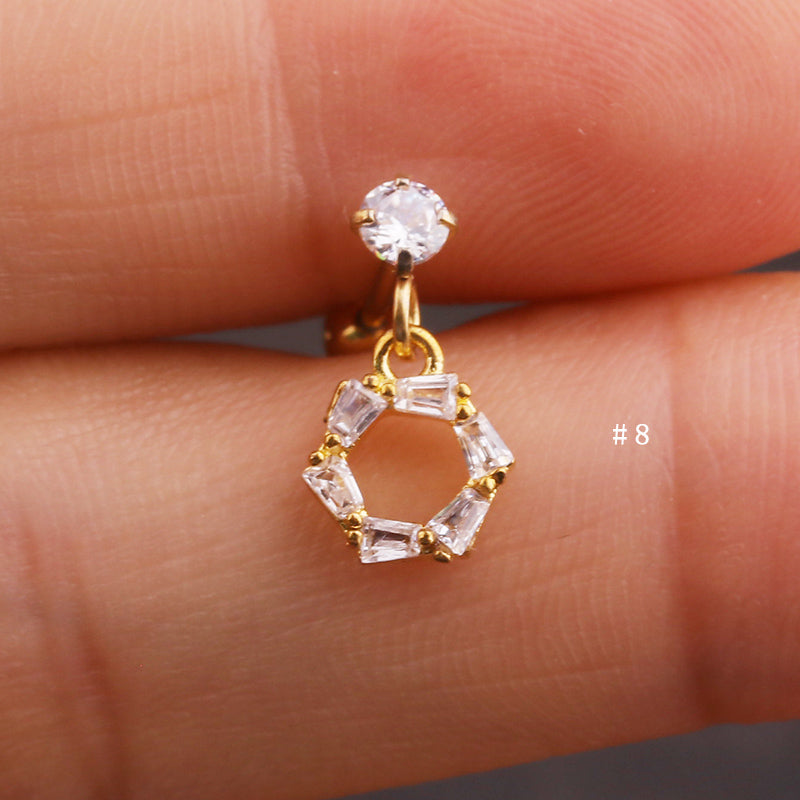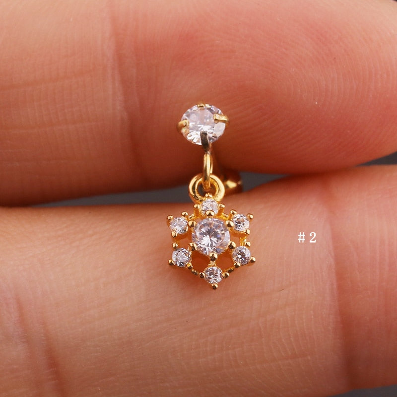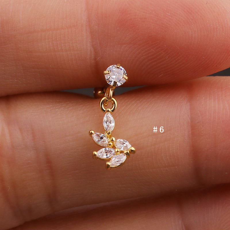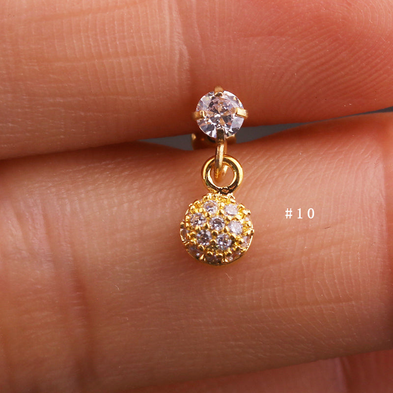 Lily Crystal Flower Star Cross Heart Dangle Ear Piercing Stud in Gold