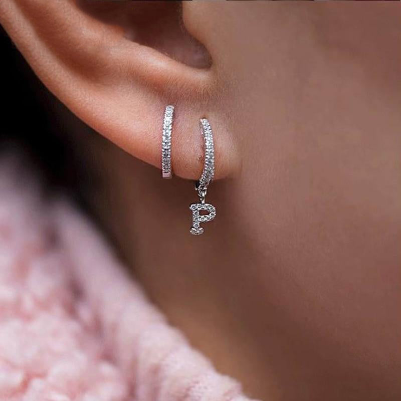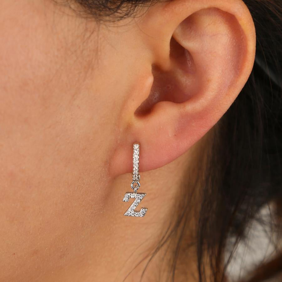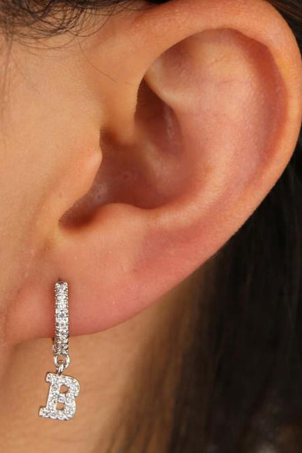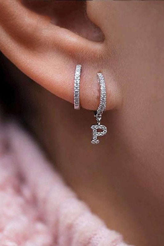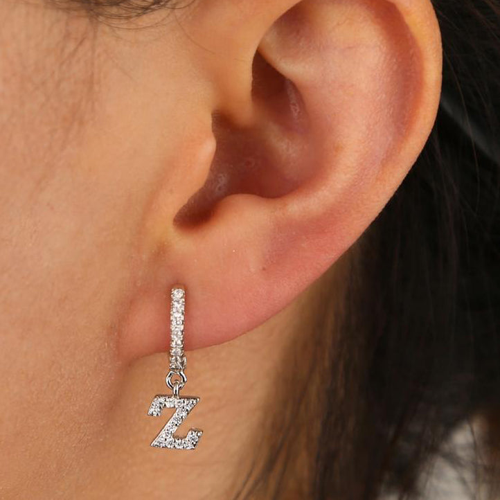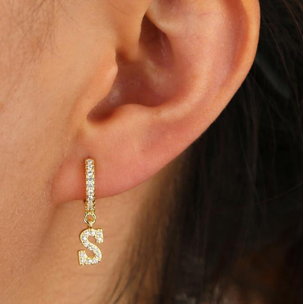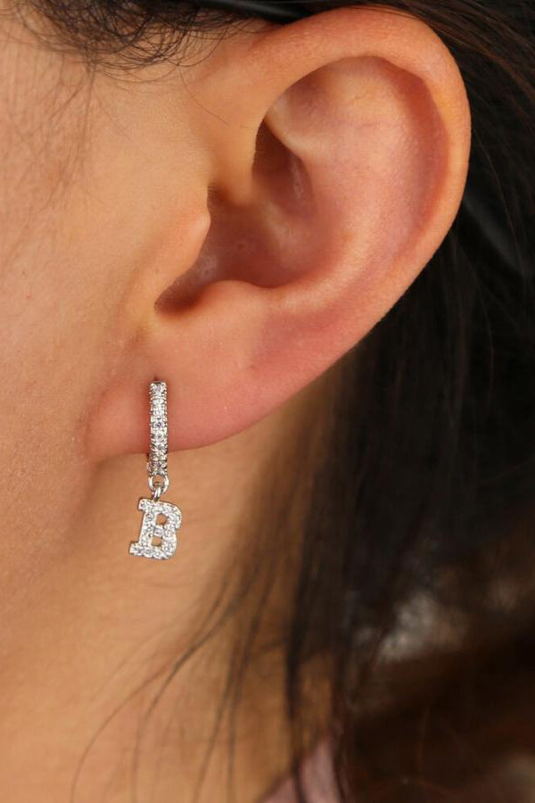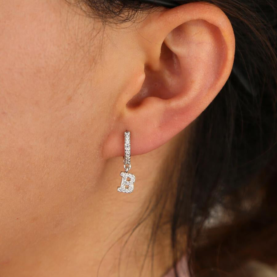 Kiera Alphabet Letter Crystal Pave Hoop Huggie Earrings