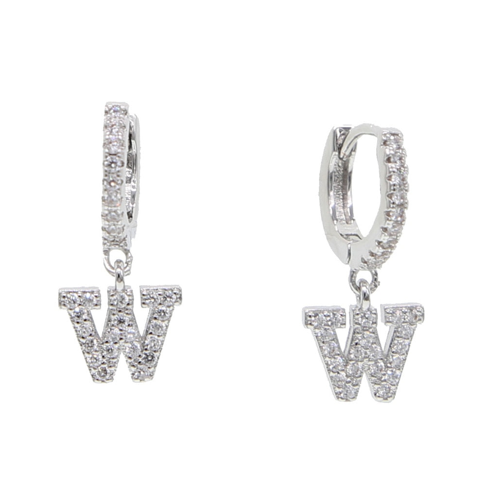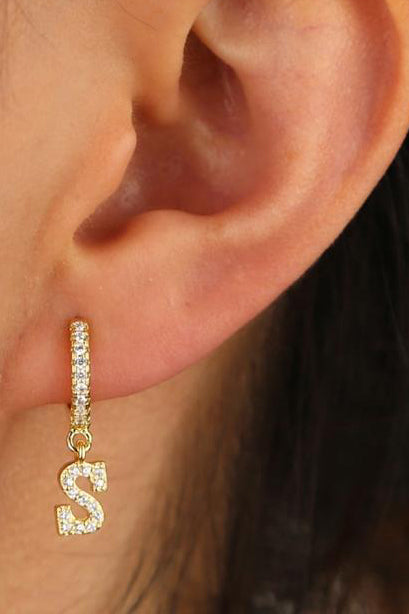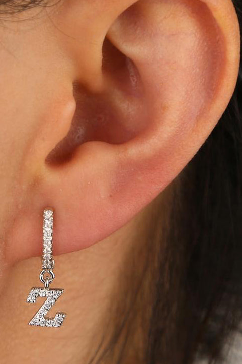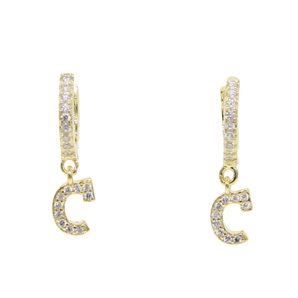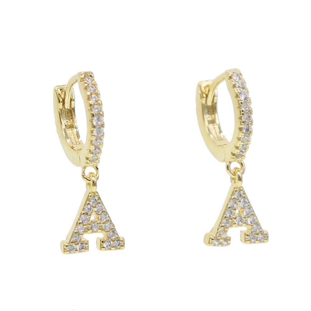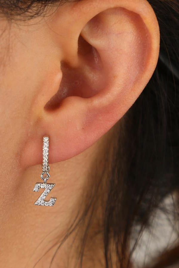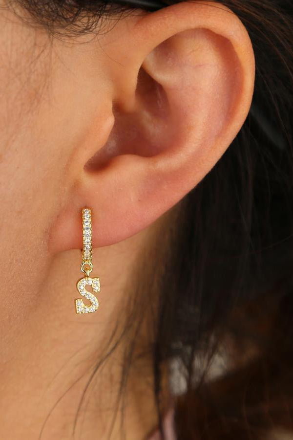 Kiera Alphabet Letter Crystal Pave Hoop Huggie Earrings