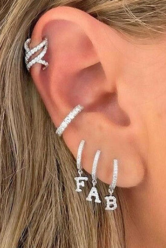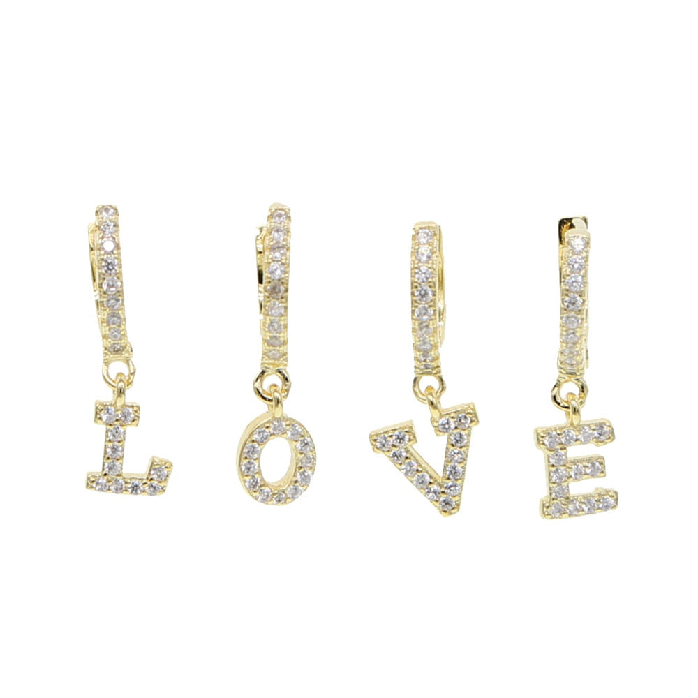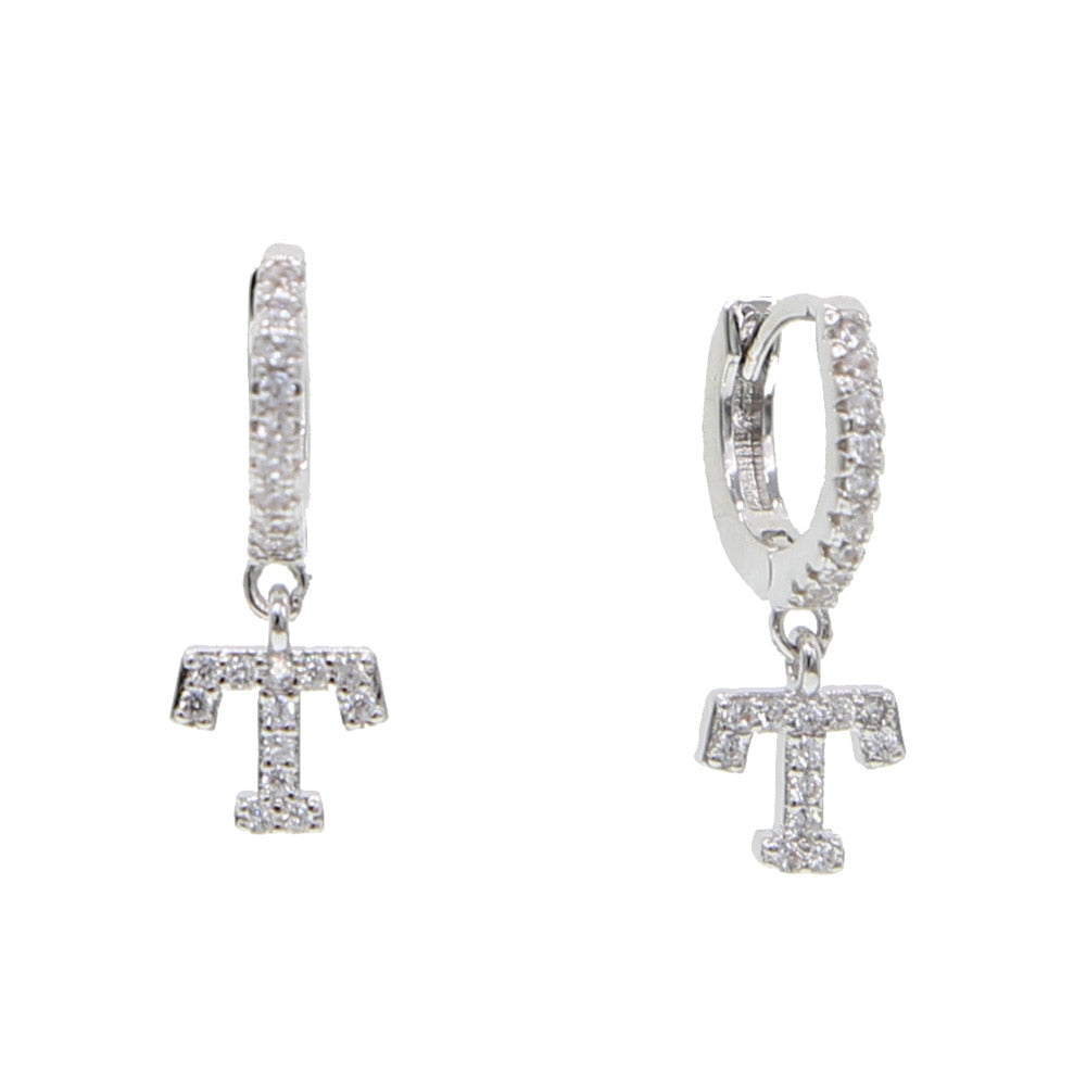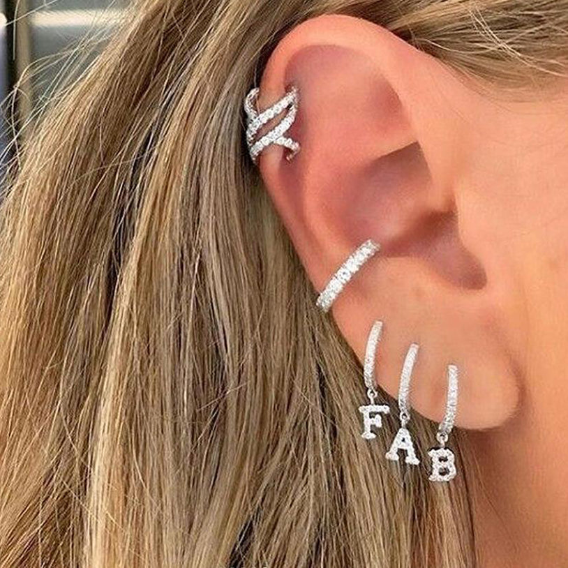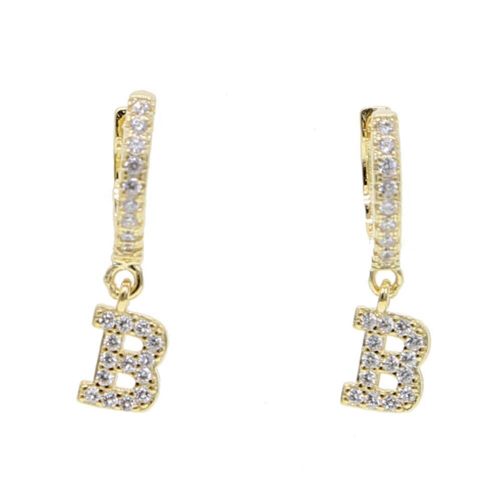 Kiera Alphabet Letter Crystal Pave Hoop Huggie Earrings