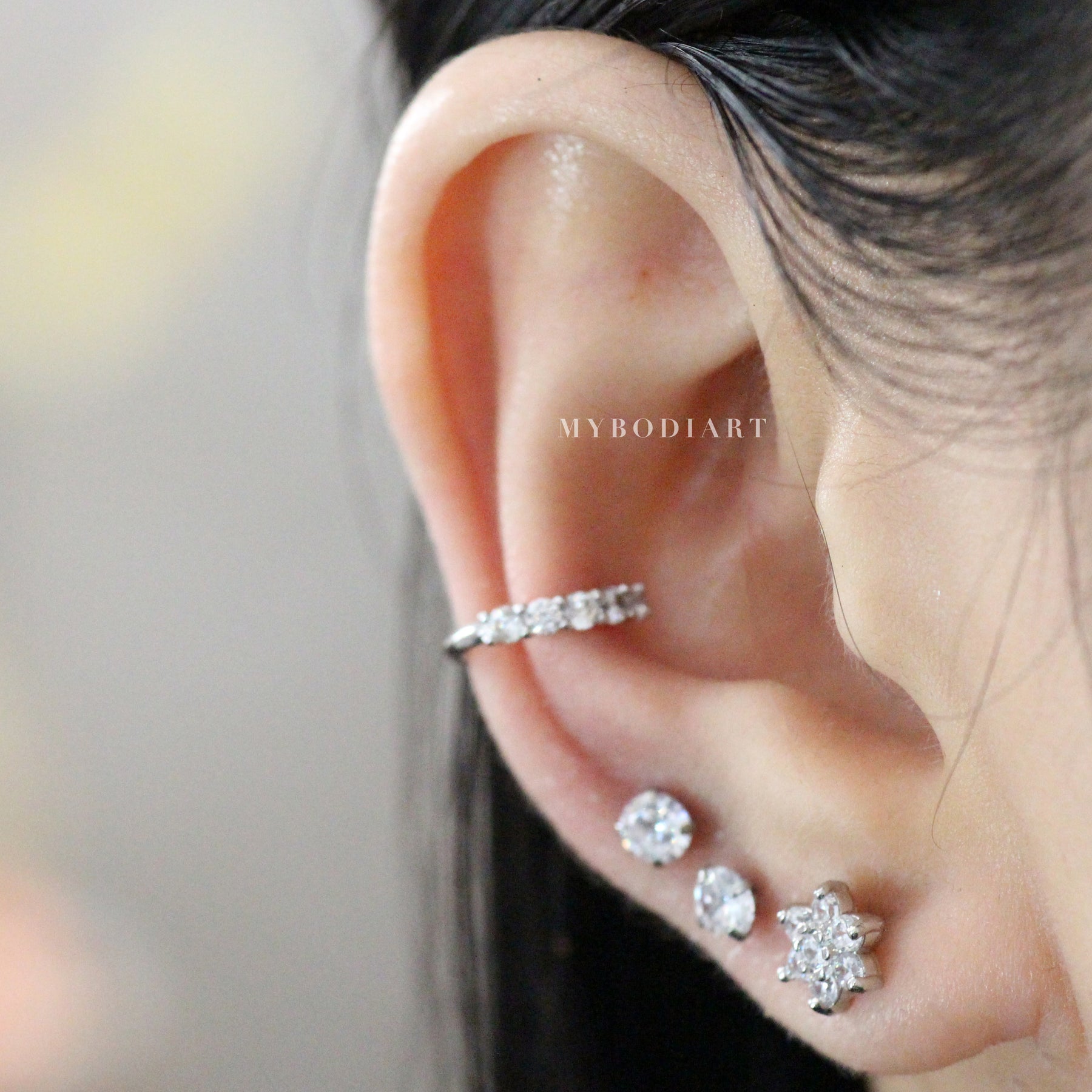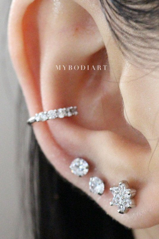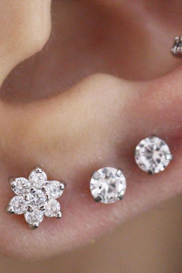 Silver - Pair of Piercings (2) - 3mm Crystal / 3mm Crystal -