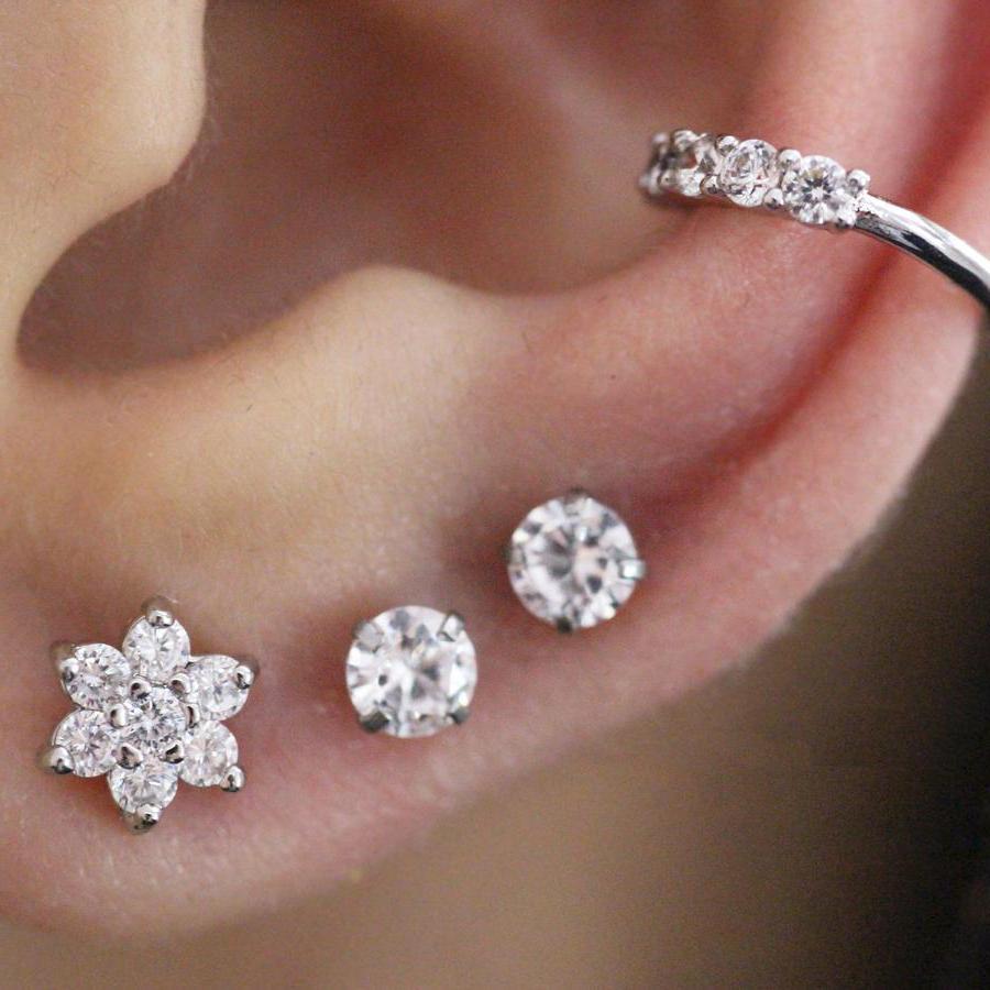 Silver - Pair of Piercings (2) - 3mm Crystal