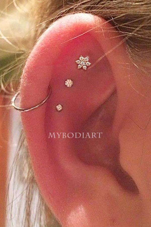 Gold - Pair of Piercings (2) - 3mm Crystal / 3mm Crystal -