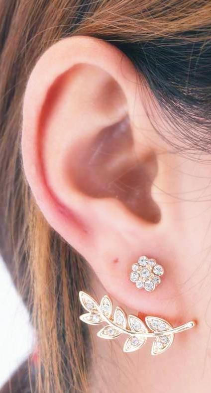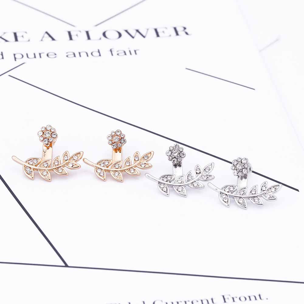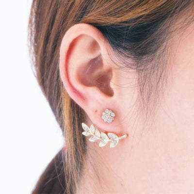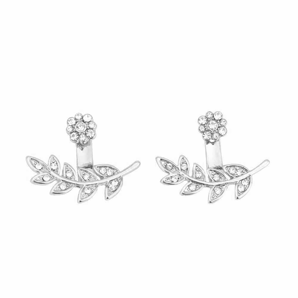 Misaki Trendy Crystal Flower & Leaf Ear Jacket Earrings in Silver or Gold