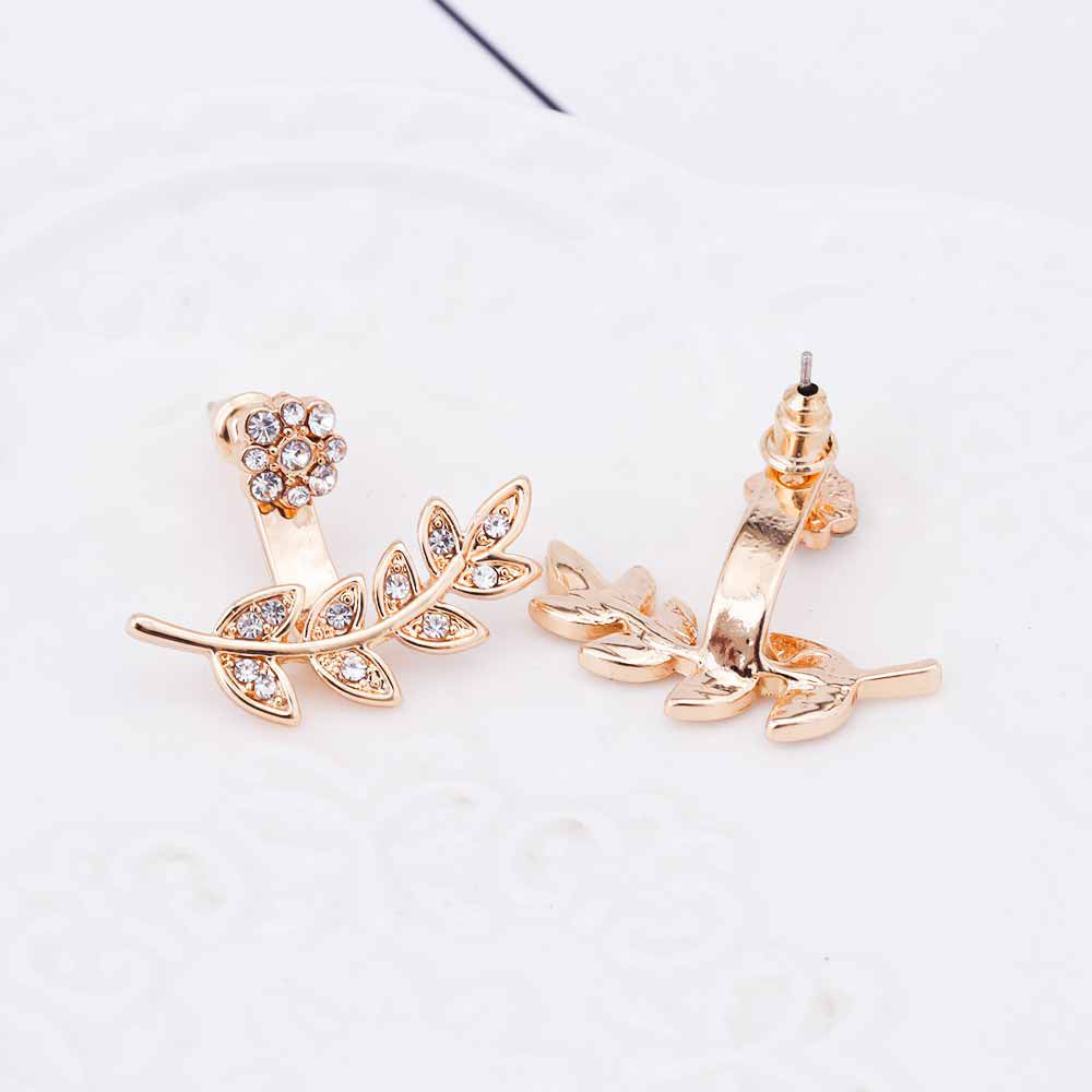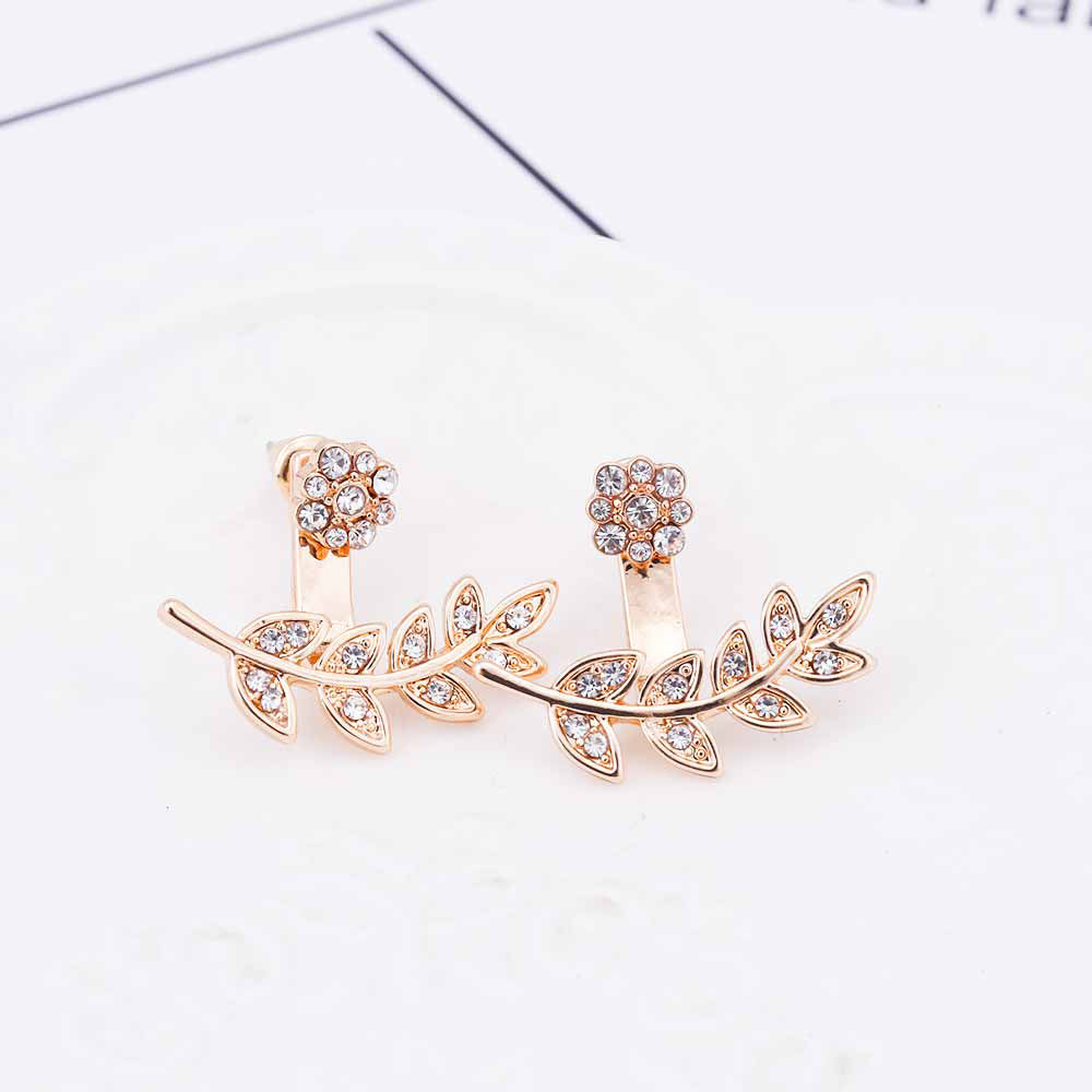 Capella Trendy Cubic Zirconia Crystal Leaf Ear Jacket Stud Earring