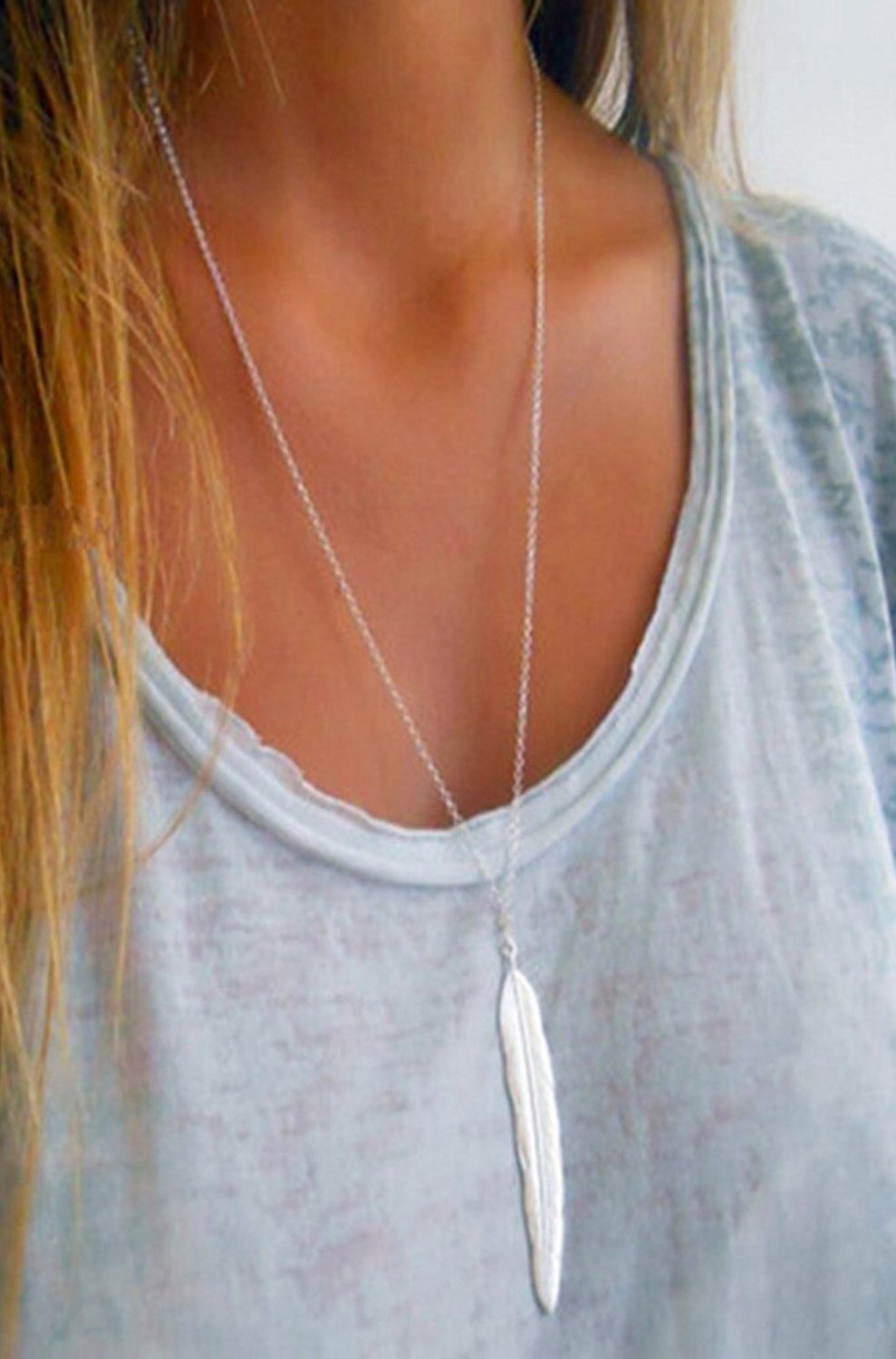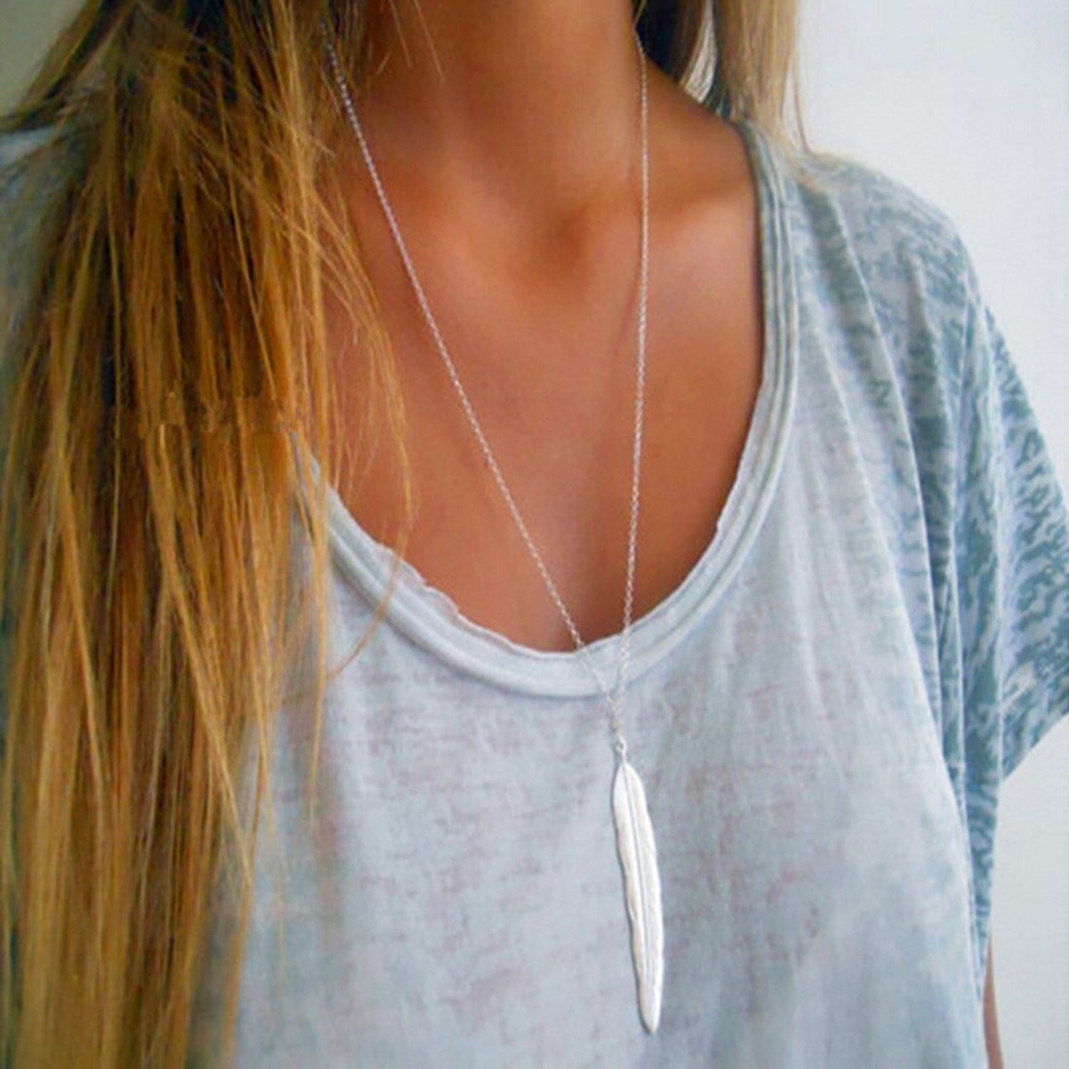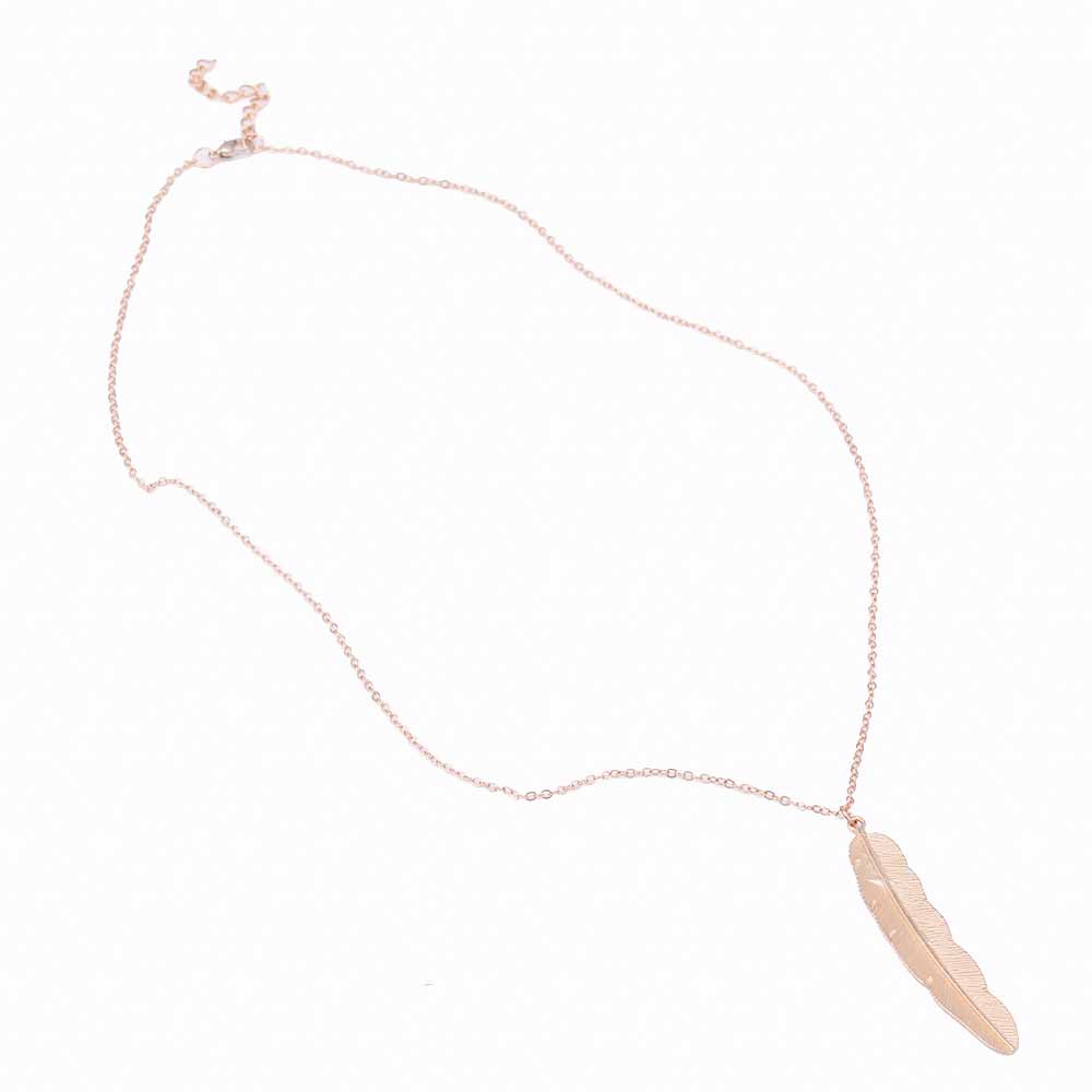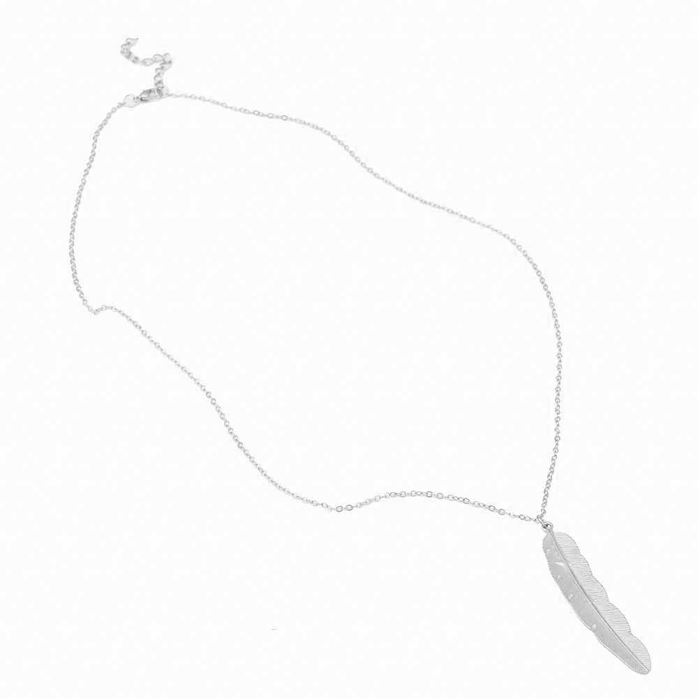 Feuille Boho Long Leaf Necklace in Silver or Gold