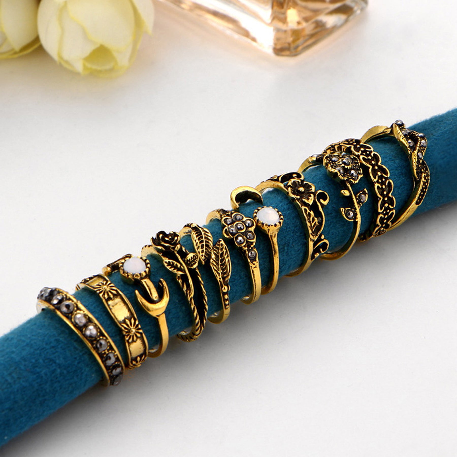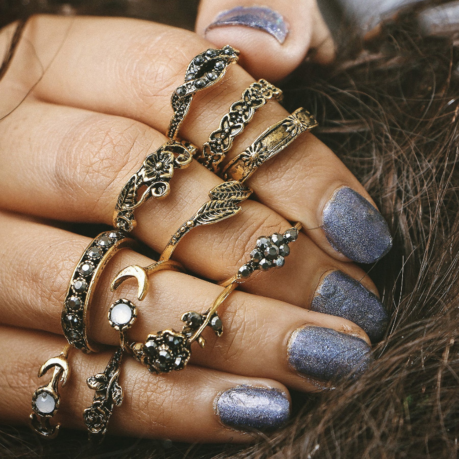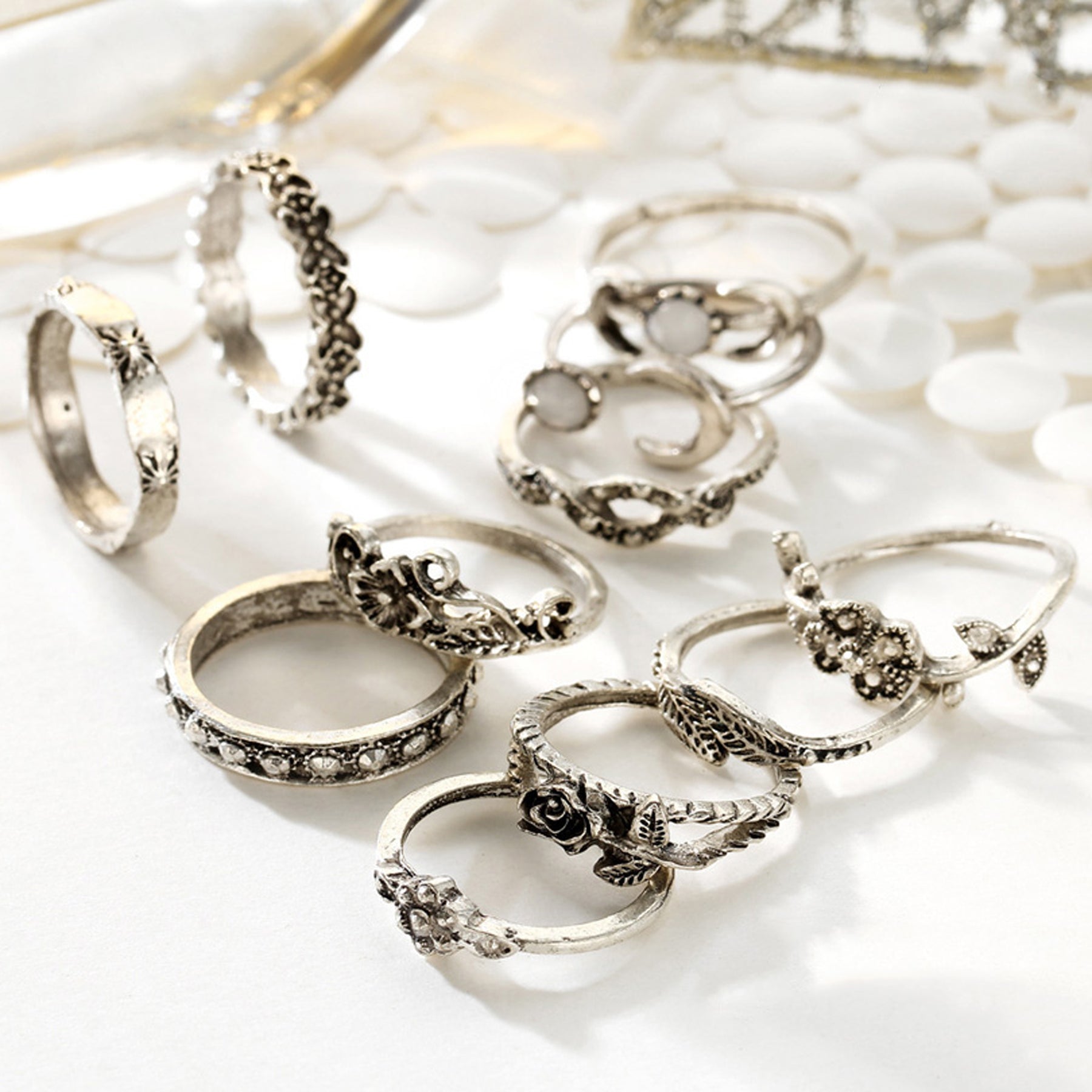 Maya Boho Antiqued Vintage Opaque Opal Crystal Rings Set 11 Pieces