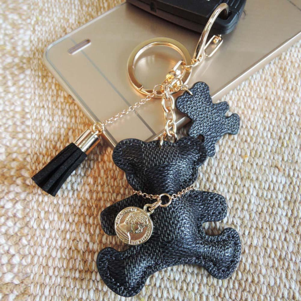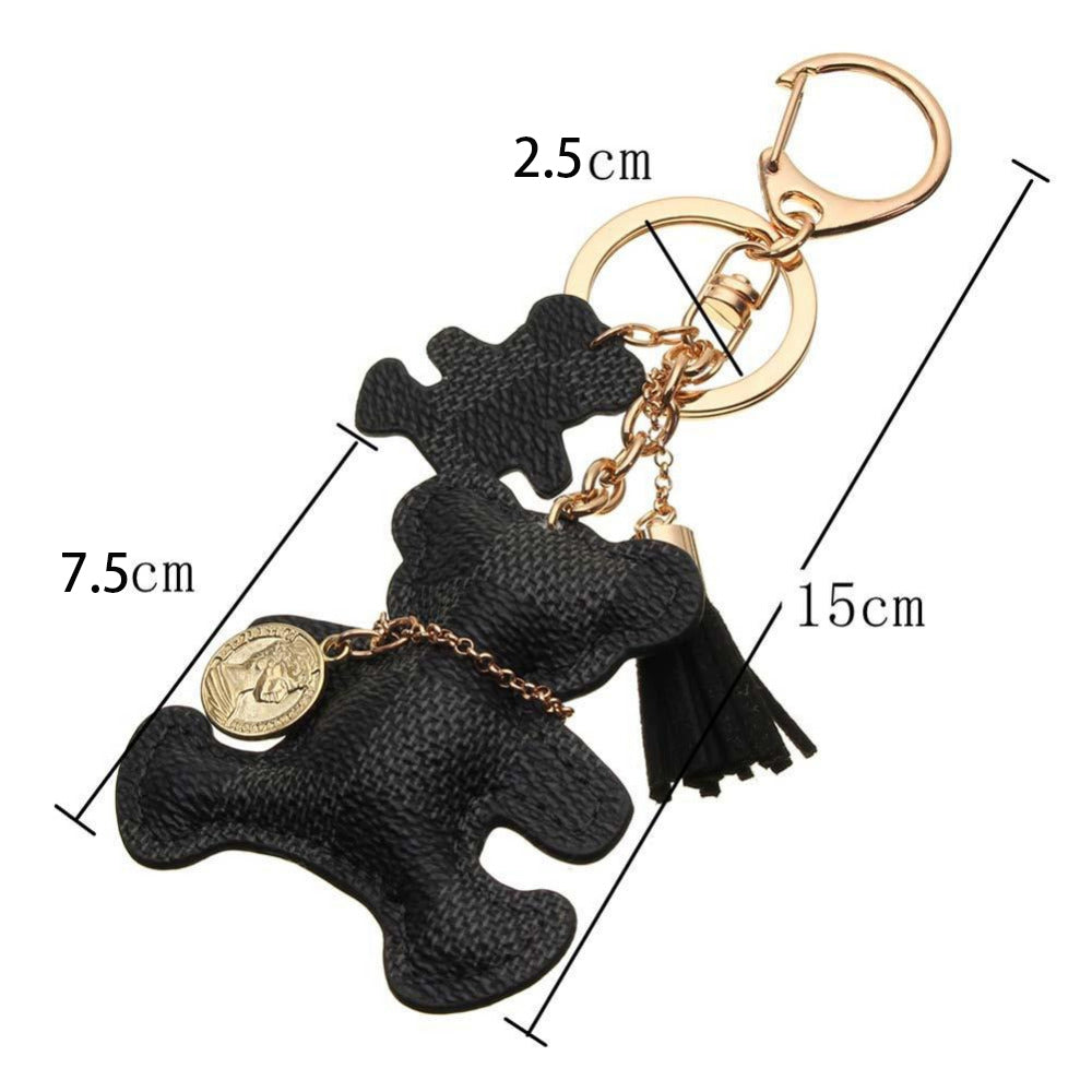 Cute Checkered Double Teddy Bear Keychain with Tassel Keyring Key Fob Fashion Accessories Jewelry Purse Bag - www.MyBodiArt.com