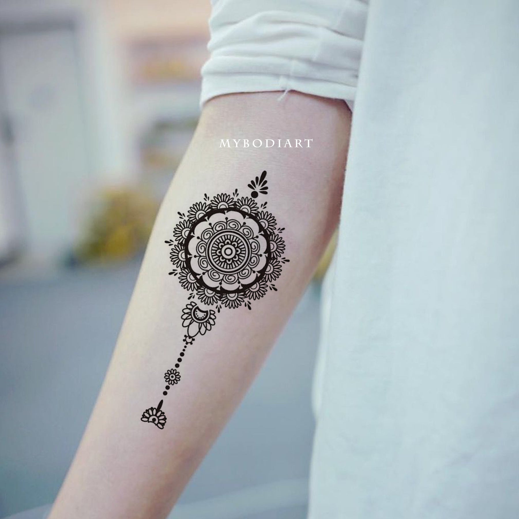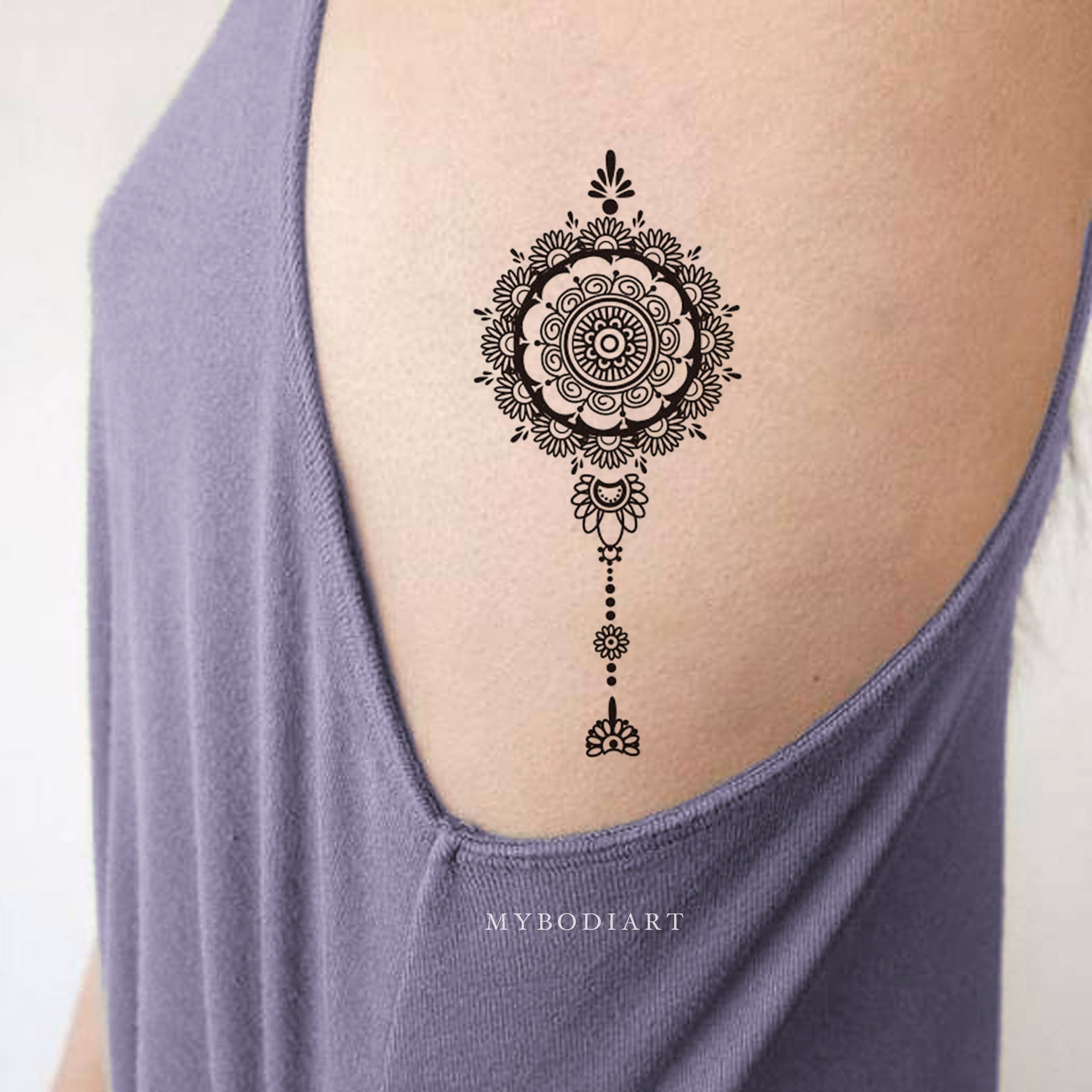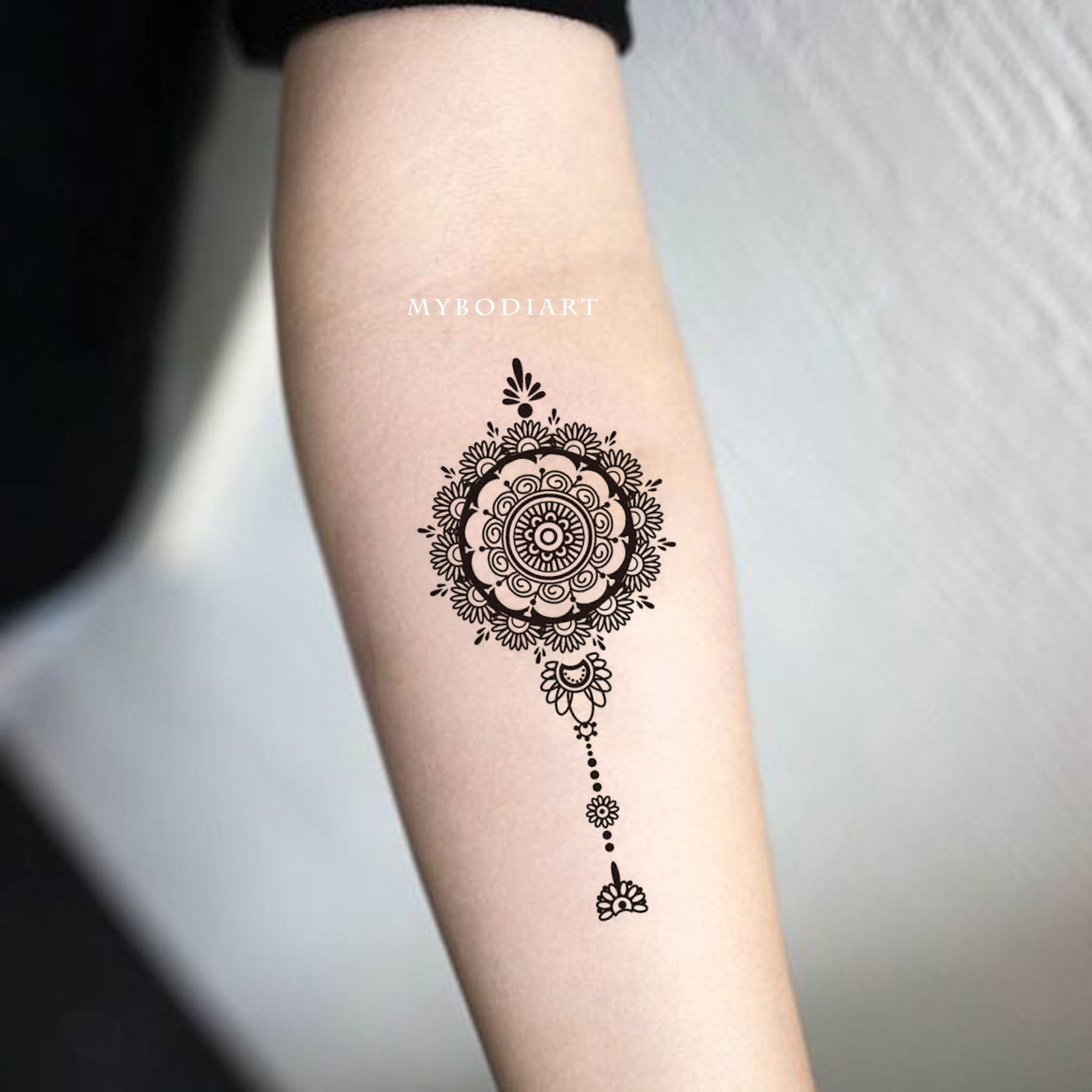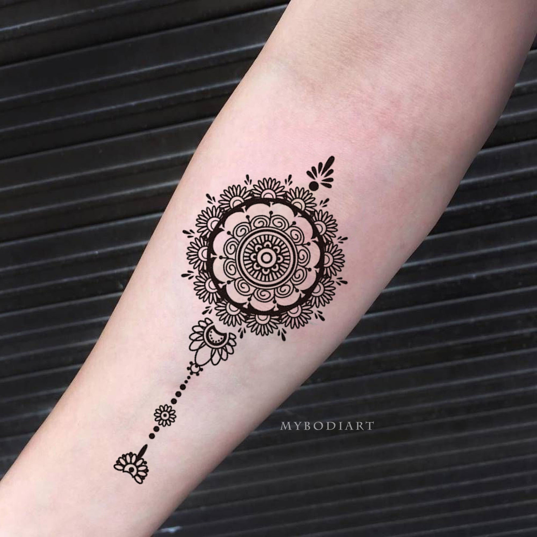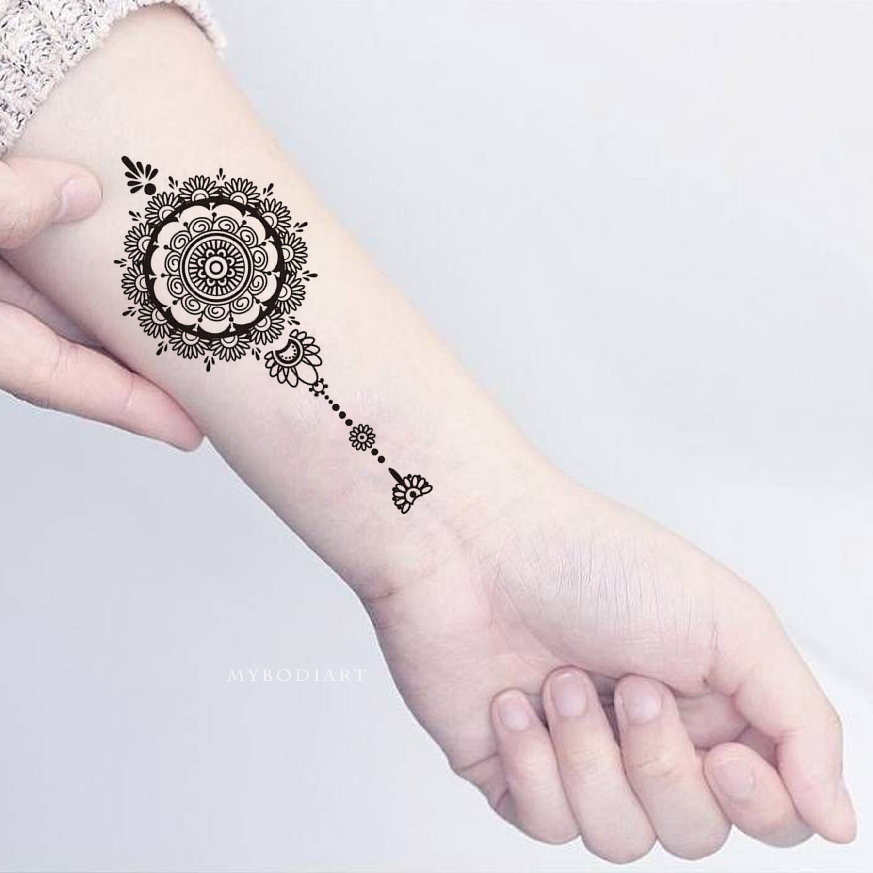 Takiyak Tribal Ethnic Black Henna Mandala Unalome Temporary Tattoo