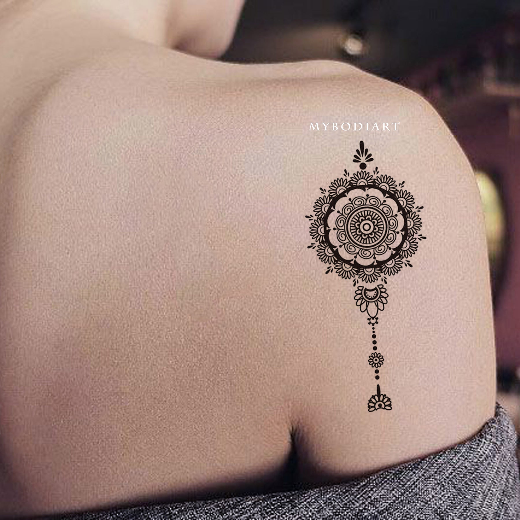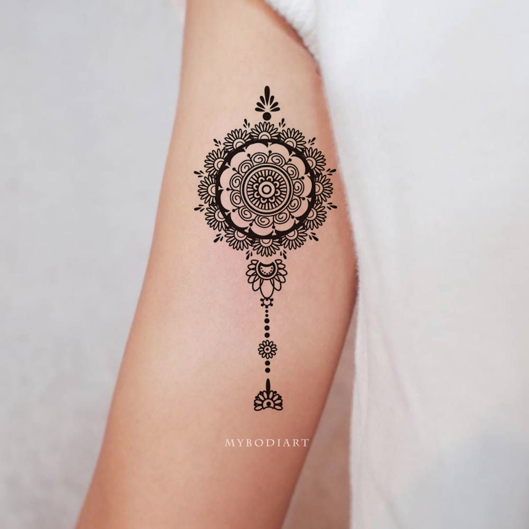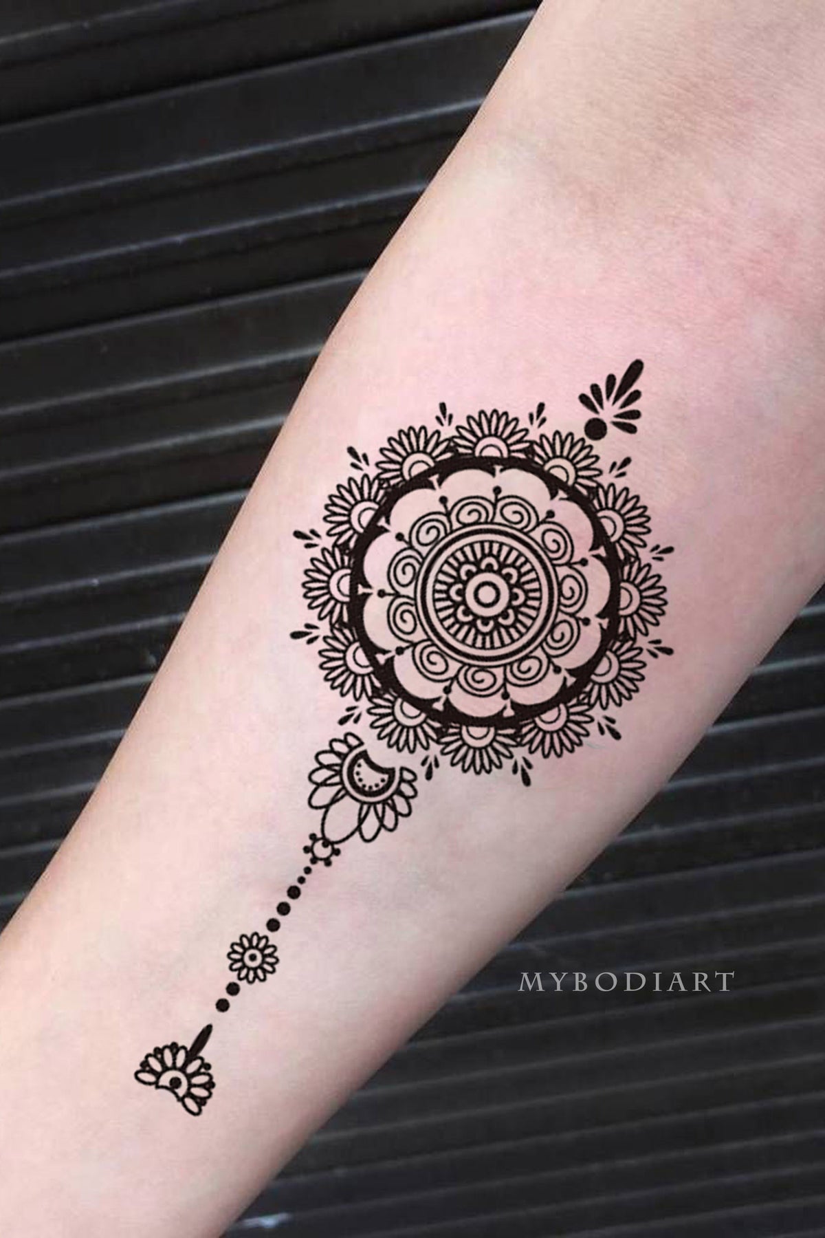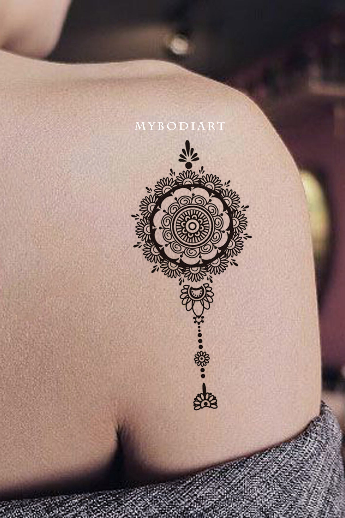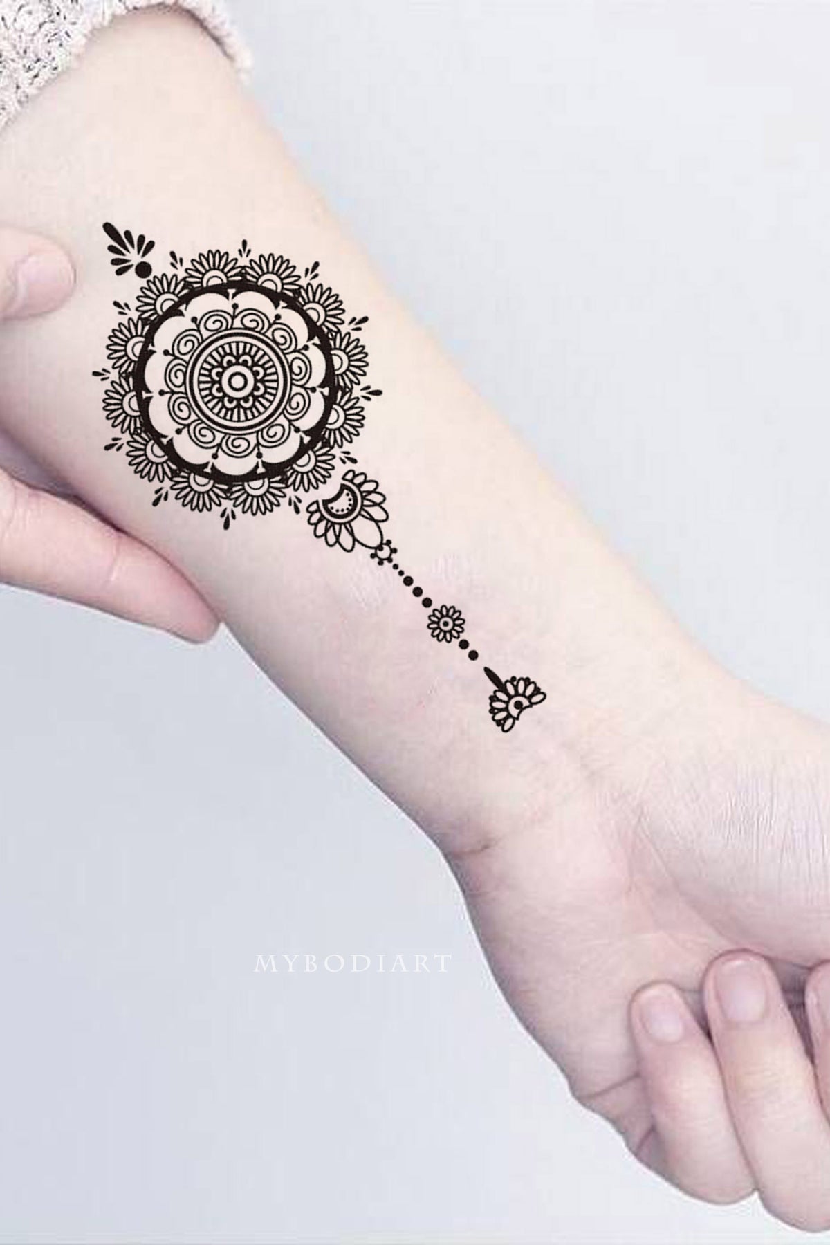 Takiyak Tribal Ethnic Black Henna Mandala Unalome Temporary Tattoo