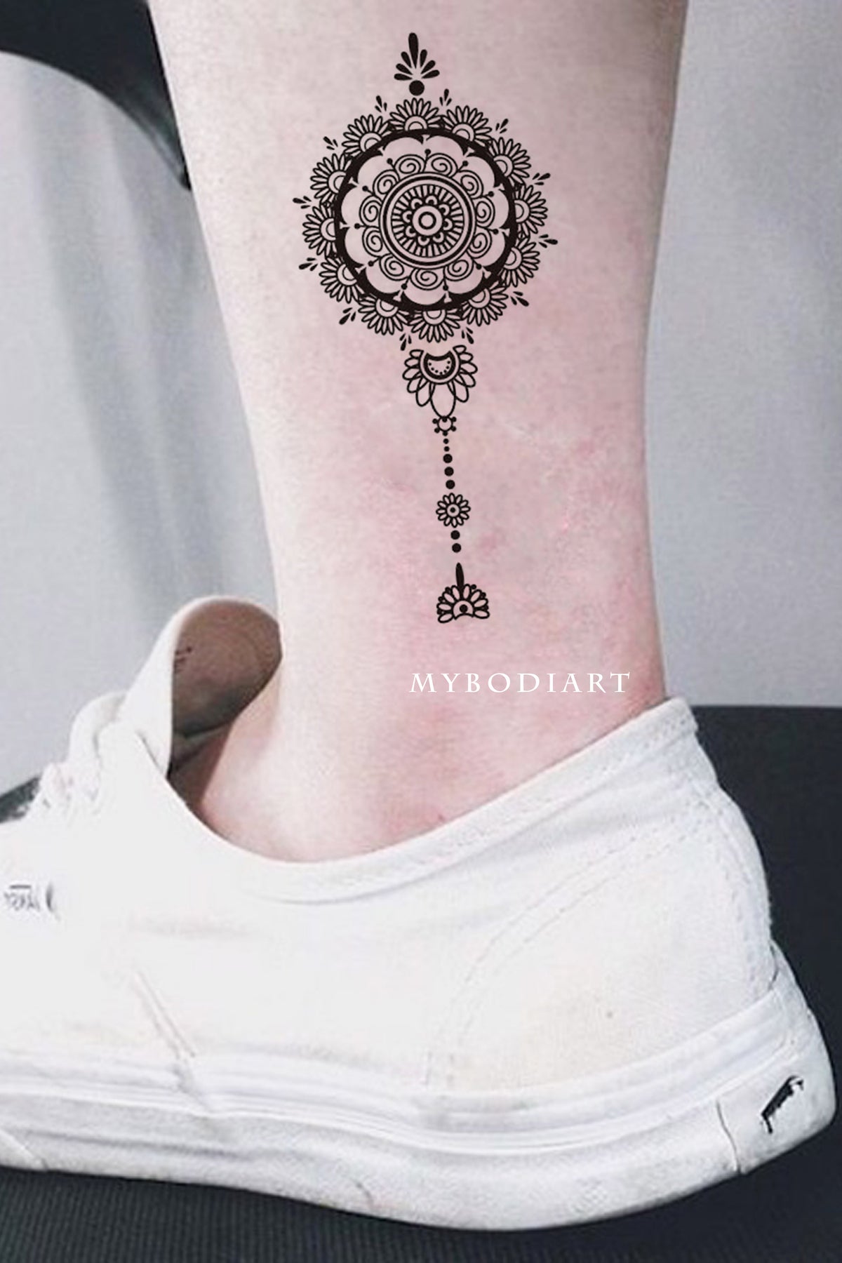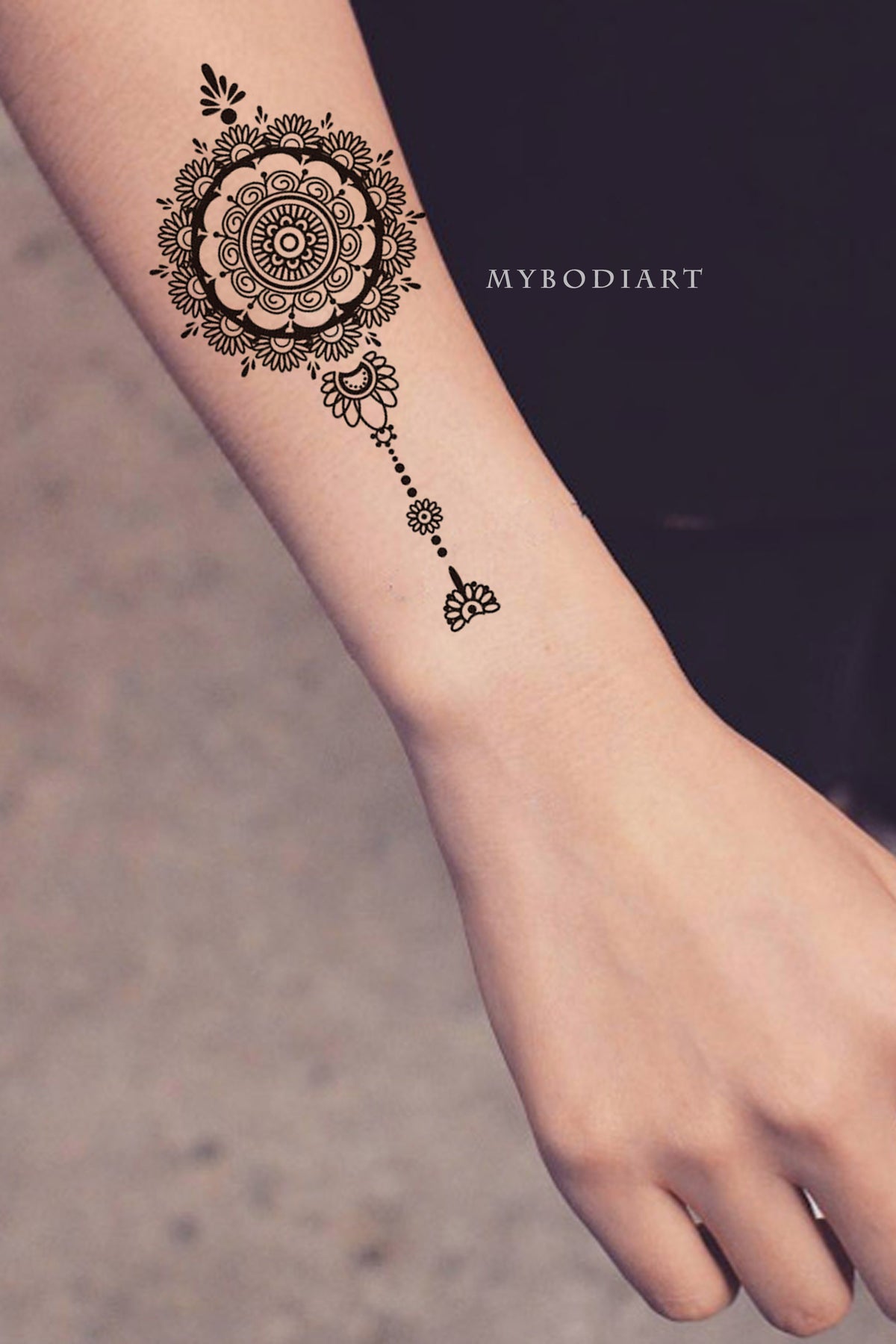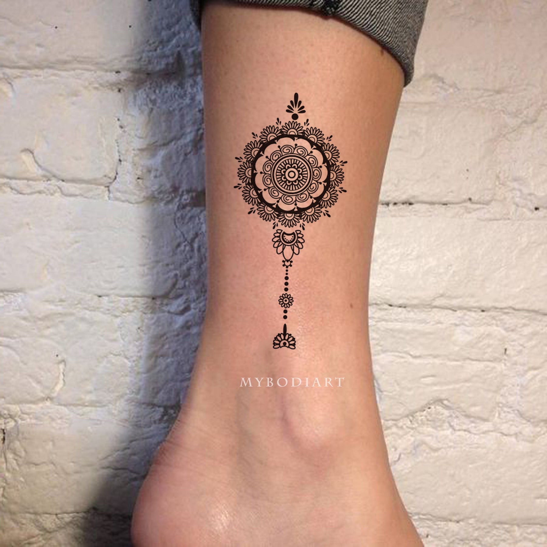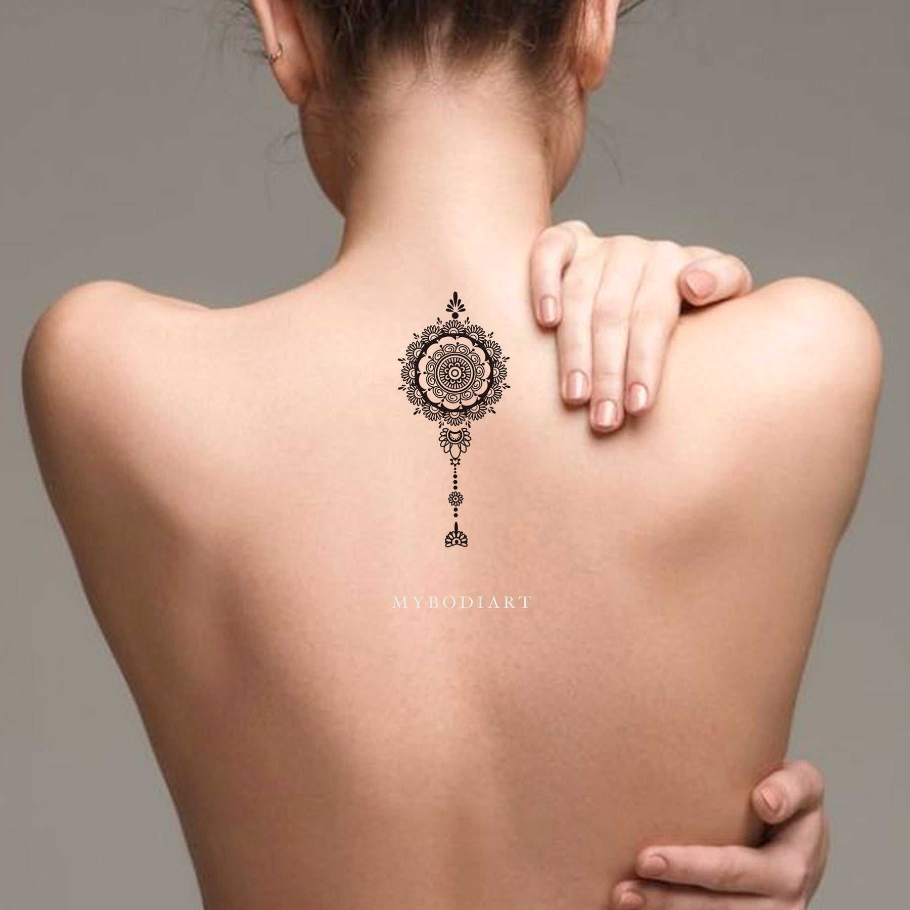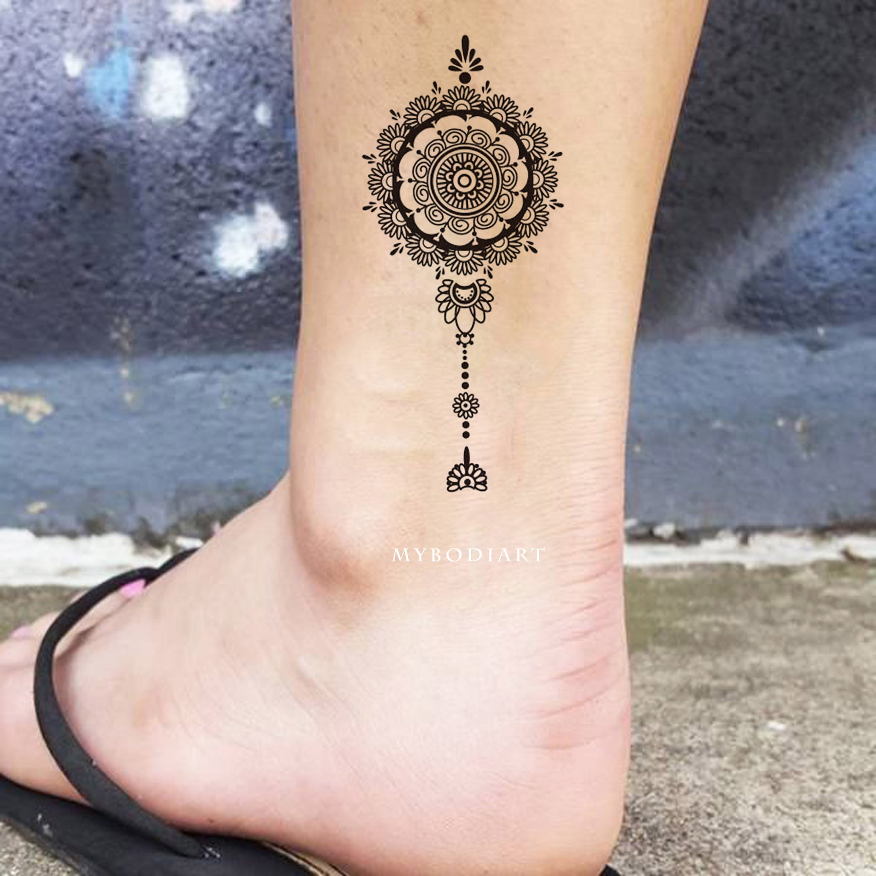 Takiyak Tribal Ethnic Black Henna Mandala Unalome Temporary Tattoo