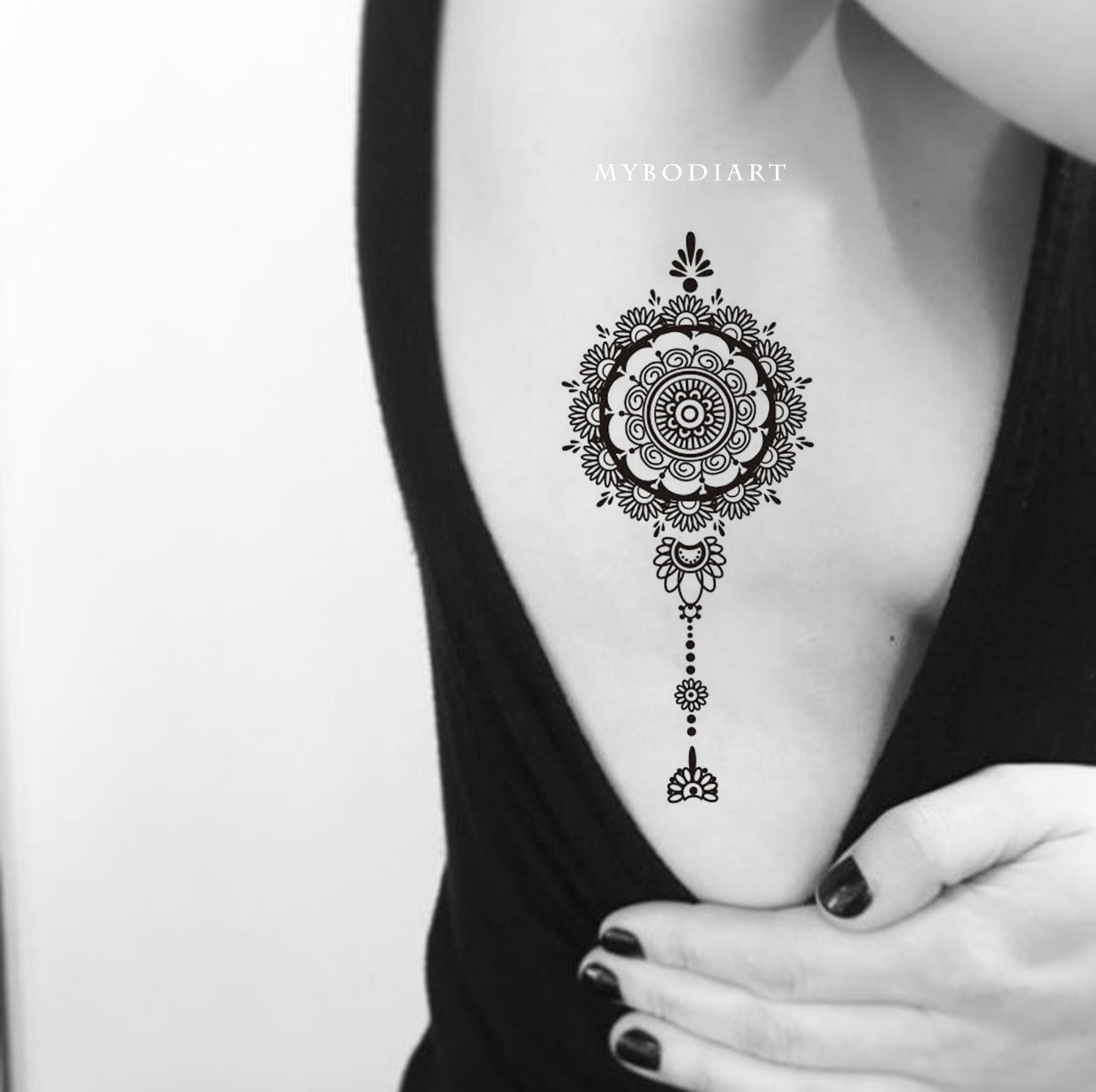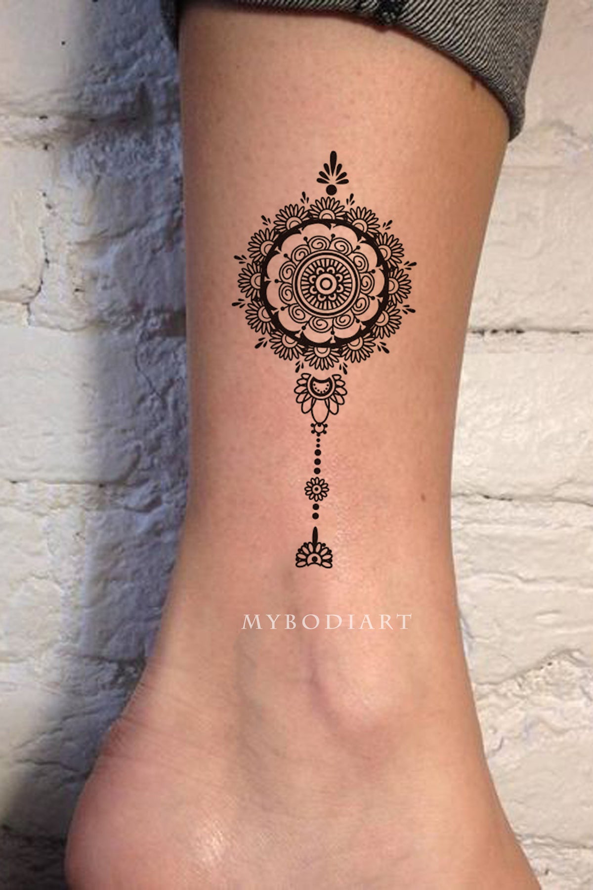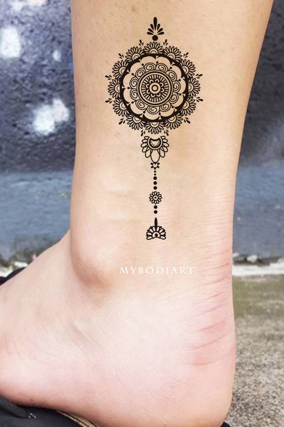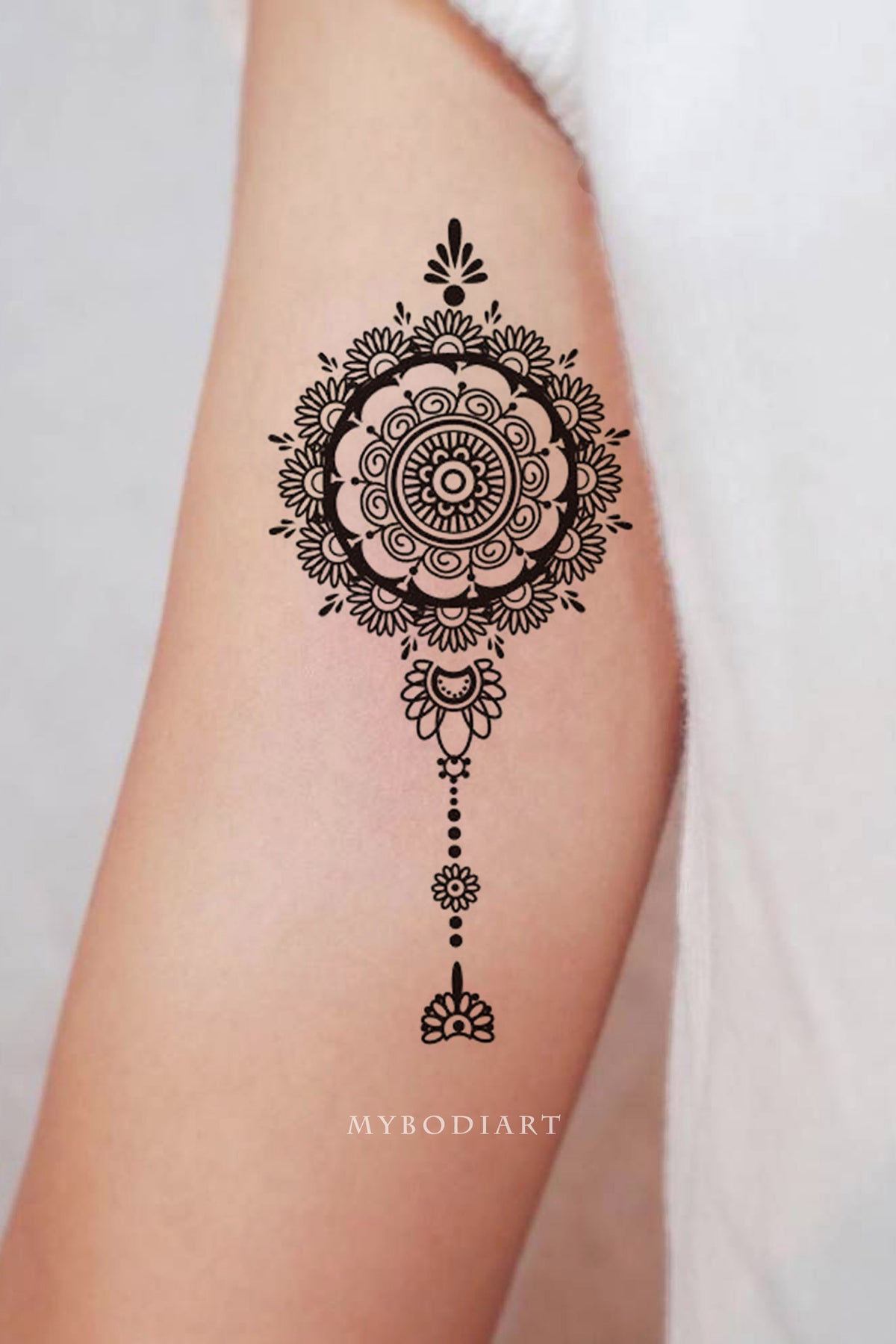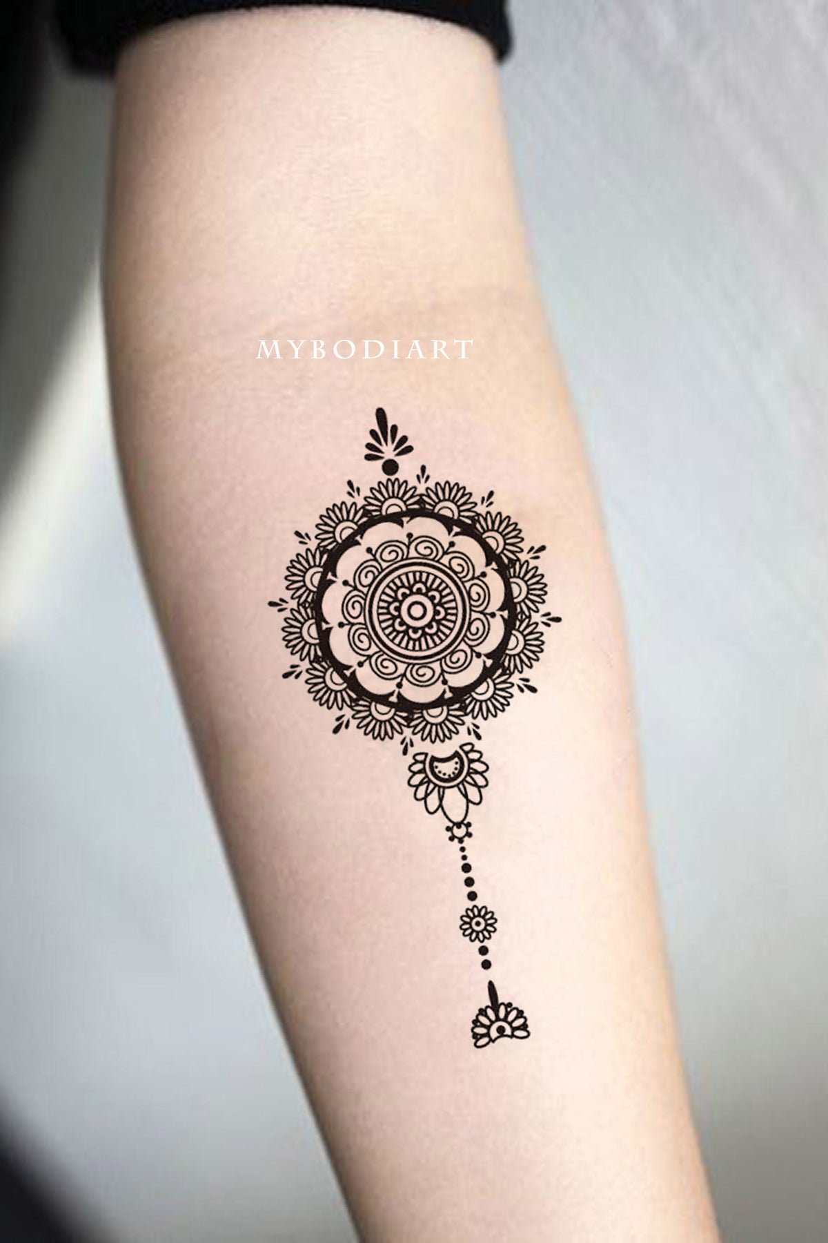 Takiyak Tribal Ethnic Black Henna Mandala Unalome Temporary Tattoo