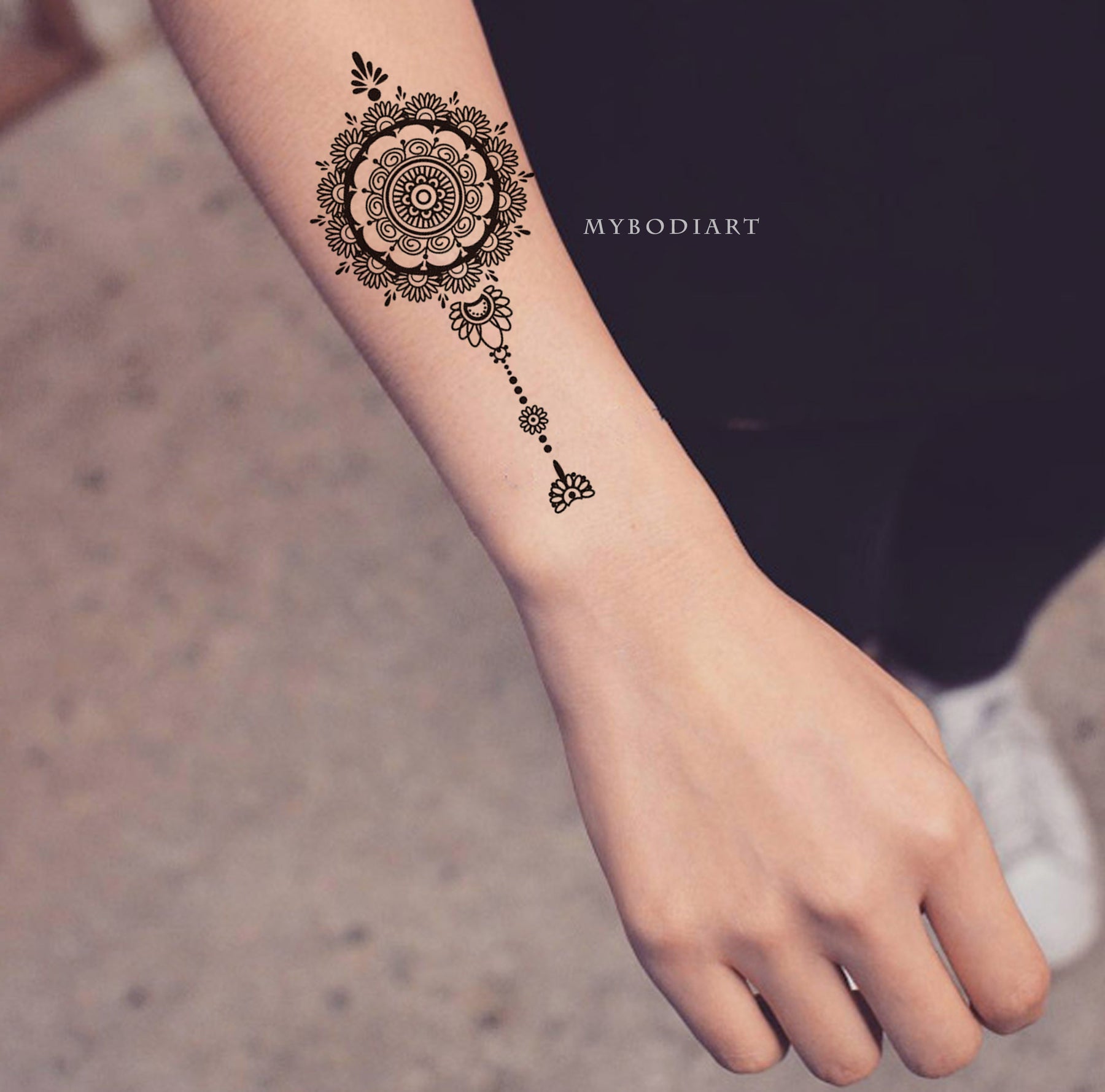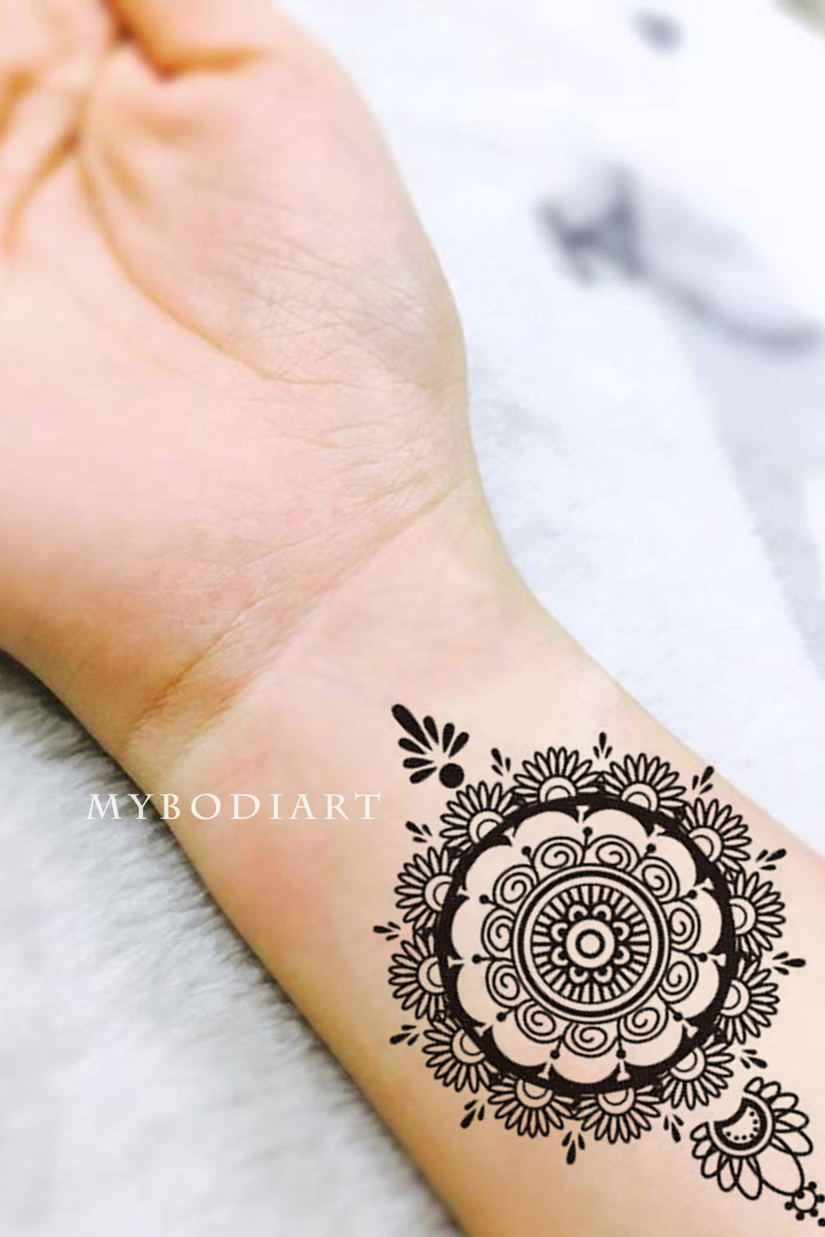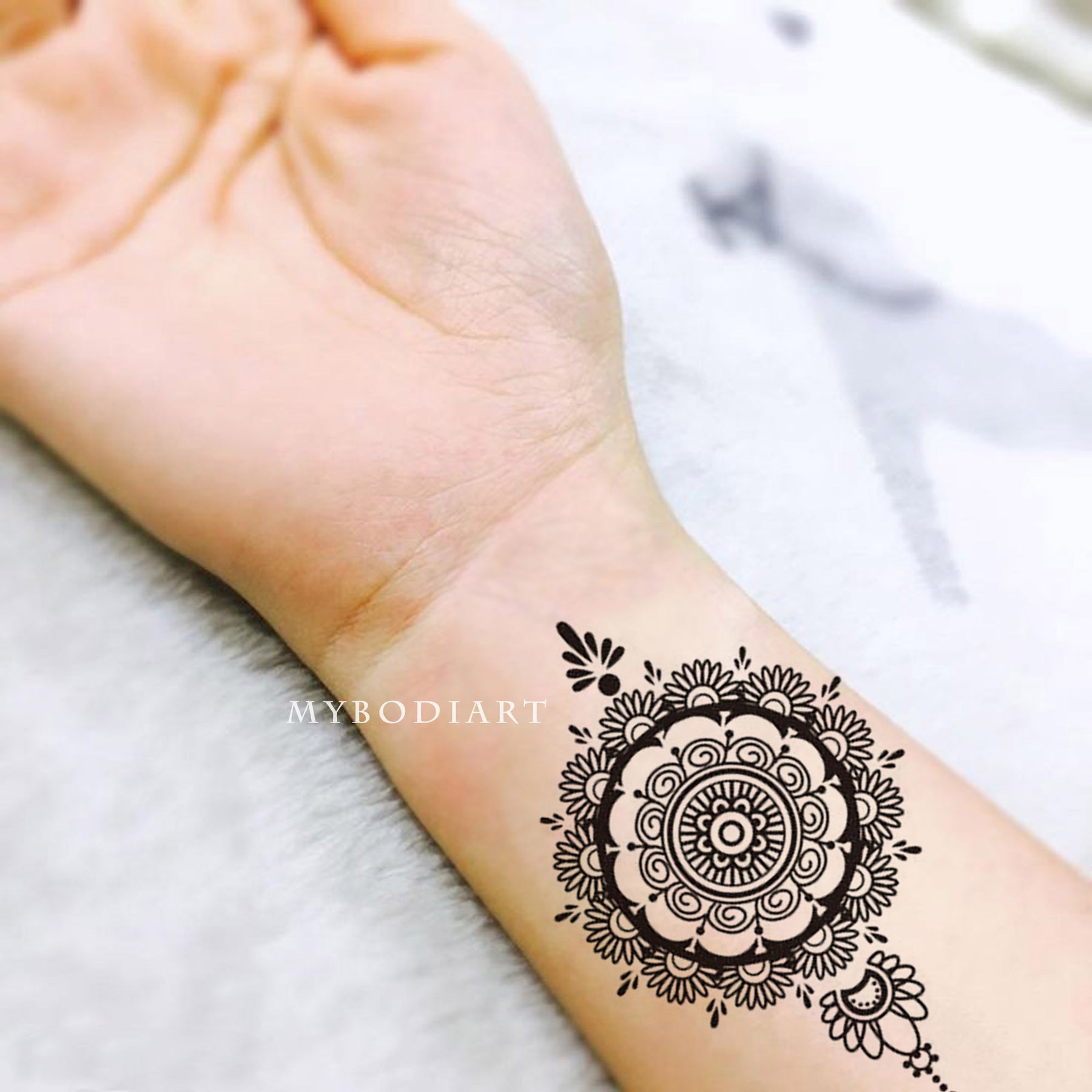 Mandala Lotus Black Henna Hand Tattoos Ethnic Tribal Boho