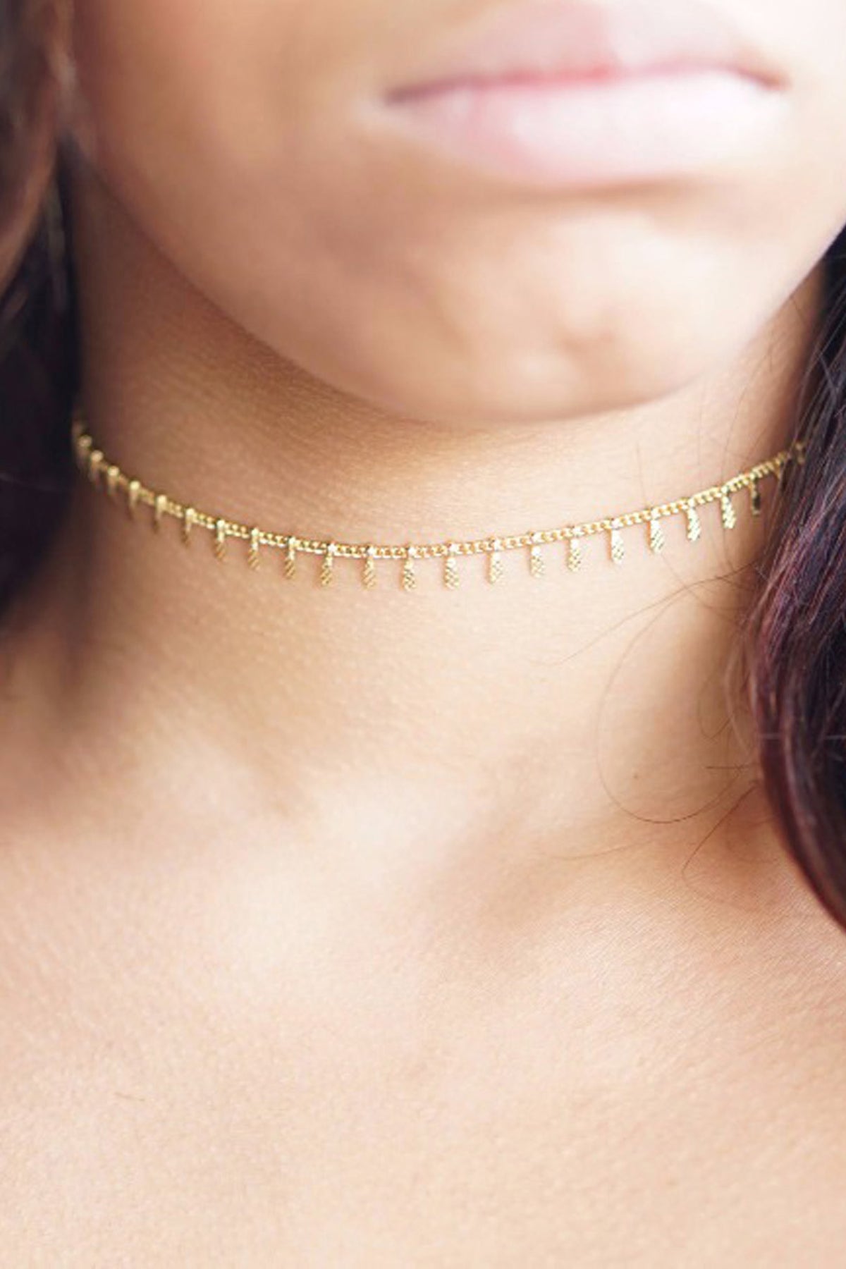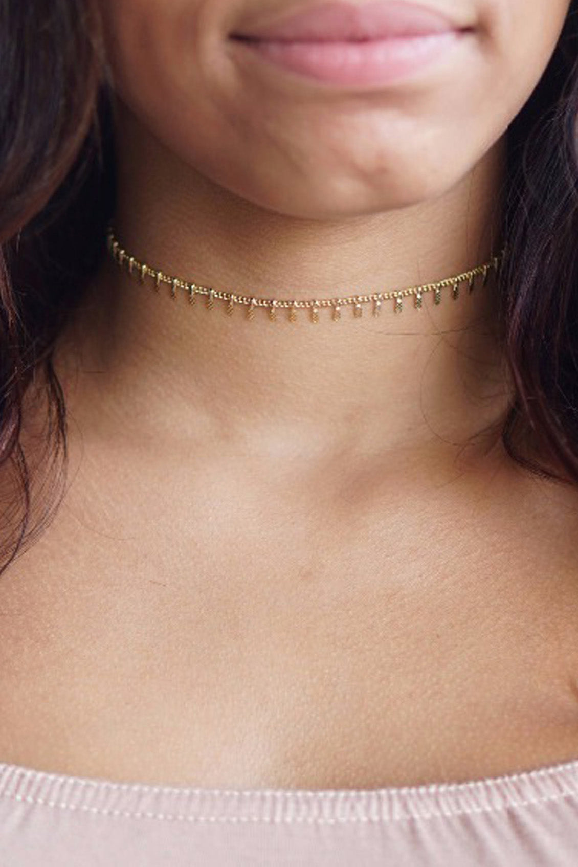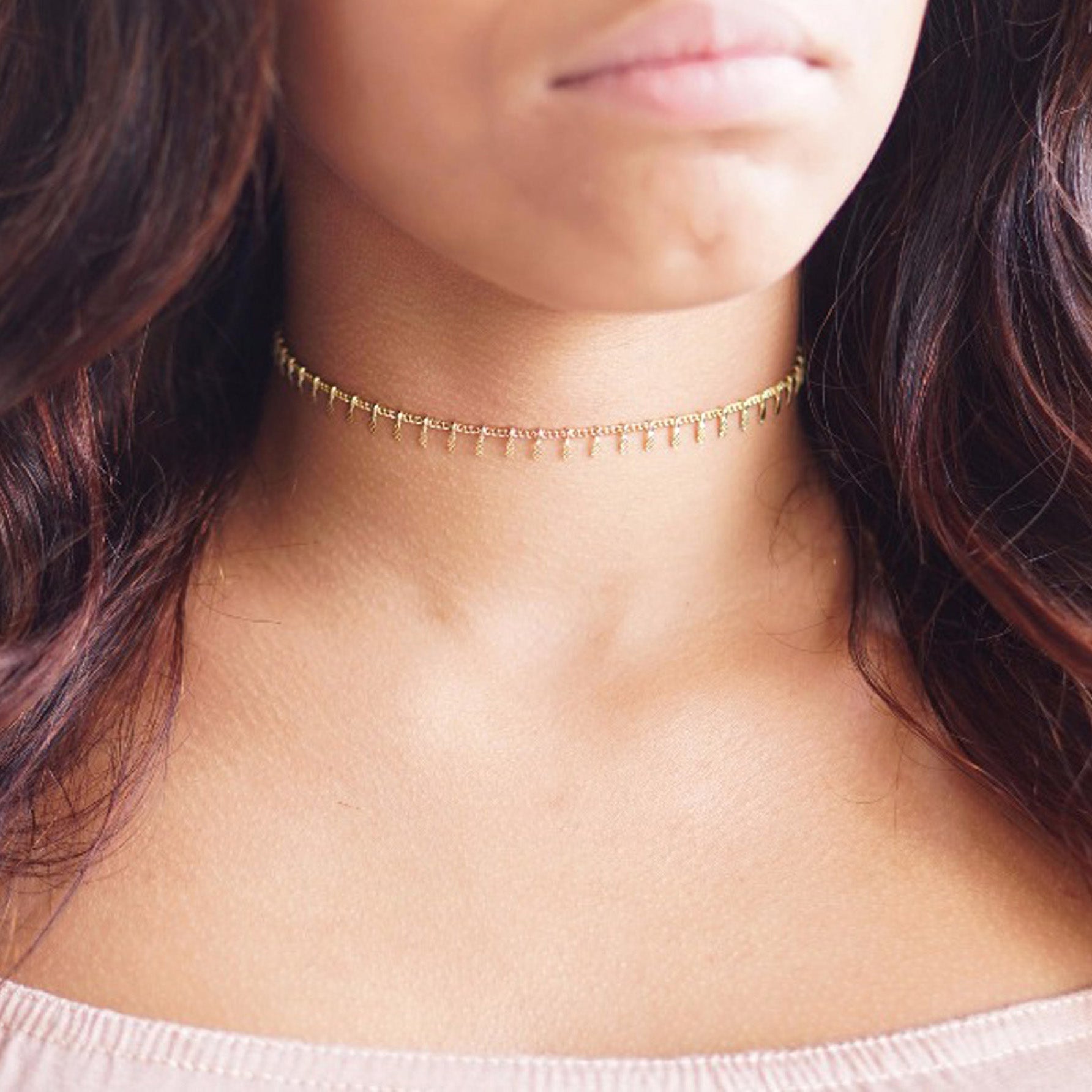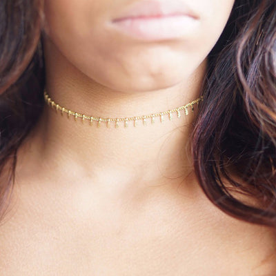 Nysa Dainty Simple Chain Charms Minimalist Choker Necklace in Gold or Silver