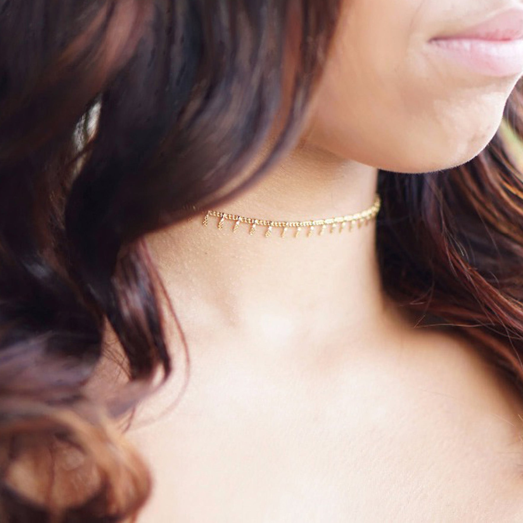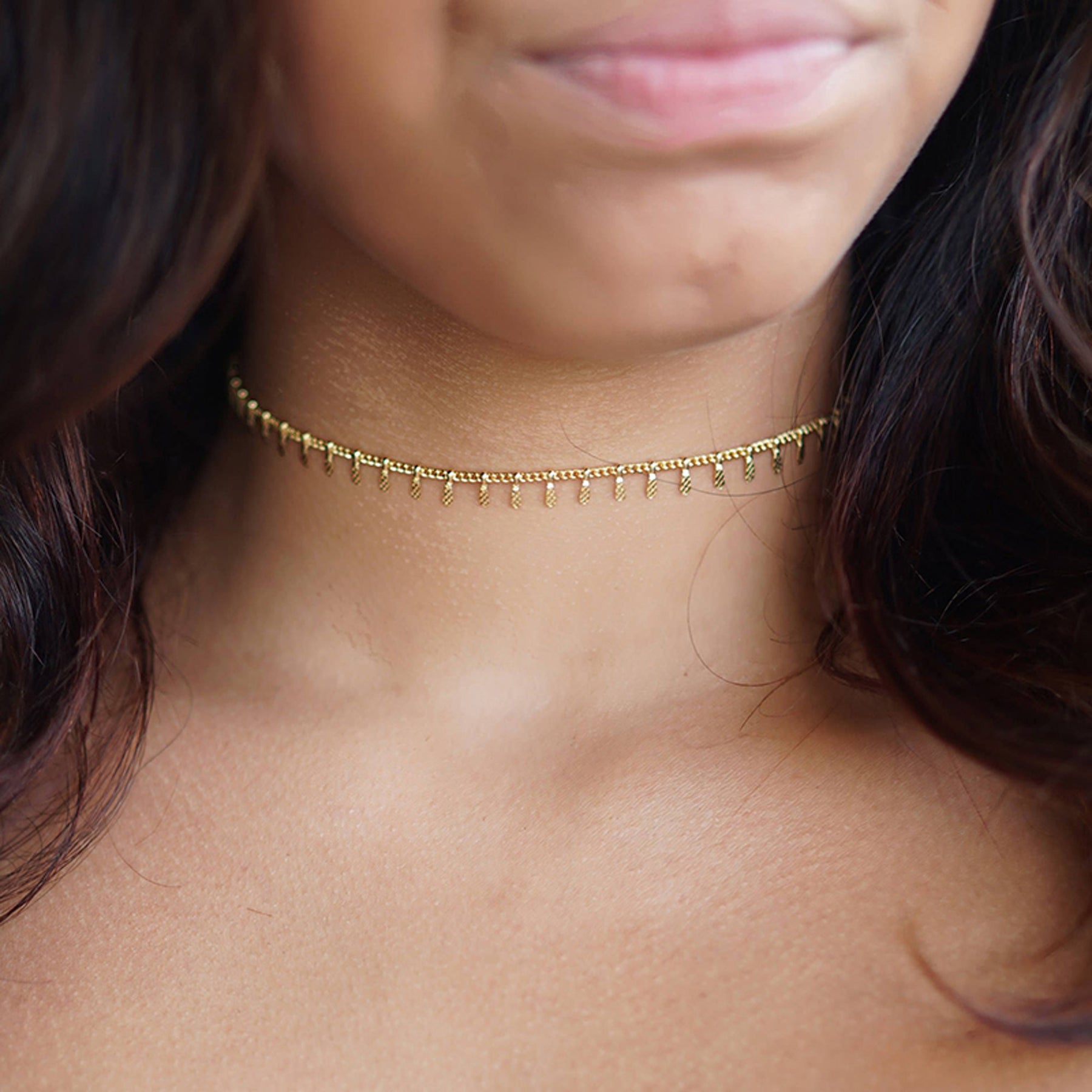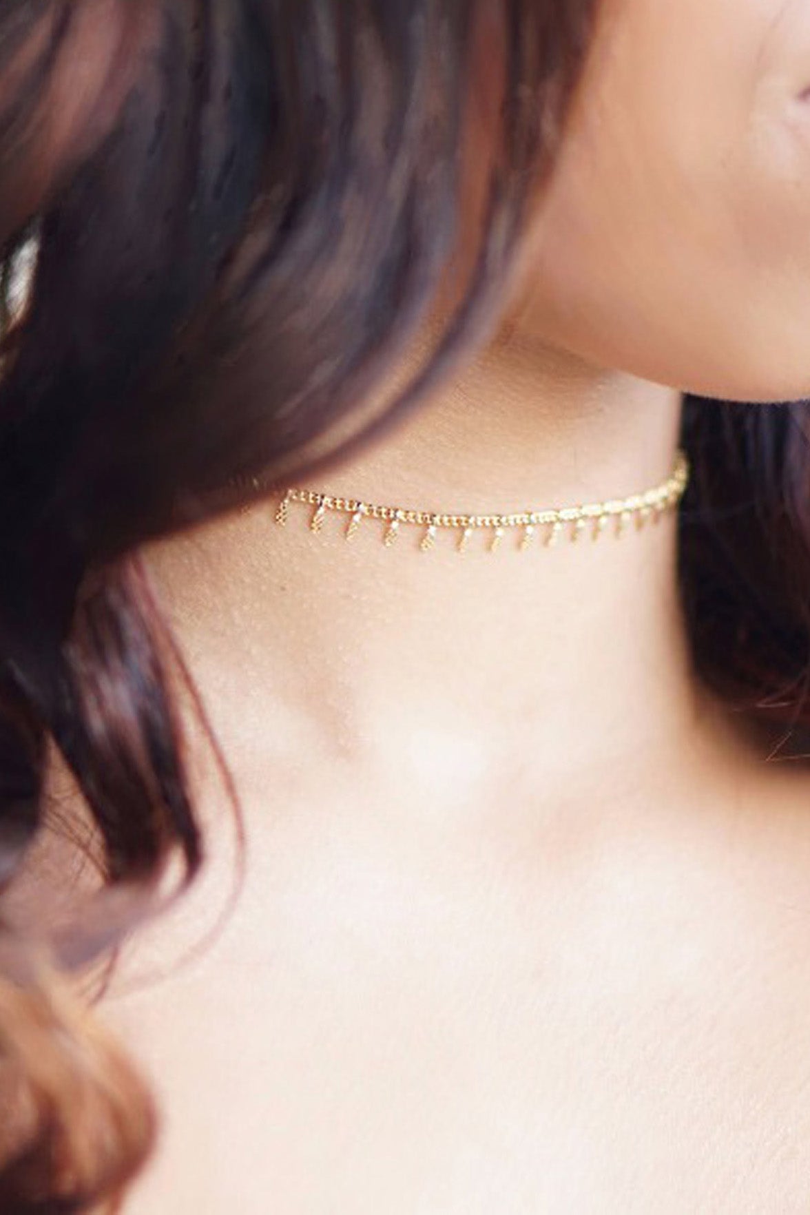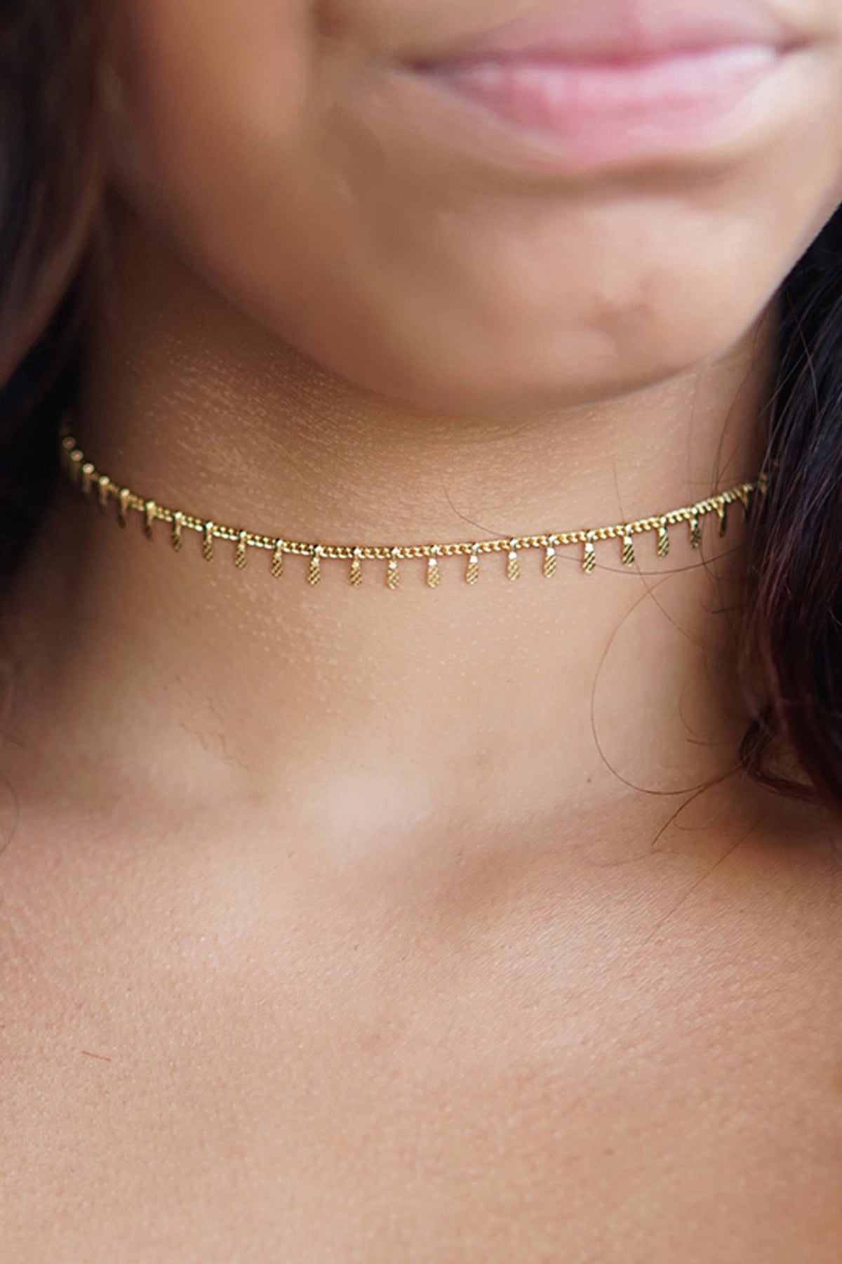 Nysa Dainty Simple Chain Charms Minimalist Choker Necklace in Gold or Silver