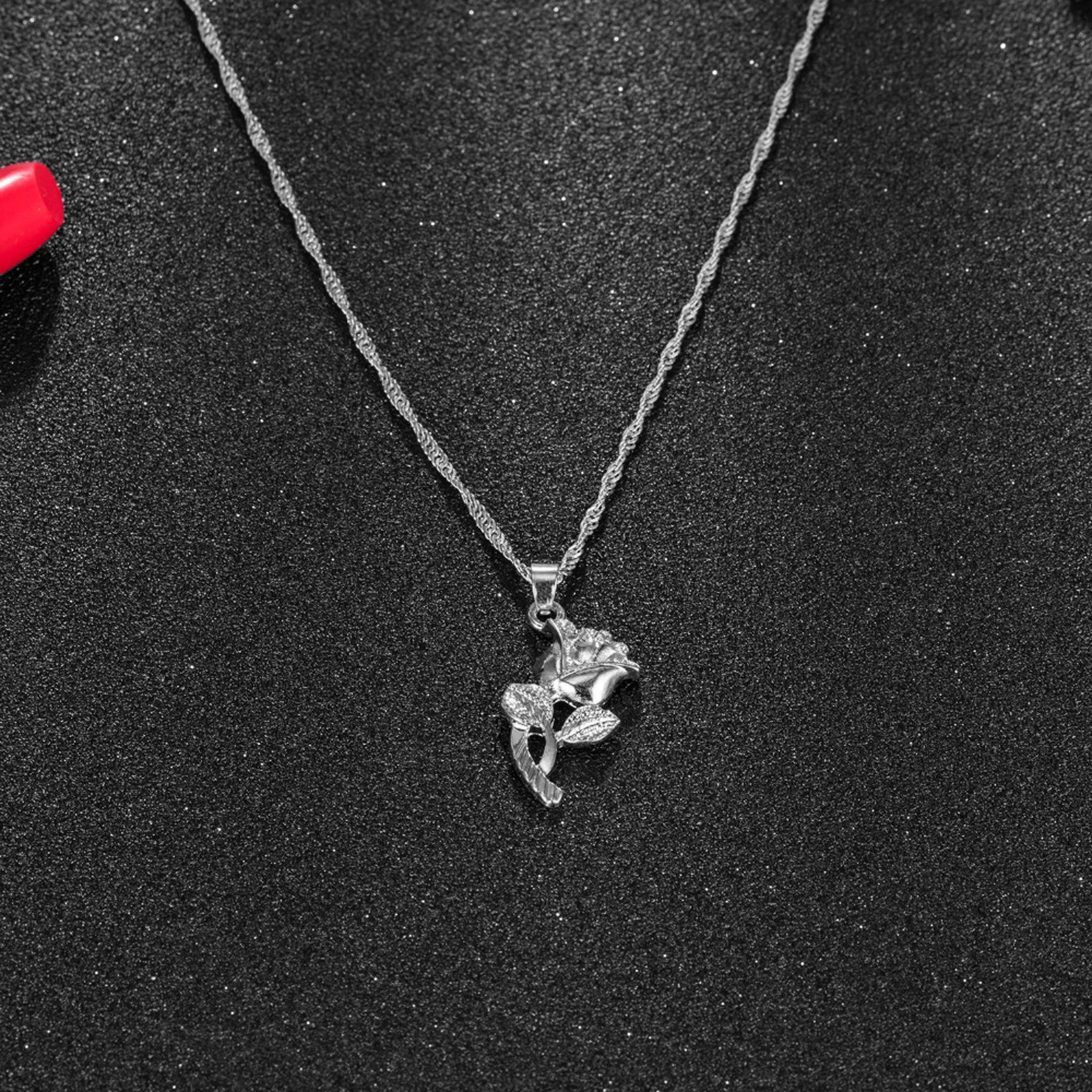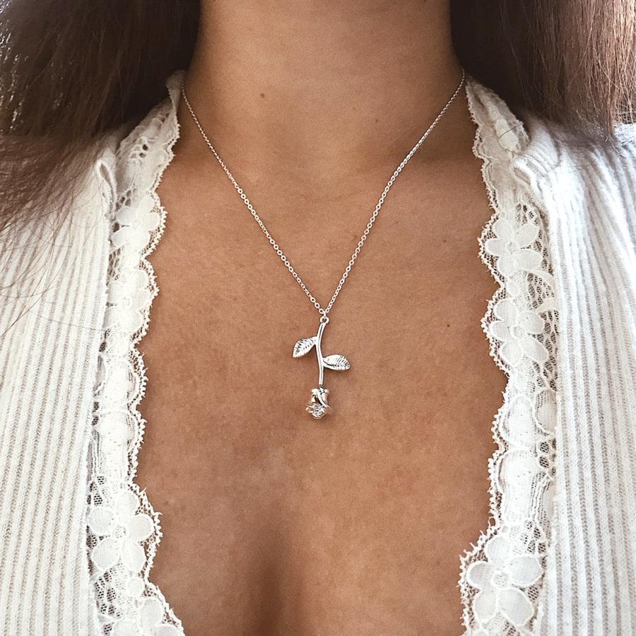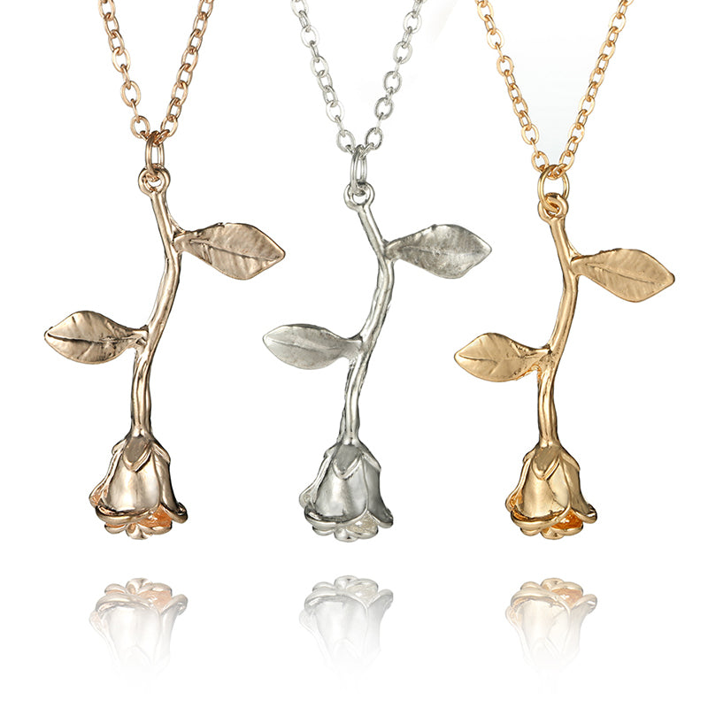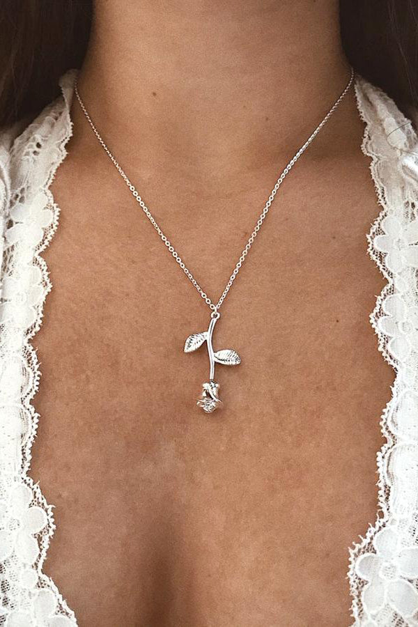 Roselina Simple Single Rose Pendant Necklace