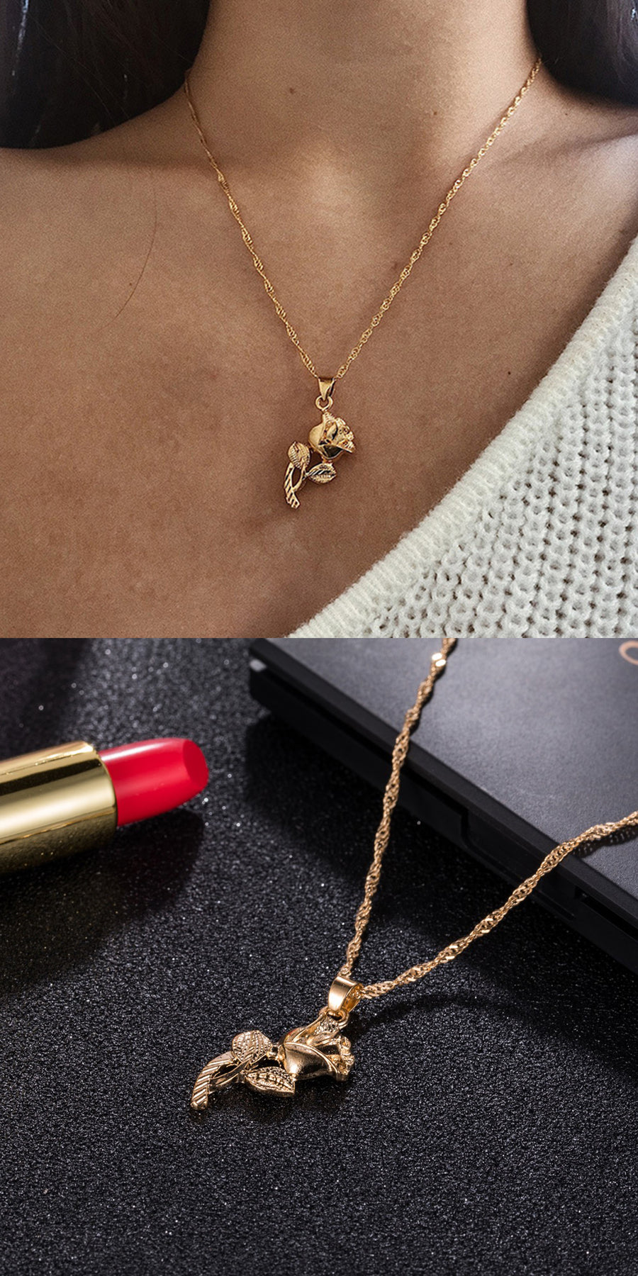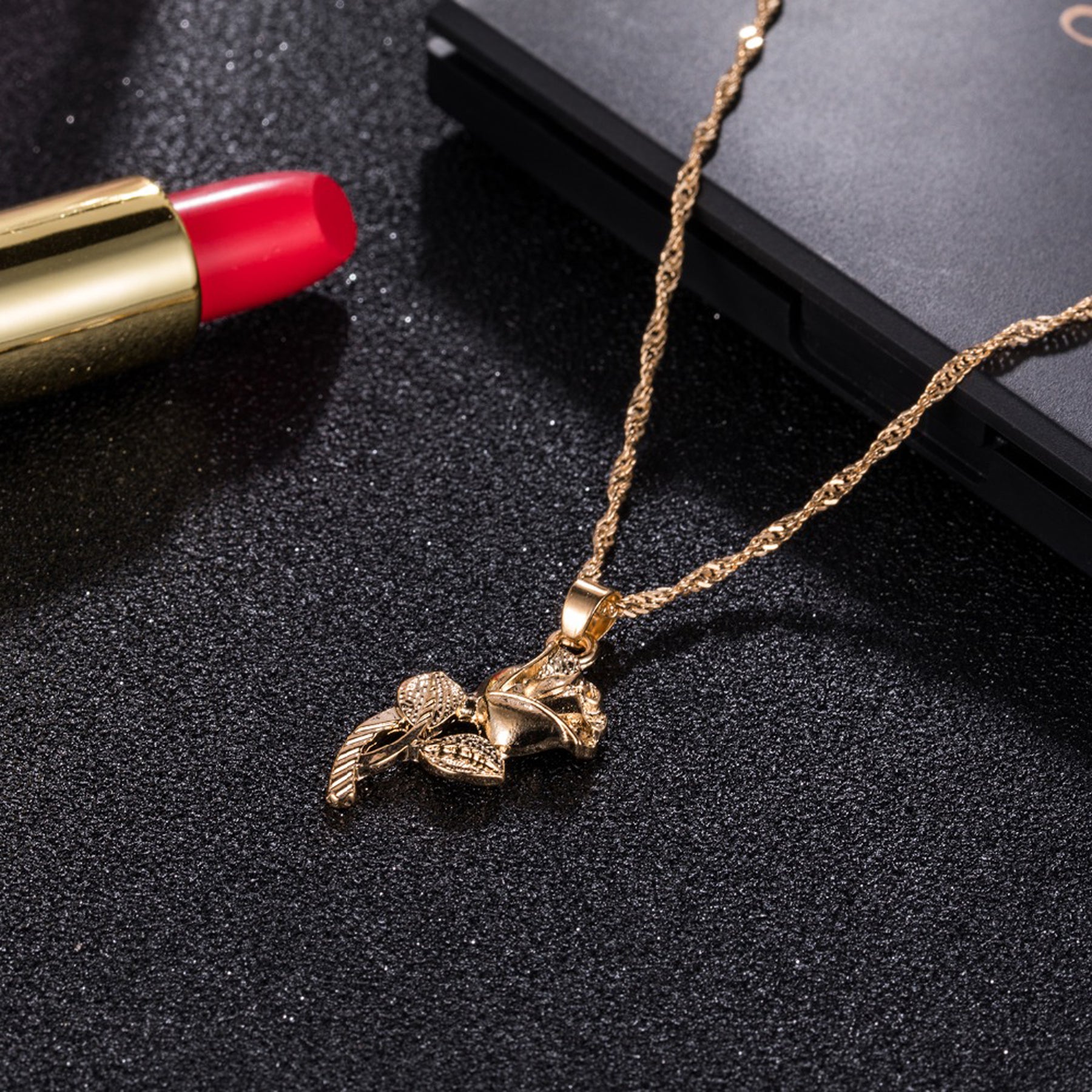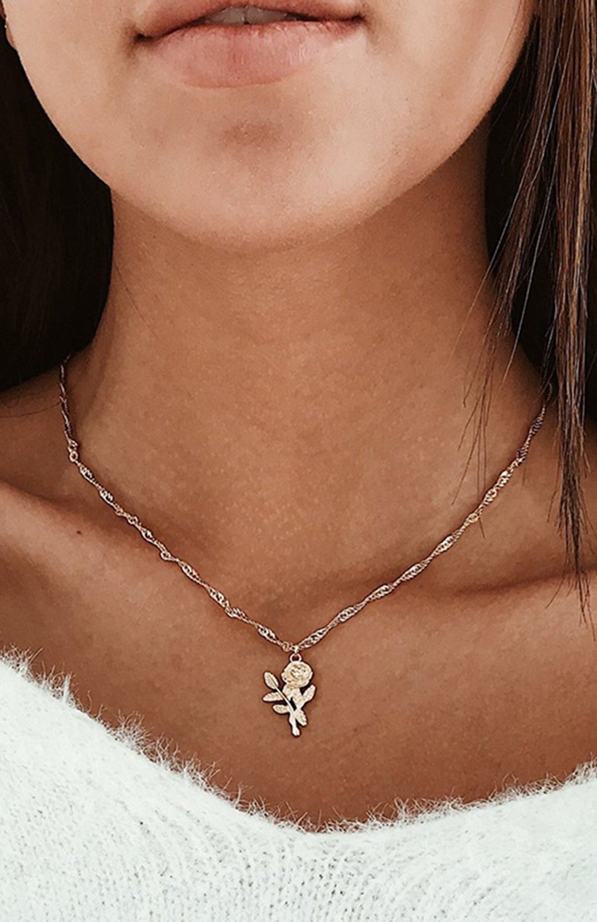Roselina Simple Single Rose Pendant Necklace