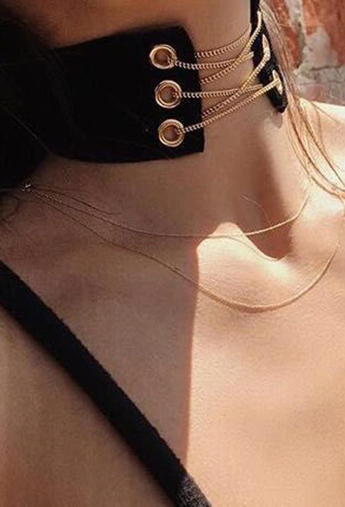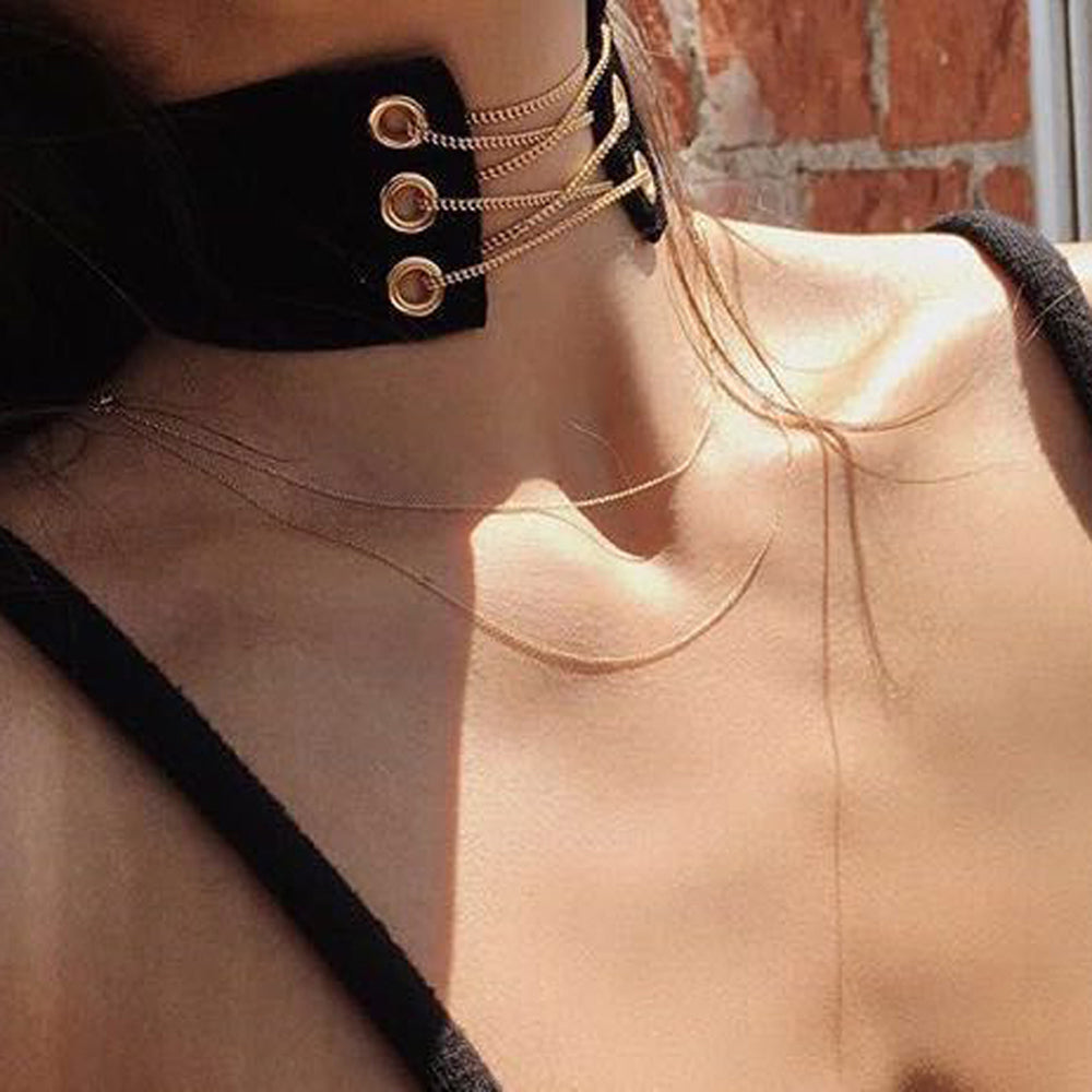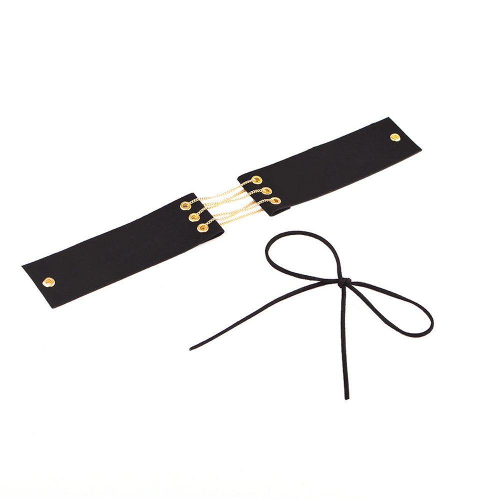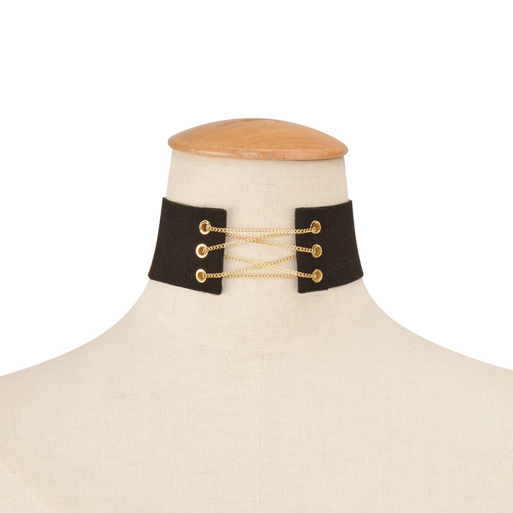 Salem Trendy Black Gold Chain Lace Up Choker Necklace