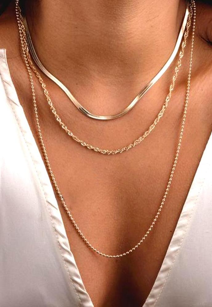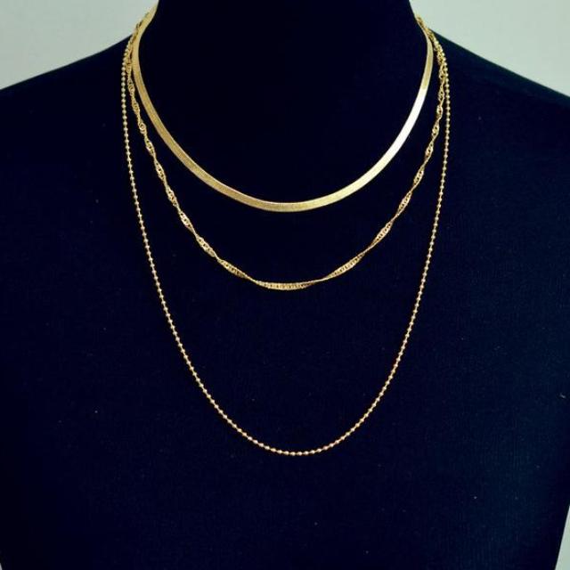 Feliciano Fancy Triple Layered Chain Choker Necklace in Gold