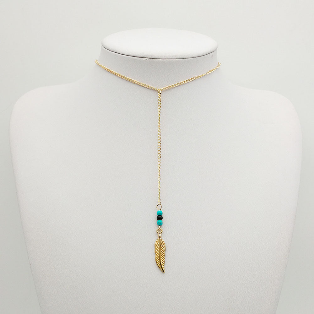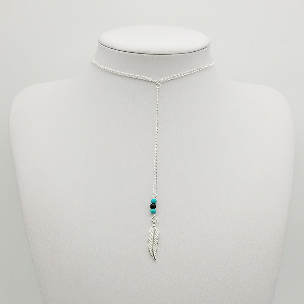 Willow Bohemian Leaf Turquoise Beads Lariat Choker Necklace
