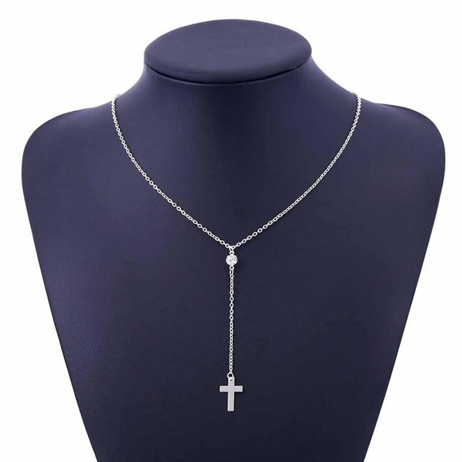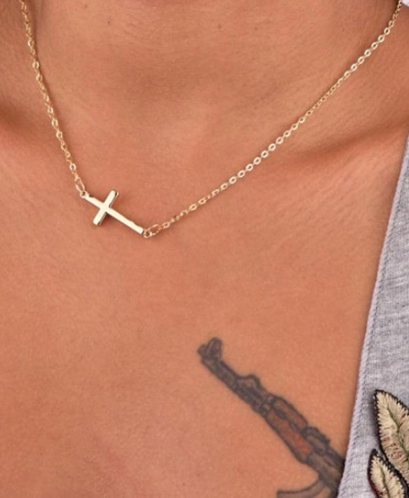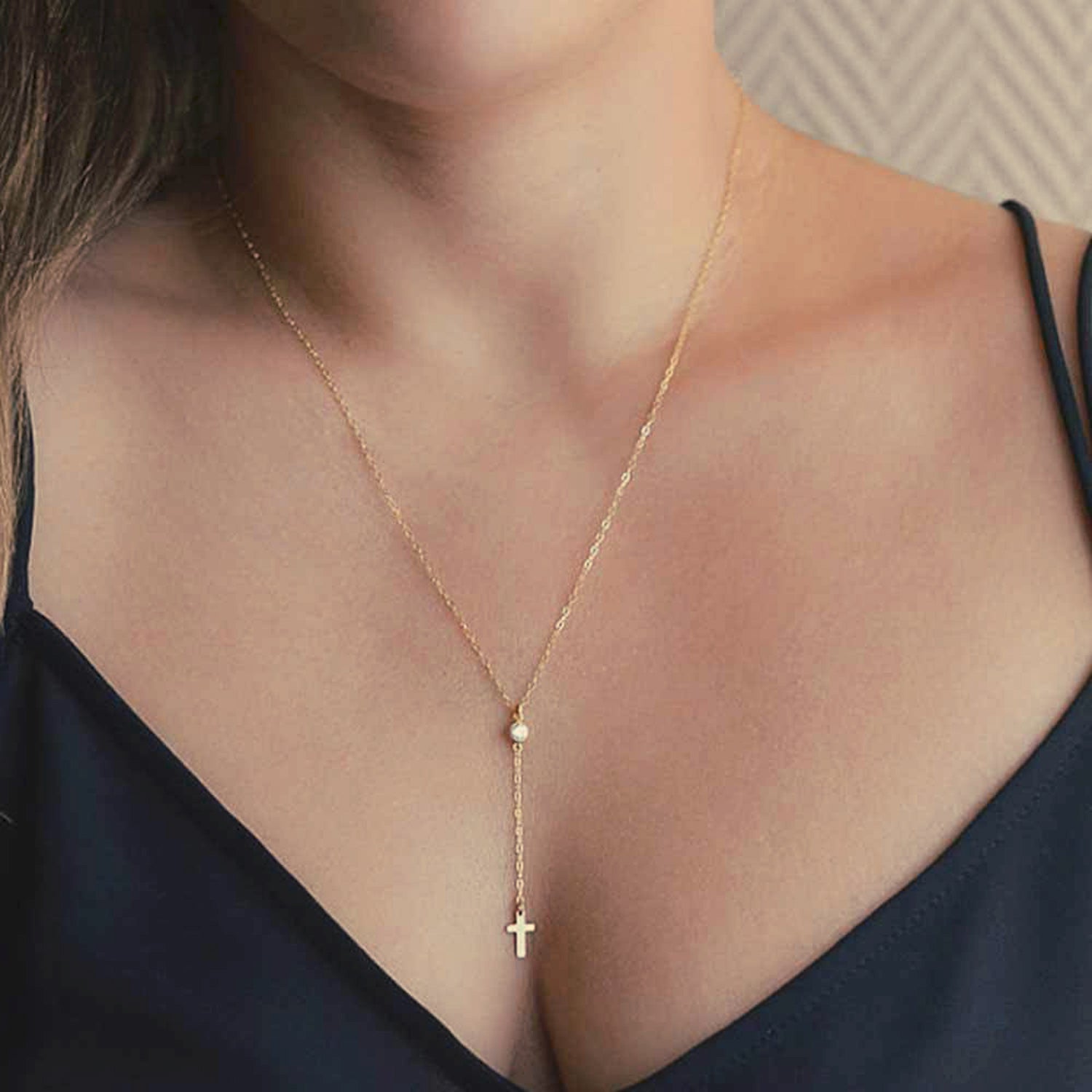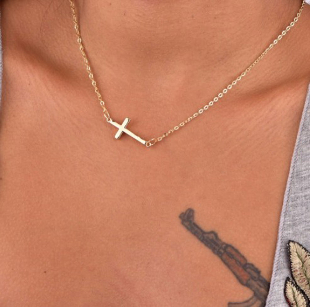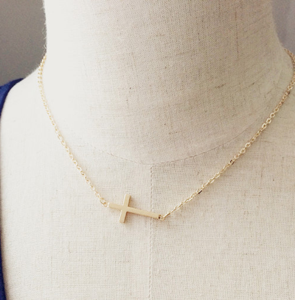 Mary Dainty Cross Drop Necklace in Gold or Silver