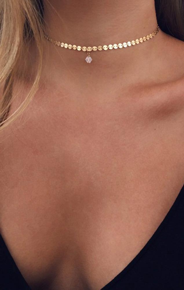 Ai Minimalist Simple Single Crystal Pendant Chain Choker Necklace
